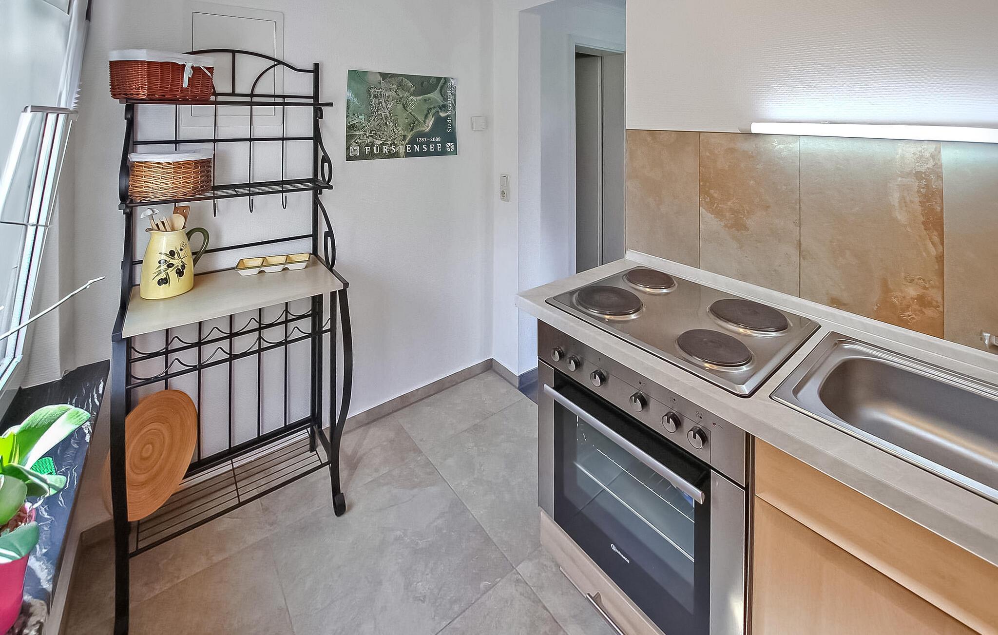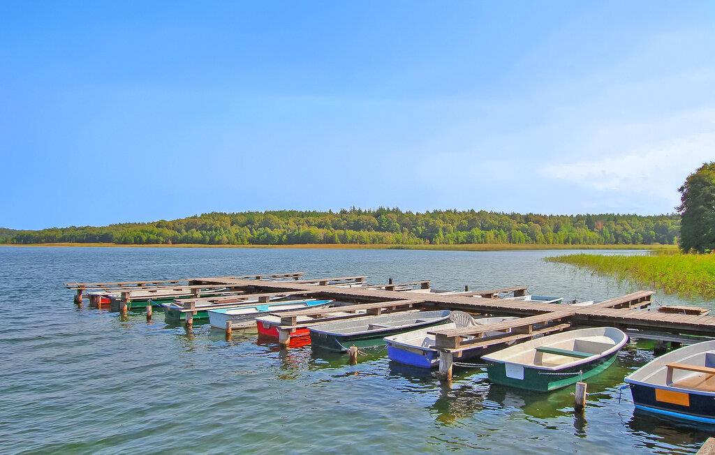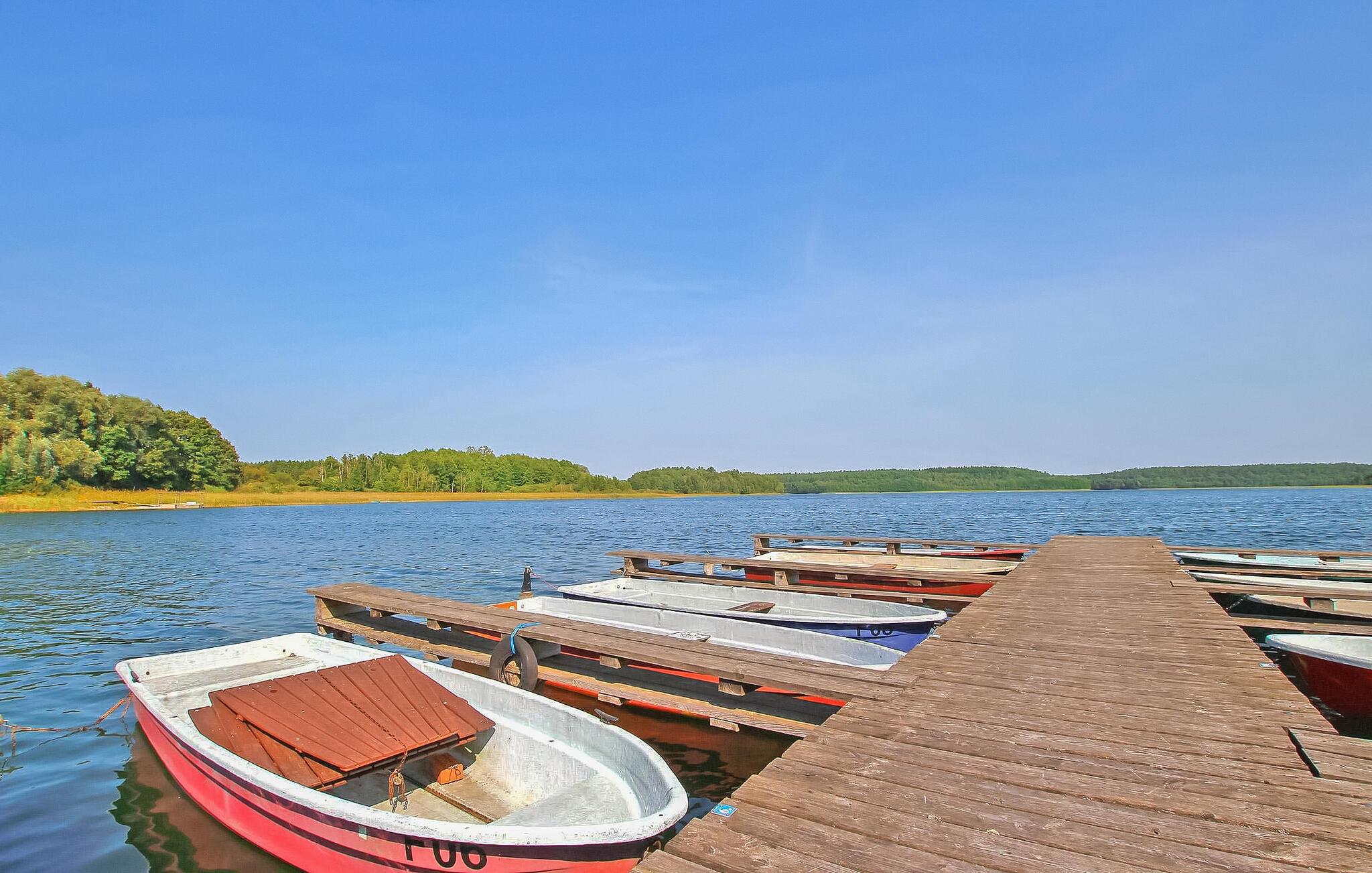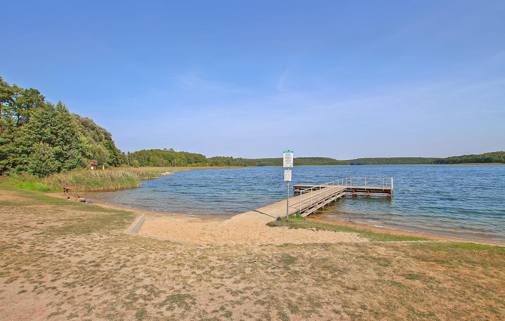 Kun cirka 100 m fra Fürstensee-stranden ligger det hyggelige sommerhus, som sidst er renoveret i 2022, på ejerens 1000 kvm velholdte boligejendom. I stueetagen er der opholdsstue (polstret opholdsområde, spiseplads, LED TV, radio), køkken med el-komfur og ovn samt badeværelse (renoveret, med bruseniche, håndklæderadiator, toilet). soveværelser har hver en dobbeltseng eller 2 enkeltsenge (gennemgangsværelse med dør) er på loftet. Hele universitetet er centralt opvarmet. Der er terrasse med opholdsområde, 2 liggestole, grill, parkeringsplads, cykelkælder og WiFi. En robåd kan benyttes gratis. En offentlig legeplads ligger kun 50 m væk. Den samlede pris inkluderer sengelinned, slutrengøring og vandforbrug. Energi faktureres lokalt baseret på forbrug. Medbring venligst dine egne håndklæder. Kæledyr er ikke tilladt i denne ejendom. Fürstensee, en bydel i byen Neustrelitz (ca. 5 km), ligger midt i et smukt skov- og sølandskab. Søen af samme navn har fremragende vandkvalitet og er en af de mest populære badesøer i hele området. Naturlige badestrande i byen. "Mecklenburg Lakes Cycle Path" løber gennem byen og løber 640 km fra West Mecklenburg til Usedom.