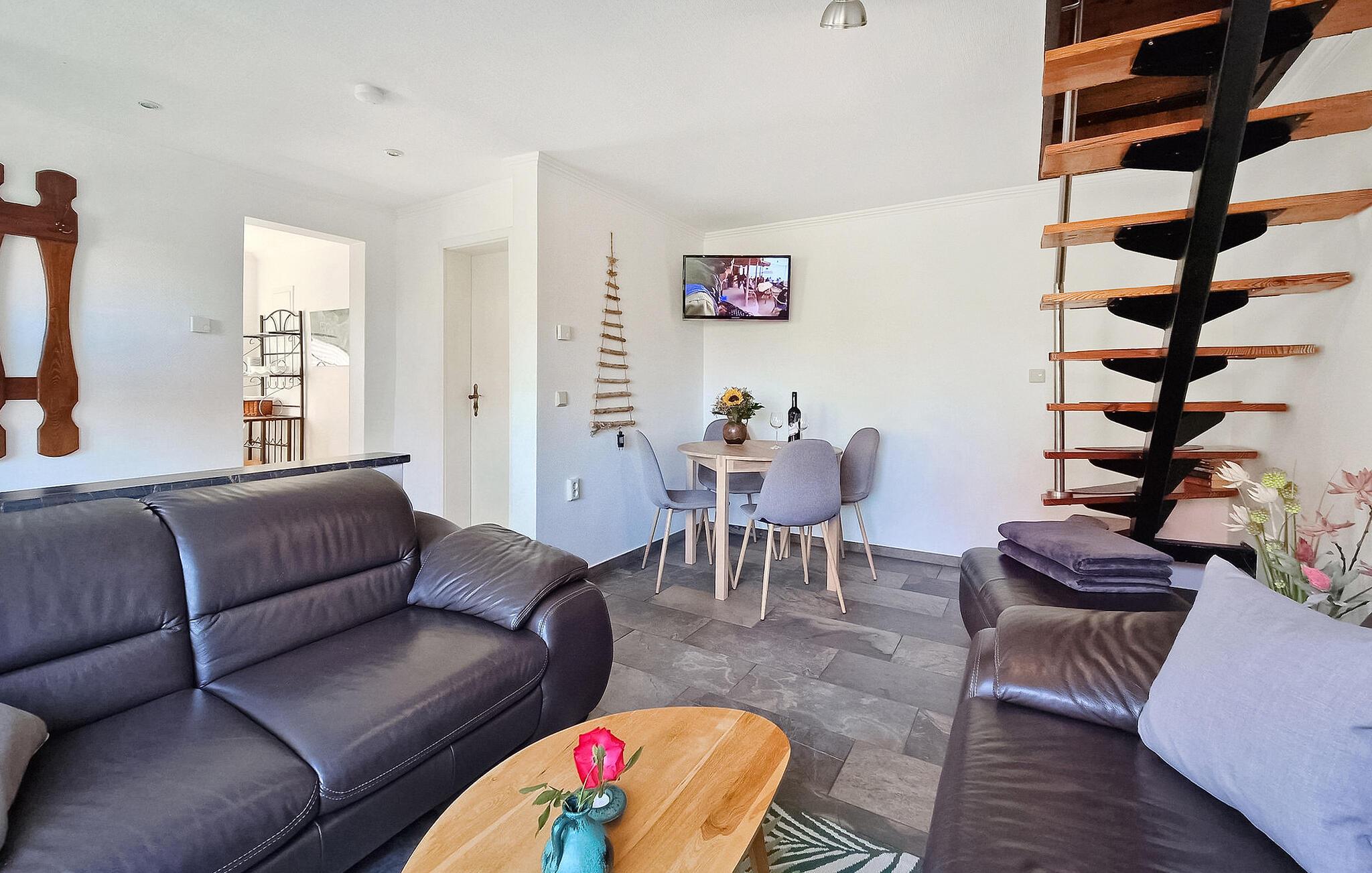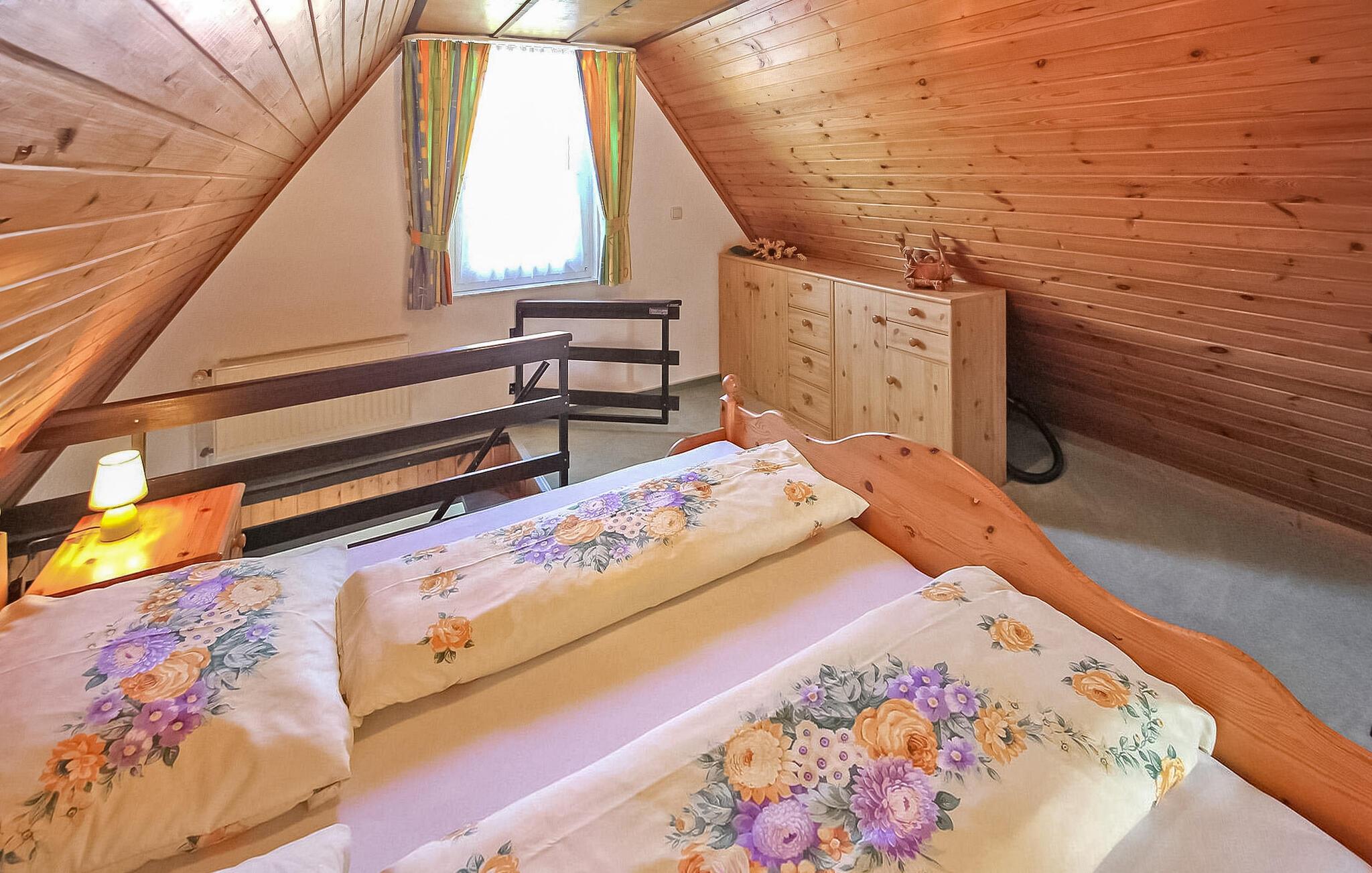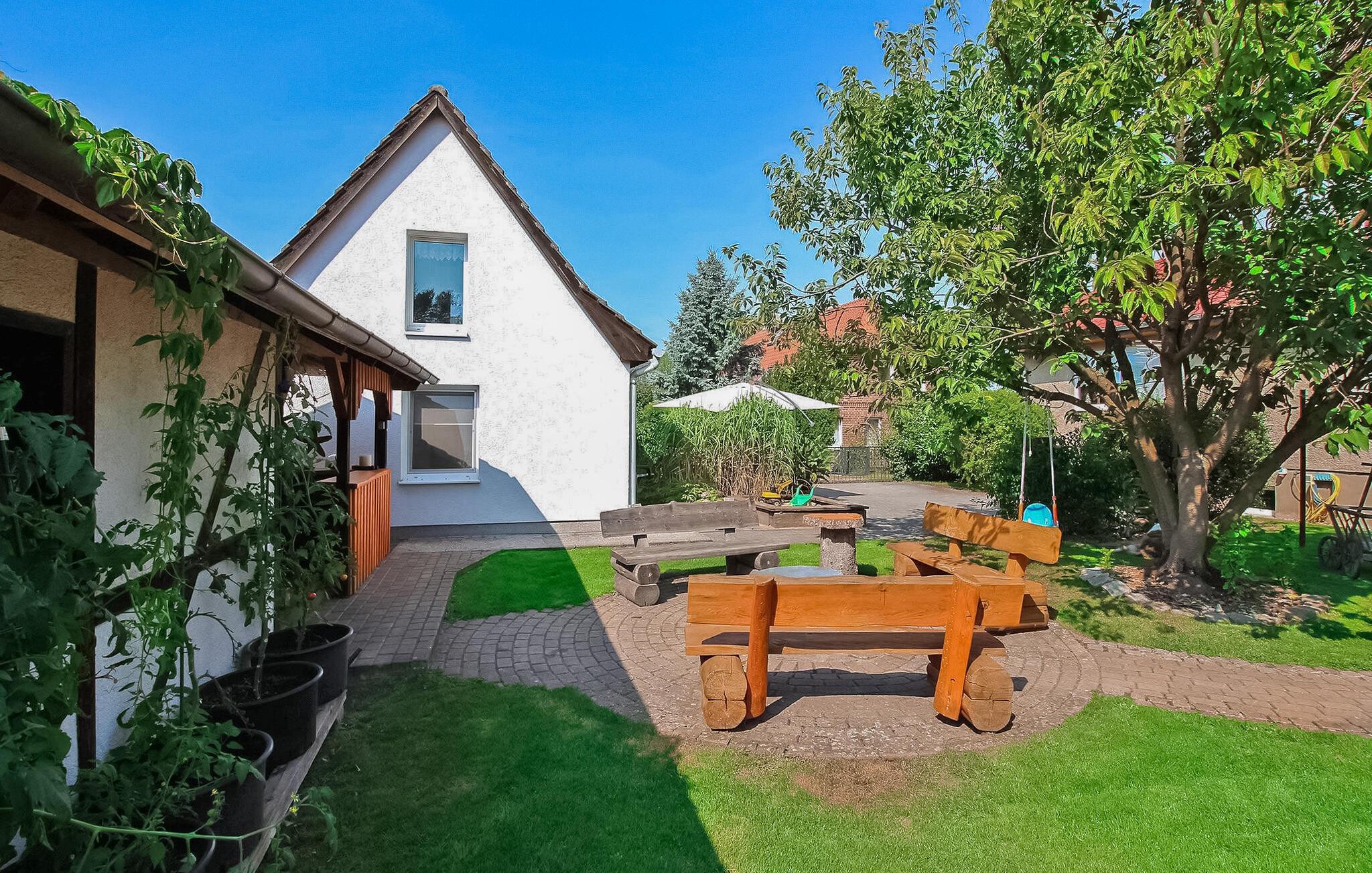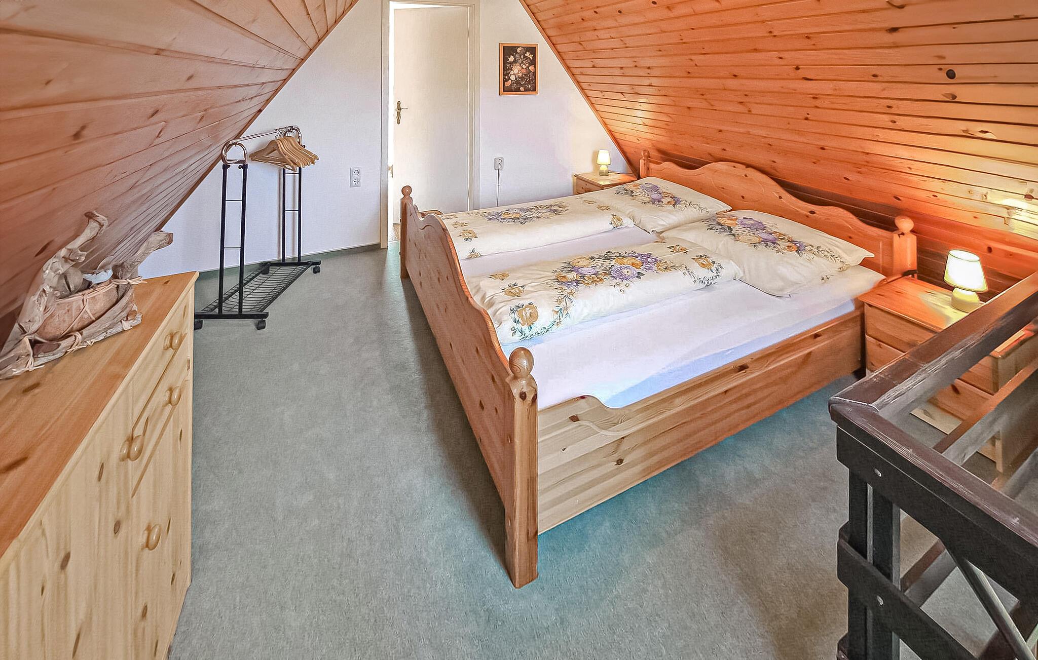 Kun cirka 100 m fra Fürstensee-stranden ligger det hyggelige sommerhus, som sidst er renoveret i 2022, på ejerens 1000 kvm velholdte boligejendom. I stueetagen er der opholdsstue (polstret opholdsområde, spiseplads, LED TV, radio), køkken med el-komfur og ovn samt badeværelse (renoveret, med bruseniche, håndklæderadiator, toilet). soveværelser har hver en dobbeltseng eller 2 enkeltsenge (gennemgangsværelse med dør) er på loftet. Hele universitetet er centralt opvarmet. Der er terrasse med opholdsområde, 2 liggestole, grill, parkeringsplads, cykelkælder og WiFi. En robåd kan benyttes gratis. En offentlig legeplads ligger kun 50 m væk. Den samlede pris inkluderer sengelinned, slutrengøring og vandforbrug. Energi faktureres lokalt baseret på forbrug. Medbring venligst dine egne håndklæder. Kæledyr er ikke tilladt i denne ejendom. Fürstensee, en bydel i byen Neustrelitz (ca. 5 km), ligger midt i et smukt skov- og sølandskab. Søen af samme navn har fremragende vandkvalitet og er en af de mest populære badesøer i hele området. Naturlige badestrande i byen. "Mecklenburg Lakes Cycle Path" løber gennem byen og løber 640 km fra West Mecklenburg til Usedom.