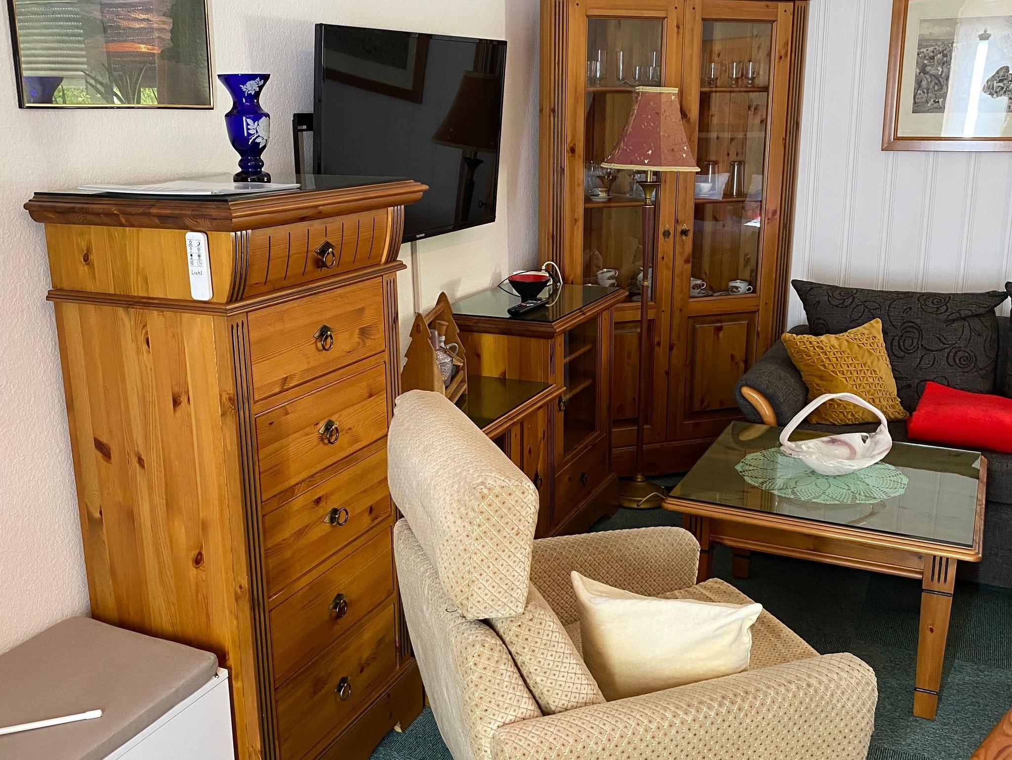 Unsere Ferienwohnung, 2020 vollständig renoviert, gelegen am Waldrand mit großer Pferdekoppel, verfügt über einen kombinierten Wohn-und Schlafbereich, einem Essbereich mit integrierter Küche und einem Bad mit Dusche und WC. Die Wohnung hat einen eigenen Zugang zum Haus.