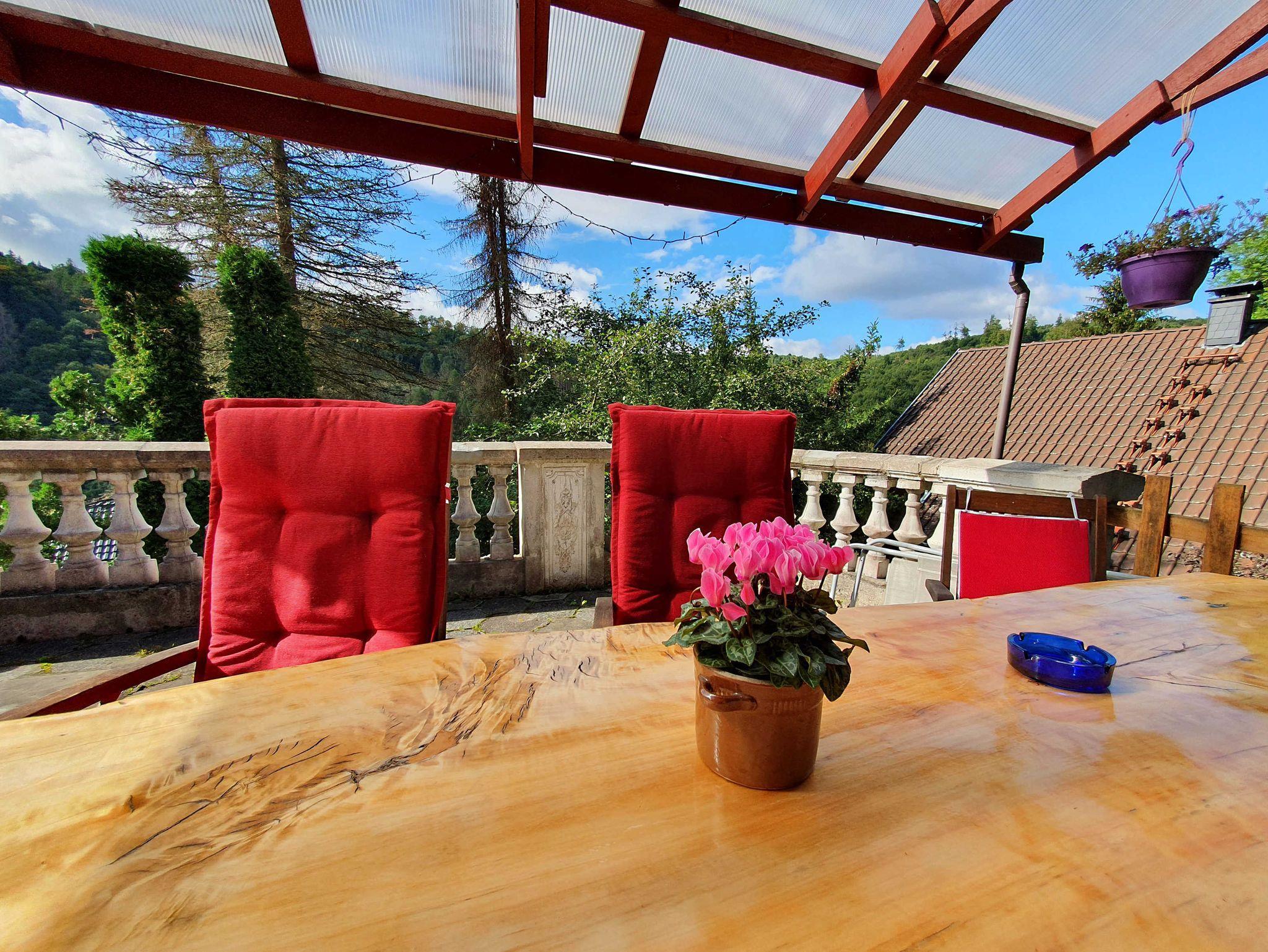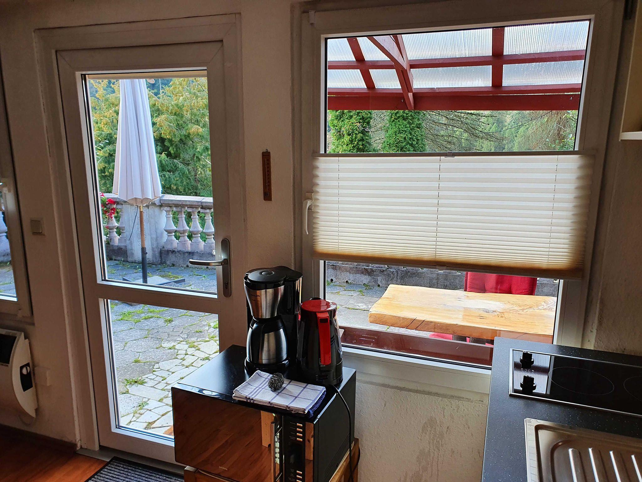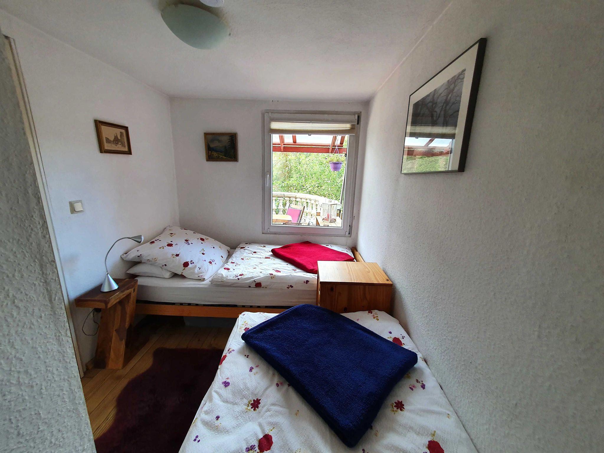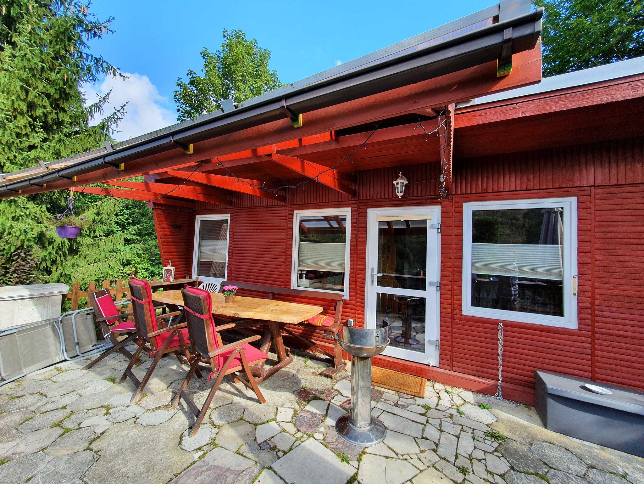 Das Nichtraucher-Ferienhaus im Bungalow-Stil steht auf eine ca. 60 qm großen, natursteinbelegten und vollständig unterkellerten Terrasse, in etwa 480 m Höhe in Südhanglage mit Blick über das Bodetal. Es wurde 2012 vollständig renoviert. Das kleine Bad ist in warmen Farben gehalten und verfügt über Dusche, WC und Handwaschbecken. Die Küche ist als Kombüse gestaltet, sie geht in den Wohnraum über. Die Heizung erfolgt durch einen Kaminofen, es sind auch Elektroheizungen vorhanden. Durch ein Gartentor hinter dem Bungalow kommt man auf einen Wanderweg nach Hüttenrode, zum Krockstein und zur Rapp-Bode-Talsperre durch die arten- und wildreiche Natur des Oberharzes.