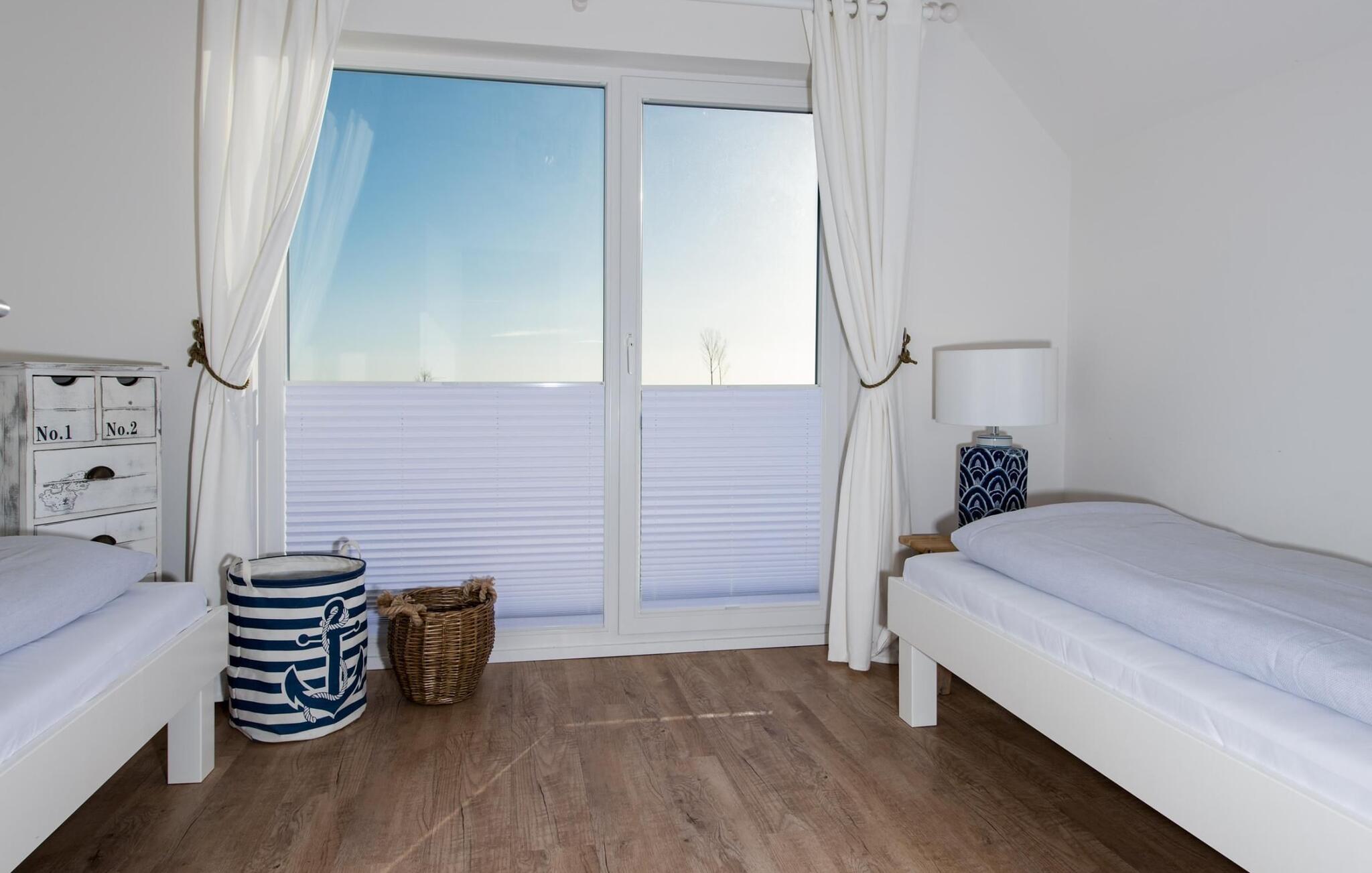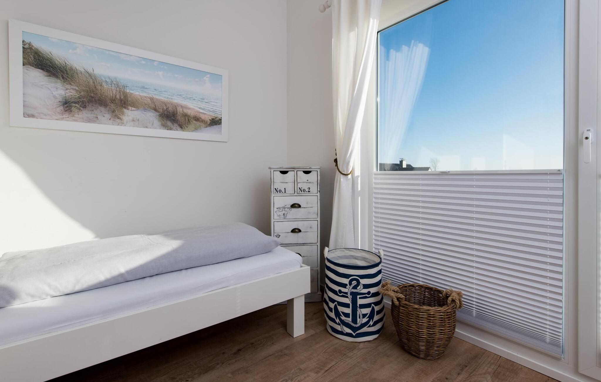 Kun få meter fra Weidefelds sandstrand og havnepromenaden imponerer denne rummelige ferieejendom med sin centrale beliggenhed med en spektakulær udsigt over vandet og stilfuld indretning à la Rhode Island. I kan nyde morgen- og aftensolen på to terrasser.