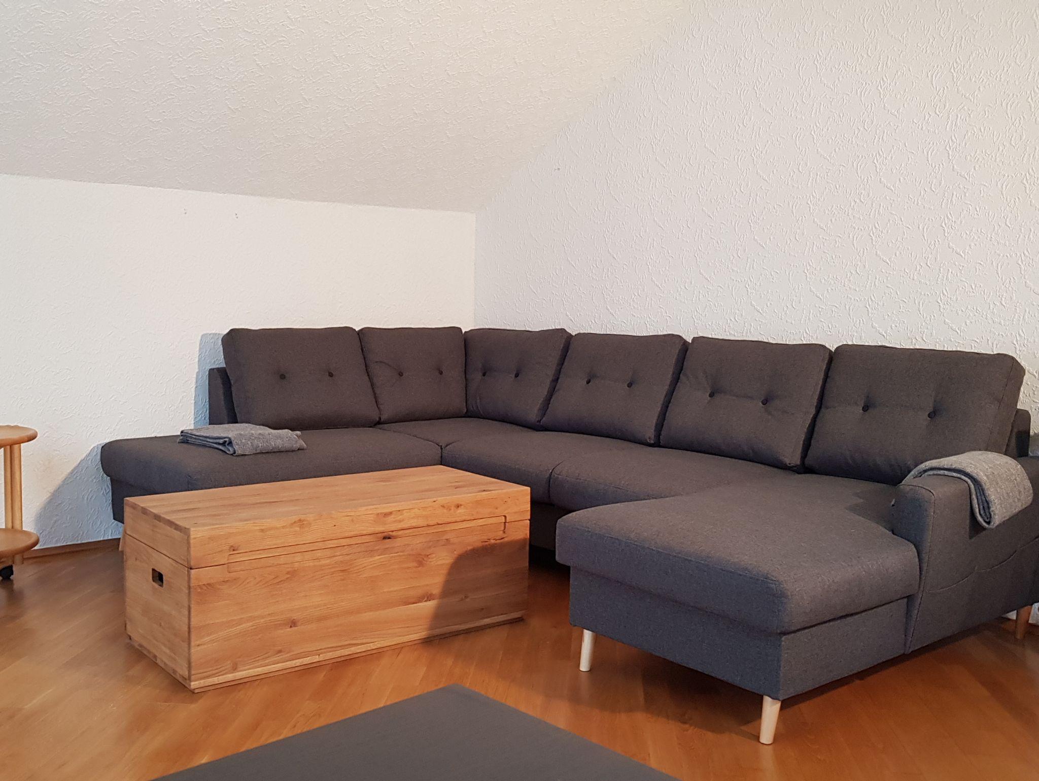 Urlaub in Hessen - nördliche Wetterau / Nähe Vogelsberg Große Dachgeschoß-Wohnung in freistehendem 2 Familienhaus für Ihre persönliche Auszeit oder Ihre Ferien Unsere 75 m2 große, etwas andere DG / Ferien-Wohnung liegt im sehr ruhigen Ortsteil Nidda Ober-Lais in der nördlichen Wetterau in Hessen, inmitten einer herrlichen Naturlandschaft die zur Erholung in der Natur und zur Entschleunigung vom Alltag einlädt. Der Parkplatz befindet sich direkt am Haus Die Wohnung ist über 2 Treppen im Treppenhaus erreichbar. Bereits beim Betreten erzeugt die helle und ruhige Wohnung ein Gefühl des Angekommenseins. Die beiden großen Giebeltürenfenster erlauben einen schönen Blick auf die umliegenden Felder und Wiesen. Direkt nach dem Eingang findet man eine Garderobe mit Infotafel. Die Wohnung selbst verfügt über 2 schöne separate Räume. Einen großen Wohn / Essbereich mit Zugang zur offenen Küche sowie zum Bad mit Dusche und WC. Hier ist auch der Zugang zu einem Schlafzimmer direkt unter der Dachschräge mit einem 2 einfach gehaltenen Futonbetten. Ein großes Dachgiebel Türenfenster gibt Helligkeit. Weiterhin hat man Zugang zu einem modernen Wohnzimmer mit Parkettboden, einer großen Couchlandschaft mit Schlafmöglichkeit, einer chilligen Liege-Leseecke und einem Arbeitsplatz. Internet-TV, WLAN, und ebenfalls ein großes Dachgiebel Türenfenster runden den angenehmen Eindruck des Raumes ab. 2 Kommoden geben Stauraum für Kleider und andere Dinge Die offene Küchenzeile verfügt über