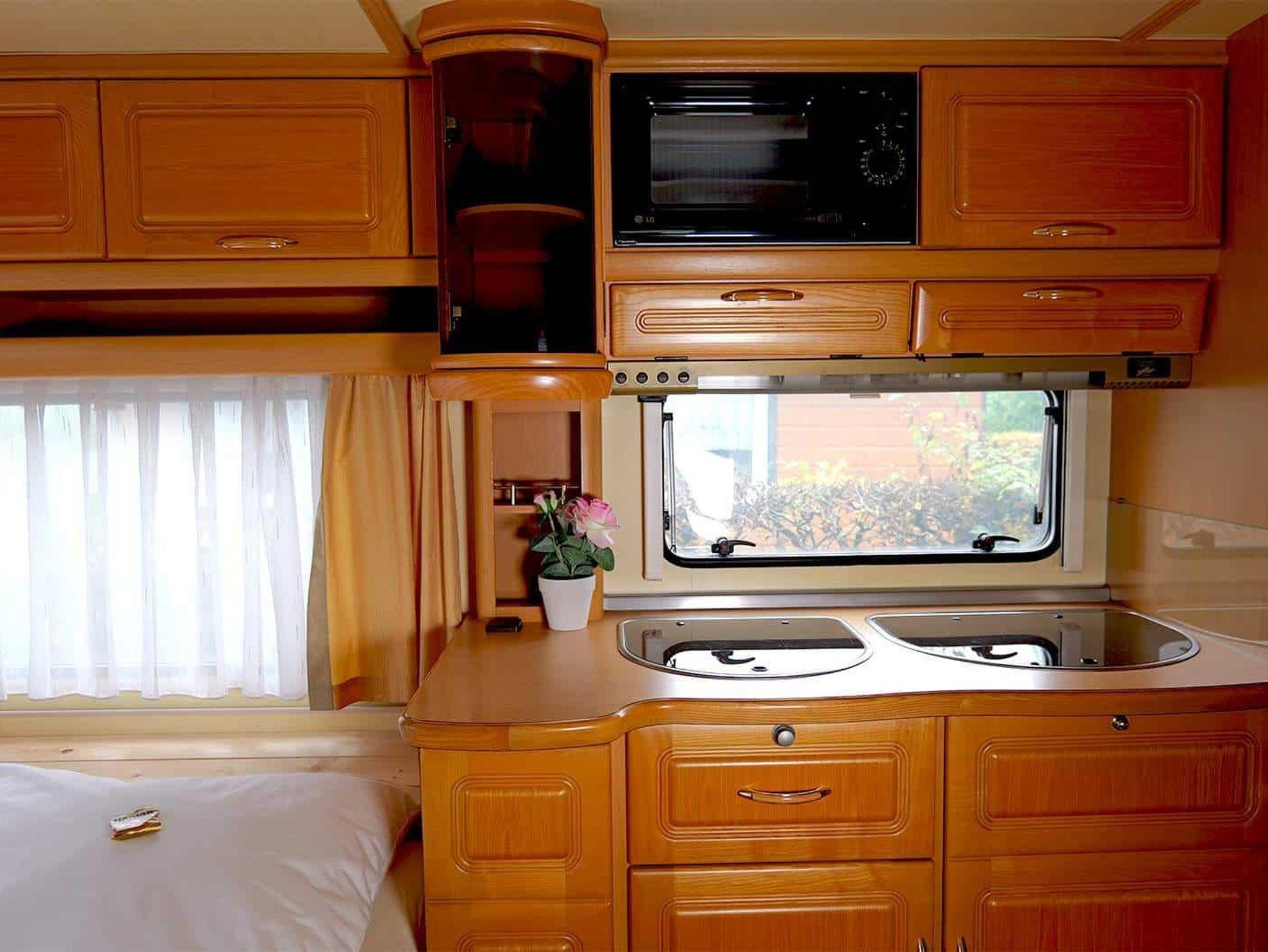 Hier schläfst du komfortabel im Wohnwagen. Es gibt zwei voneinander getrennte Doppelbetten. Gerne kannst du deine eigene Bettwäsche und Handtücher mitbringen oder sie bei uns dazubuchen. Im festen Vorbau wartet eine komplett eingerichtete Küche mit Essecke auf dich, ausgestattet mit Koch- und Essgeschirr. Ein TV gehört ebenfalls zur Einrichtung. Ein kleines Badezimmer mit WC und Handwaschbecken sorgt für eine angenehme Wohlfühlatmosphäre (Duschen kannst du gegen ein kleines Entgelt in unseren Campingeinrichtungen). Eine Heizung sorgt dafür, dass es auch in der kalten Jahreszeit schön warm ist. Unter der überdachten Terrasse findest du gemütliche Sitzgelegenheiten, wo du auch grillen kannst. Diese Terrasse ist verschließbar, so dass dein Hund dort laufen kann. Dein Fahrzeug parkst du direkt am Objekt. Gerne kannst du deine eigene Bettwäsche und Handtücher mitbringen oder sie bei uns dazubuchen.