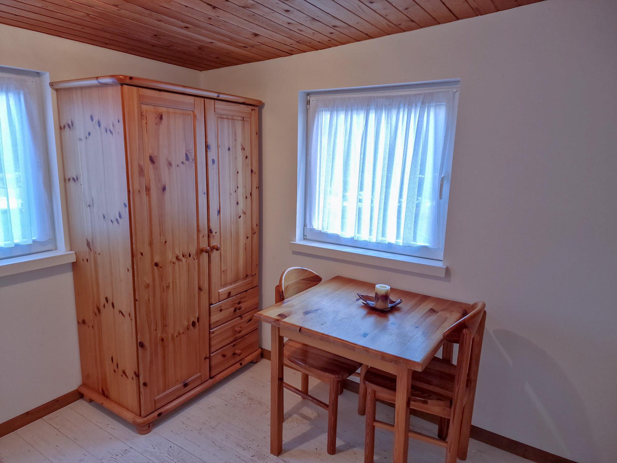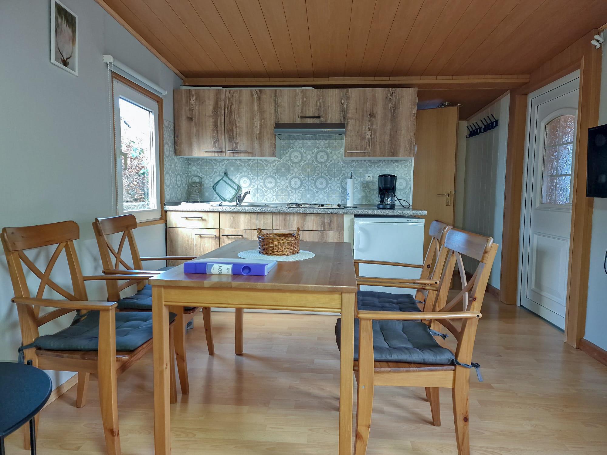 Hier bist du großzügig eingerichtet: In diesen Mobilheimen warten zwei Schlafzimmer auf dich, eine komplett eingerichtete Wohnküche und eine Zentralheizung. Im zweiten Schlafzimmer findest du ein Etagenbett und ein ausklappbares Zusatzbett, sodass insgesamt fünf Schlafplätze zur Verfügung stehen. Ein TV ist ebenfalls Teil der Ausstattung. Ein kleines Badezimmer mit WC, Dusche und Handwaschbecken sorgt für eine angenehme Wohlfühlatmosphäre. Der Vorraum bietet Platz für dein Gepäck und hat eine zusätzliche Sitzgelegenheit mit Tisch. Auf der Terrasse kannst du sitzen und grillen, während du die Natur genießt. Dein Fahrzeug parkst du direkt am Objekt. Du kannst gerne deine eigene Bettwäsche und Handtücher mitbringen oder sie bei uns dazubuchen. Gegenüber im SB & Café Hetzingen kannst du über unsere Gäste-App Brötchen vorbestellen oder nach Voranmeldung dort frühstücken!