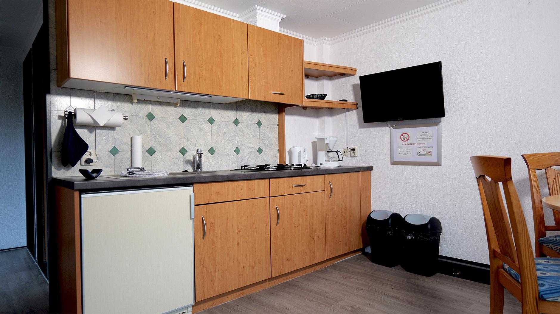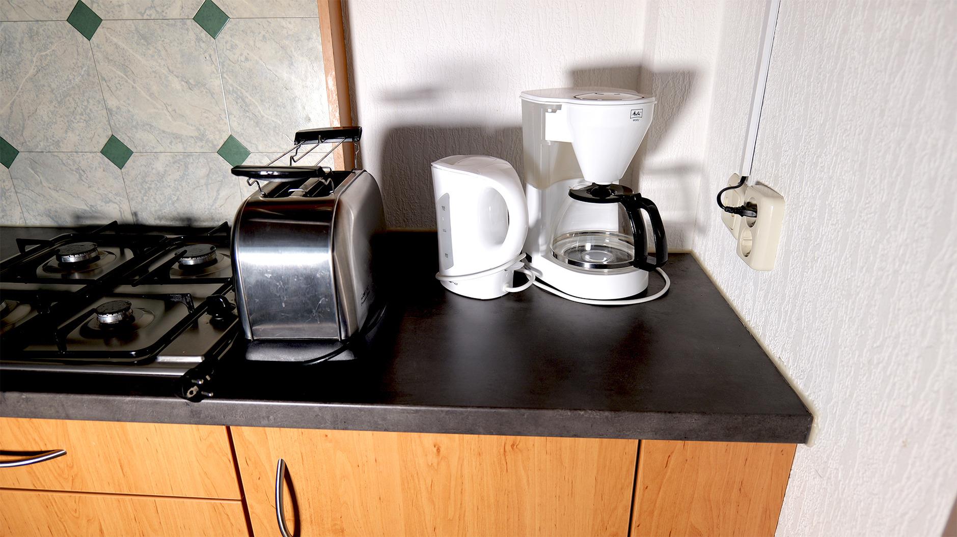 Über die neben dem Objekt beginnende Treppe erreichst du das SB & Café Hetzingen. Dort kannst du bis 20 Uhr über die Gäste-App Brötchen vorbestellen oder nach Absprache frühstücken.