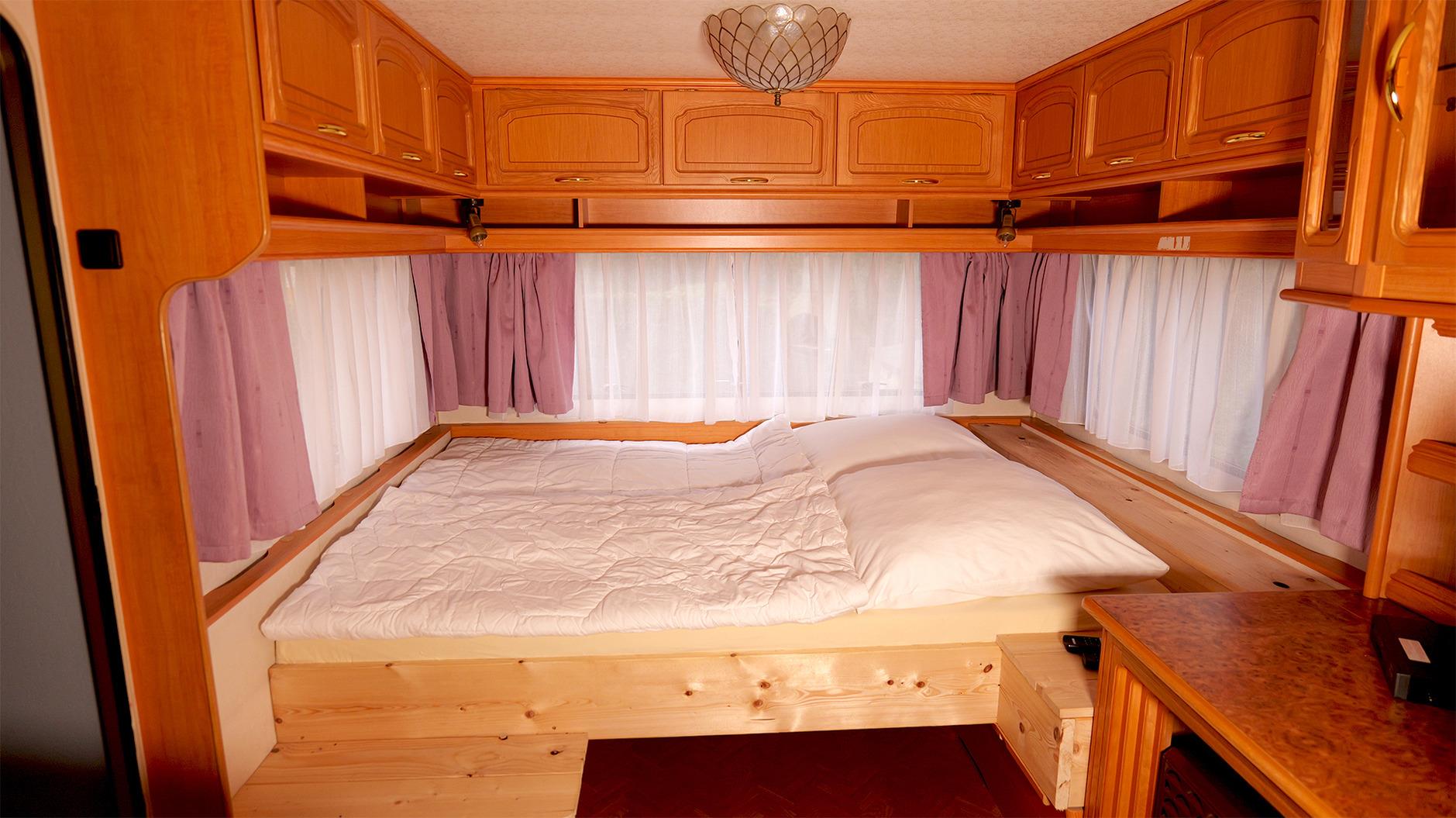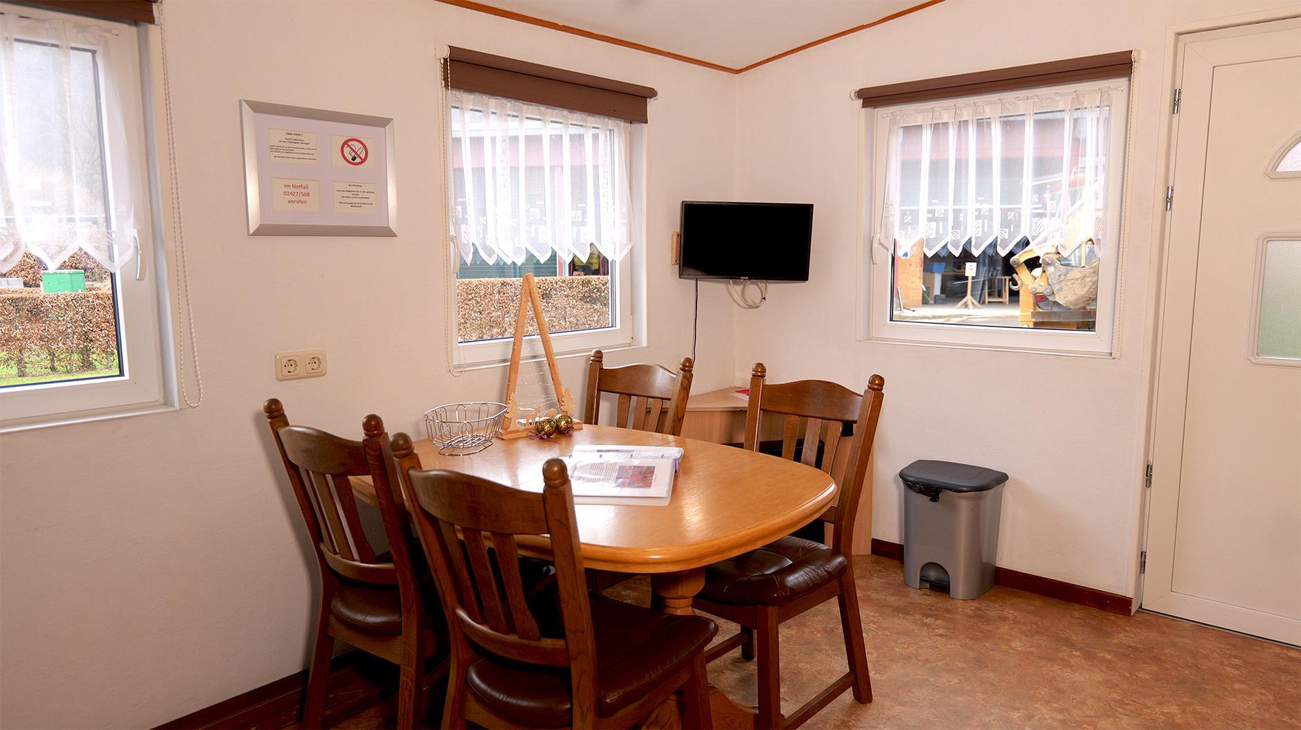 Hier schläfst du komfortabel im Wohnwagen. Dort erwarten dich zwei voneinander getrennte Doppelbetten. Im festen Vorbau findest du eine komplett eingerichtete Küche mit Essecke, ausgestattet mit Koch- und Essgeschirr. Ein TV gehört ebenfalls zur Einrichtung. Ein kleines Badezimmer mit WC, Dusche und Handwaschbecken sorgt für eine angenehme Wohlfühlatmosphäre. Eine Truma-Heizung sorgt dafür, dass es auch in der kalten Jahreszeit schön warm ist. Auf der überdachten Terrasse hast du Sitzgelegenheiten und die Möglichkeit zu grillen. Dein Fahrzeug parkst du direkt am Objekt. Gerne kannst du deine eigene Bettwäsche und Handtücher mitbringen oder sie bei uns dazubuchen.