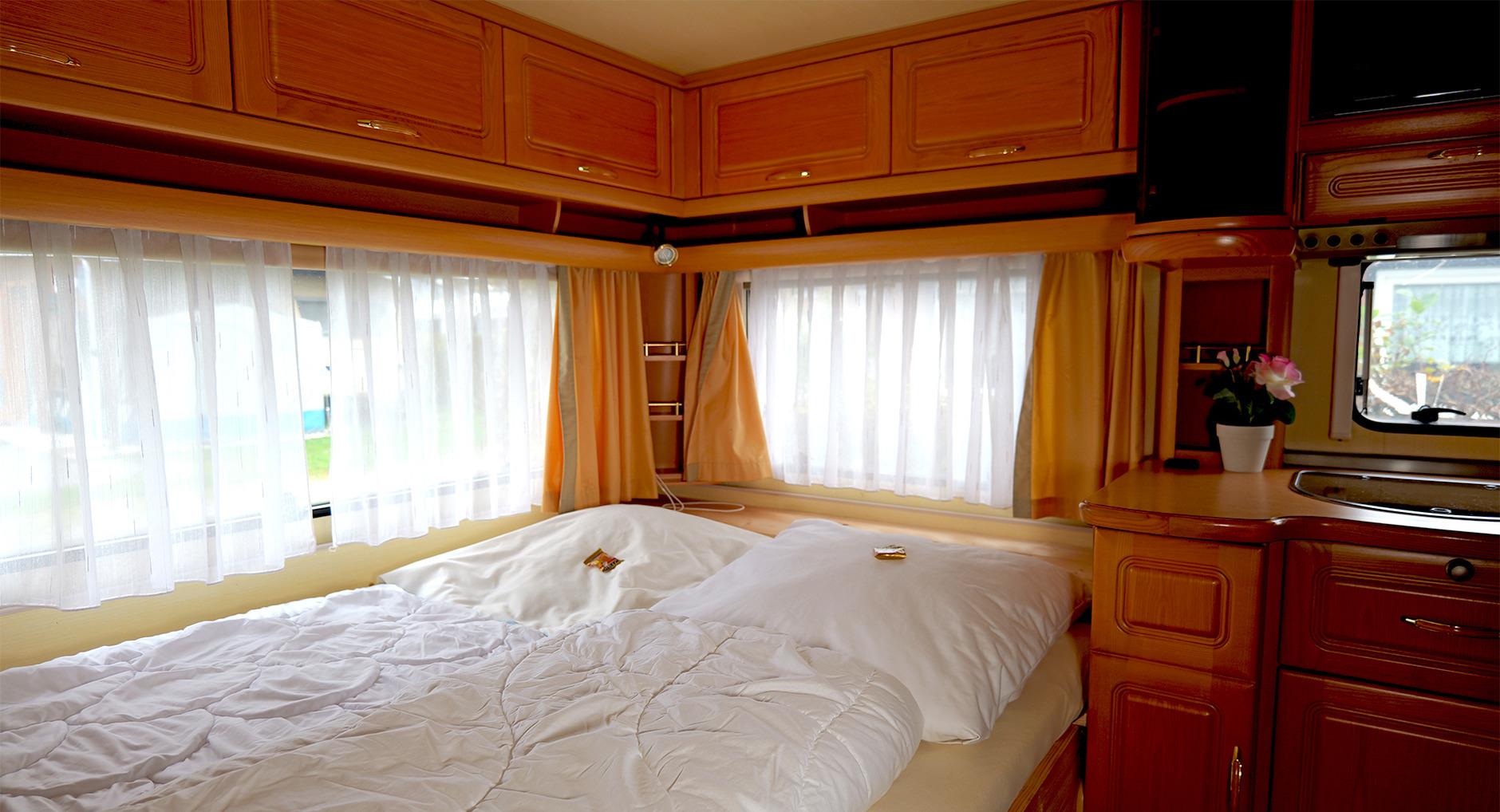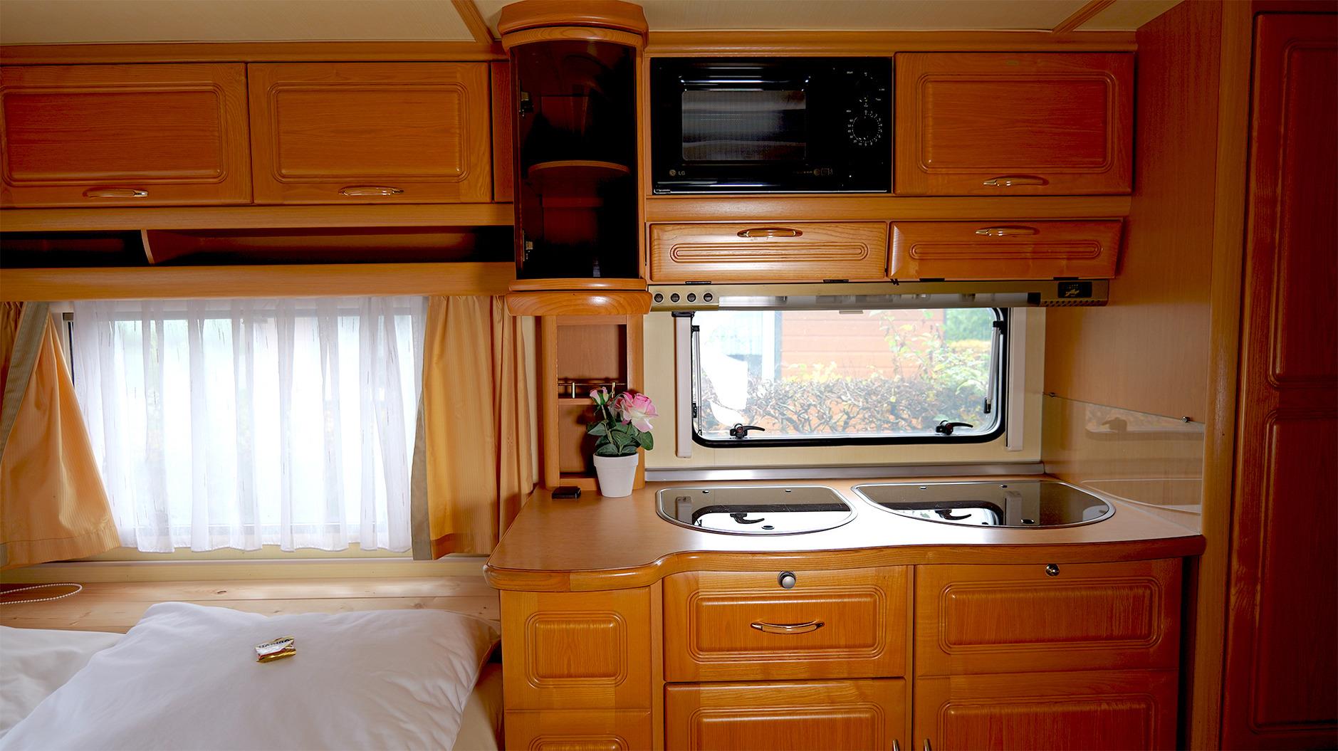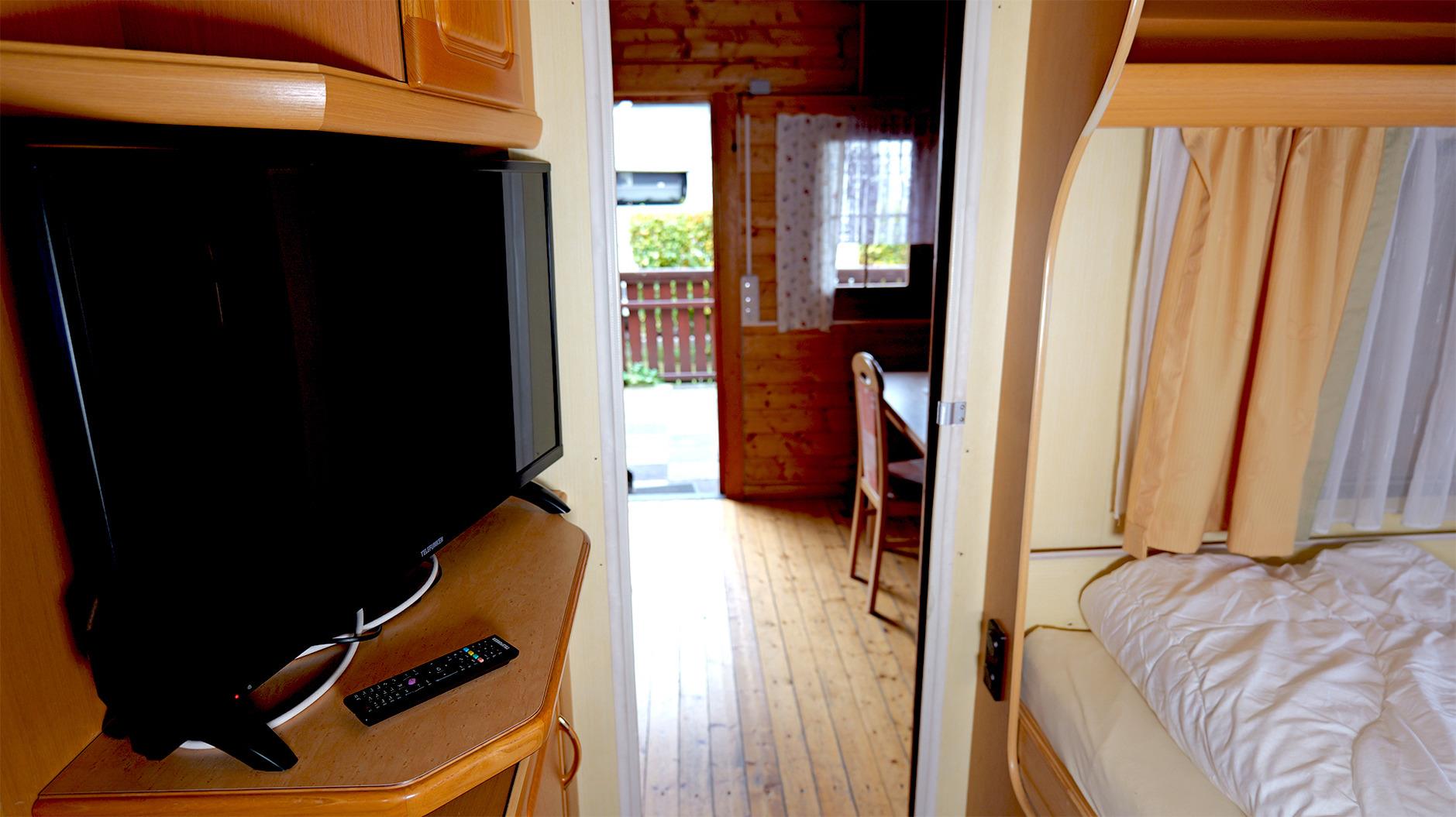 Hier schläfst du komfortabel im Wohnwagen. Es gibt zwei voneinander getrennte Doppelbetten. Gerne kannst du deine eigene Bettwäsche und Handtücher mitbringen oder sie bei uns dazubuchen. Im festen Vorbau wartet eine komplett eingerichtete Küche mit Essecke auf dich, ausgestattet mit Koch- und Essgeschirr. Ein TV gehört ebenfalls zur Einrichtung. Ein kleines Badezimmer mit WC und Handwaschbecken sorgt für eine angenehme Wohlfühlatmosphäre (Duschen kannst du gegen ein kleines Entgelt in unseren Campingeinrichtungen). Eine Truma-Heizung sorgt dafür, dass es auch in der kalten Jahreszeit schön warm ist. Unter der überdachten Terrasse findest du gemütliche Sitzgelegenheiten, wo du auch grillen kannst. Diese Terrasse ist verschließbar, so dass dein Hund dort laufen kann. Dein Fahrzeug parkst du direkt am Objekt. Gerne kannst du deine eigene Bettwäsche und Handtücher mitbringen oder sie bei uns dazubuchen.
