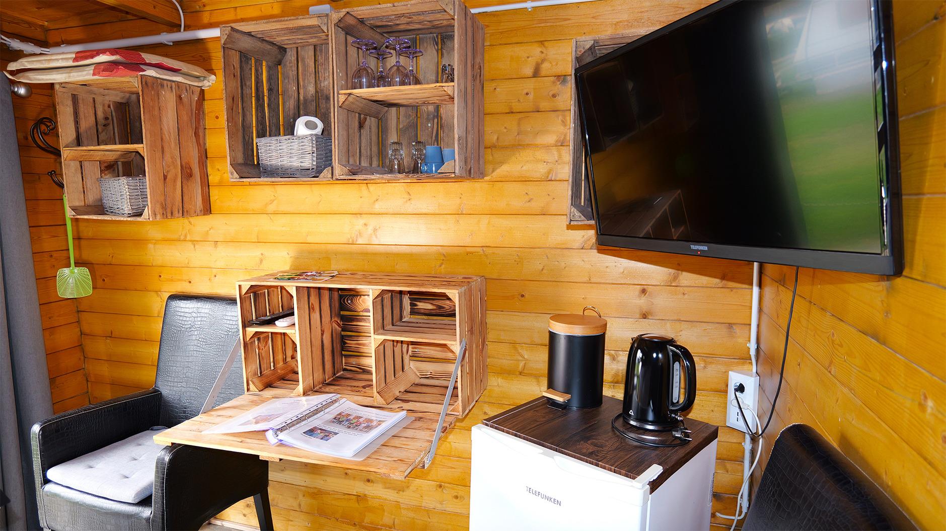 Eine besondere Alternative erwartet dich in "Onkel Toms Hütte", die mit einem bequemen Doppelbett, zwei Stühlen, einem kleinen Tisch, einem Fernseher und einer Truma-Heizung ausgestattet ist. Auf der kleinen Außenterrasse kannst du mit Blick auf die Eifel entspannen! Wenn du magst, bring dir gerne einen Grill mit.