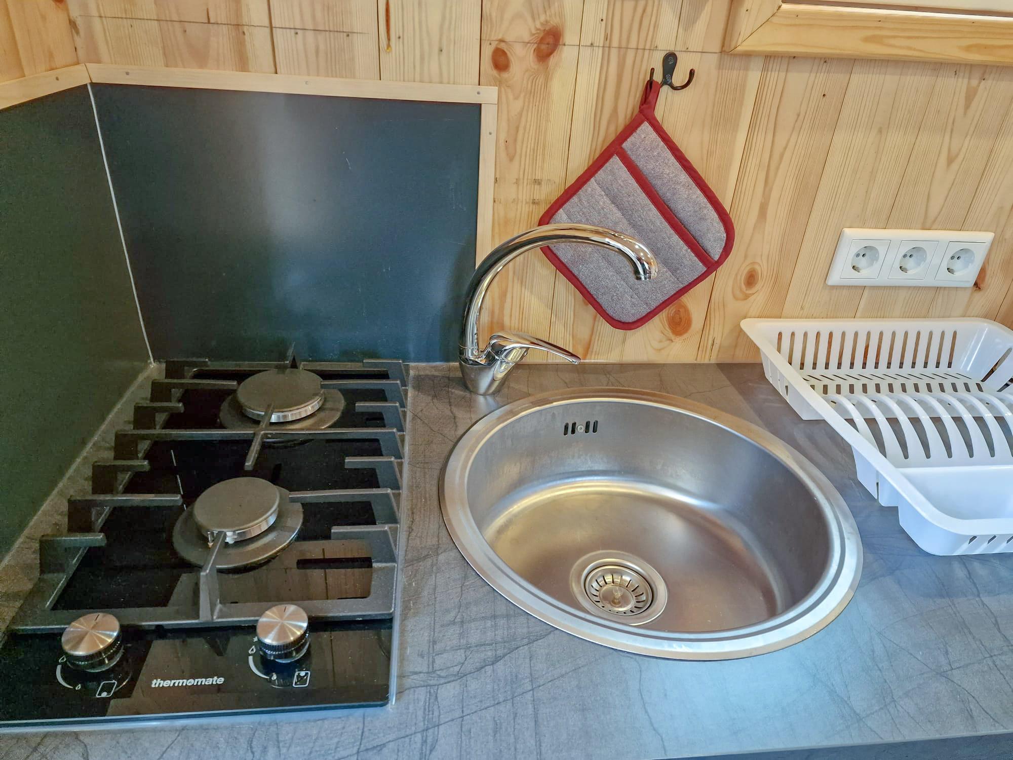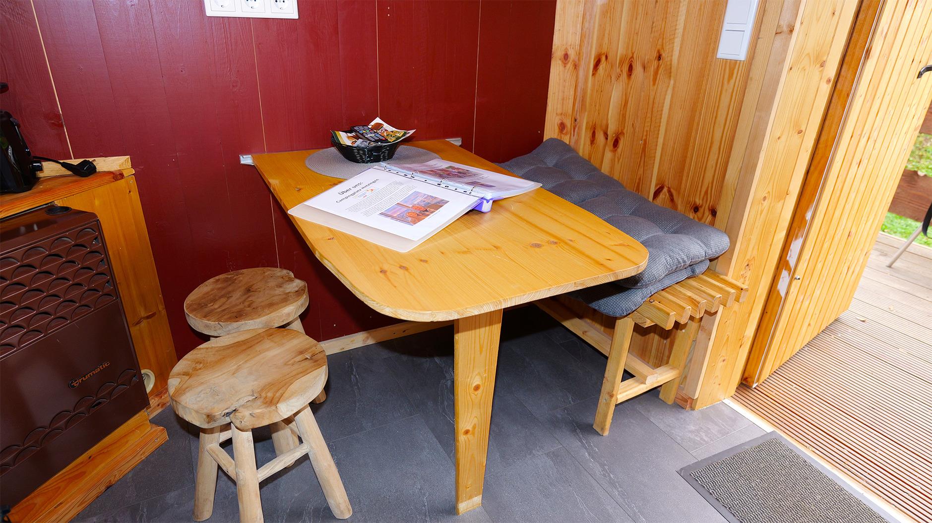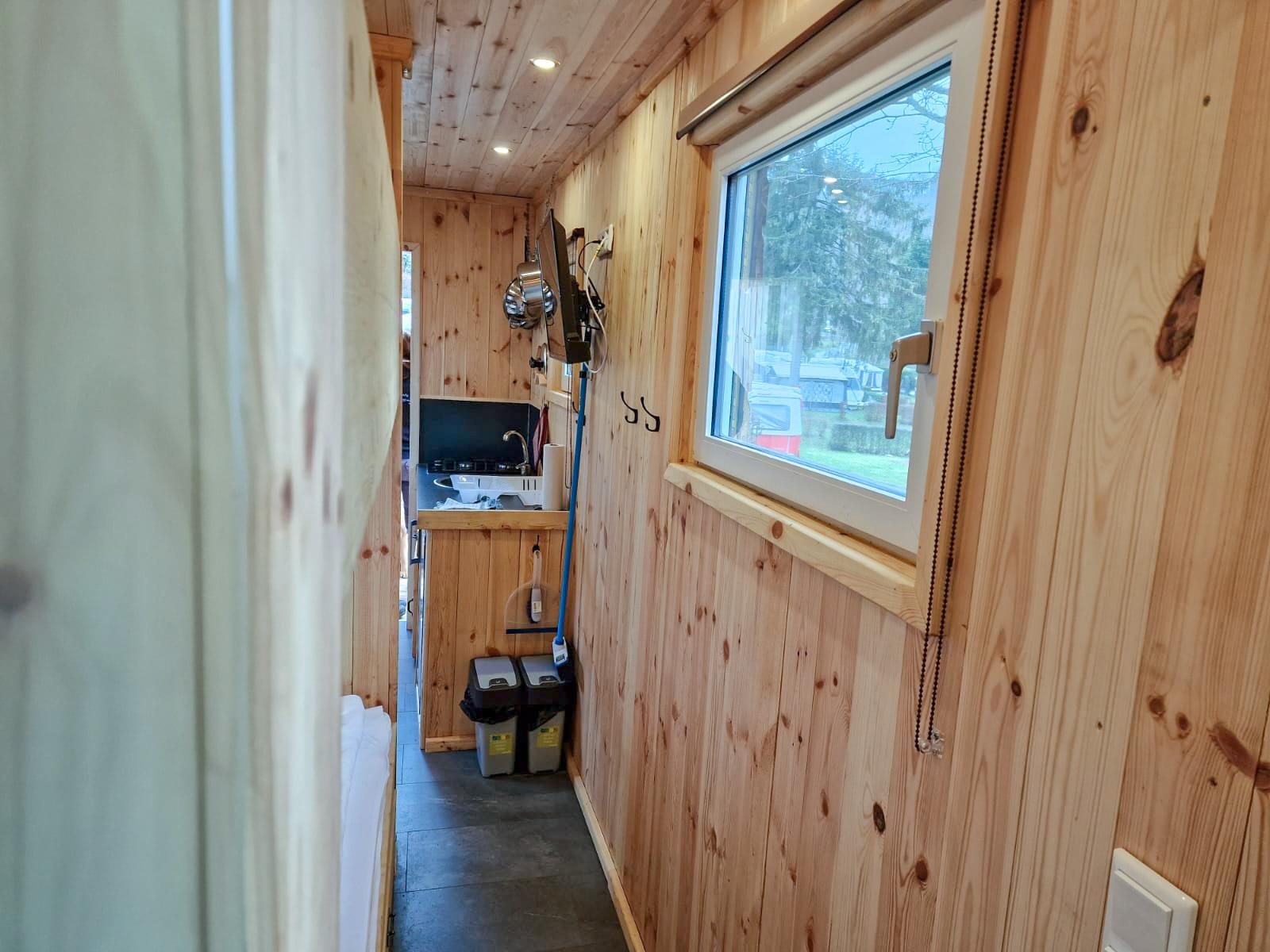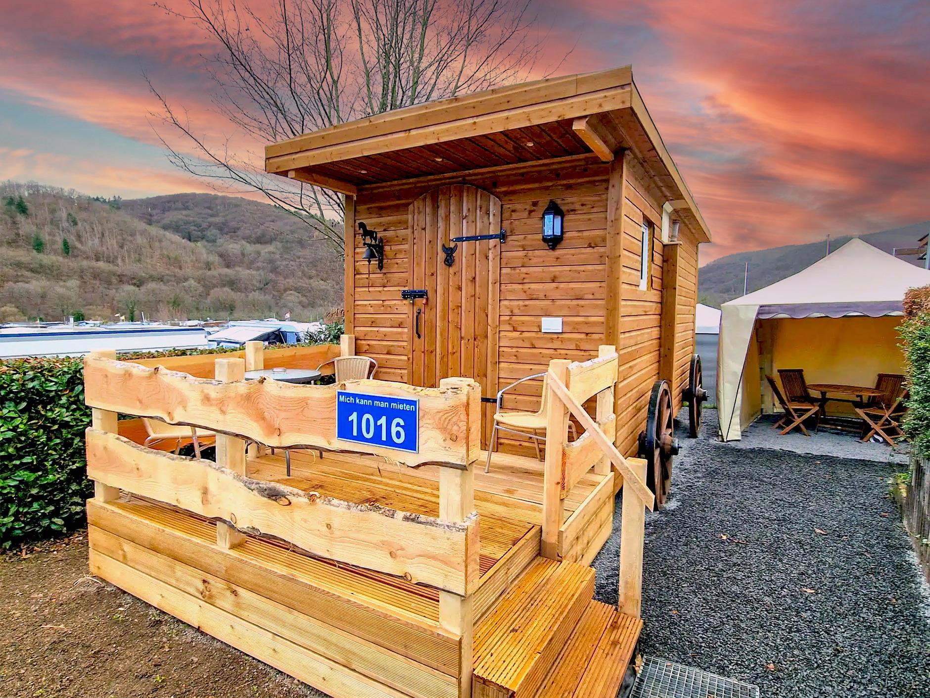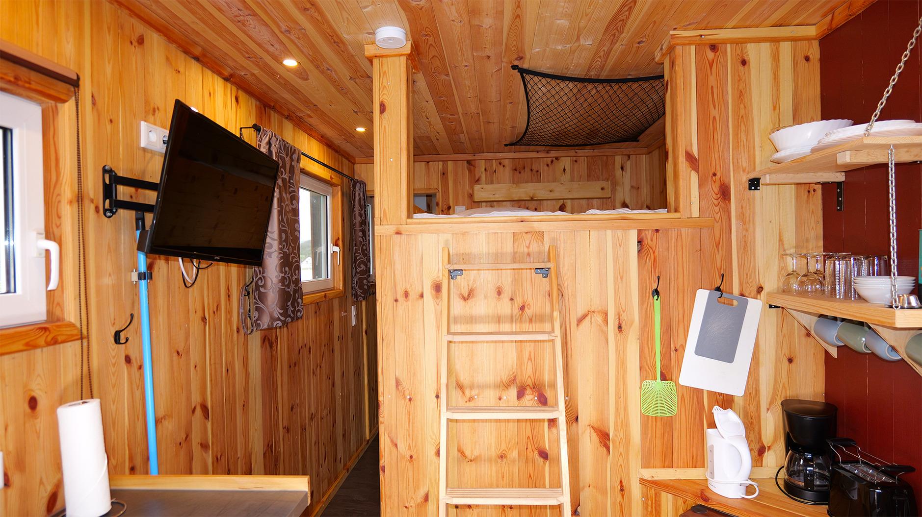 Es ist ein besonderes Projekt und eine Kreation des Teams Campingplatz Hetzingen: Im "Nideggener Bauwagen" genießt du "Glamping" auf die besondere Art. Du schläfst trocken und warm im Doppel-Etagenbett, profitierst von einer voll eingerichteten Küche und hast eine Dusche, ein eigenes WC und Handwaschbecken. Setze dich bequem an Bank und Tisch und schau dabei fern. Auf einer kleinen Terrasse stehen Sitzgelegenheiten für dich bereit. Ein Grill ist vor Ort und ein Grillplatz nicht weit entfernt. Ein Pavillon mit Seitenwänden schützt dich vor Wettereinflüssen. Sehr gerne kannst du deine eigene Bettwäsche und Handtücher mitbringen oder bei uns dazubuchen. Dein Fahrzeug parkst du direkt am Objekt.