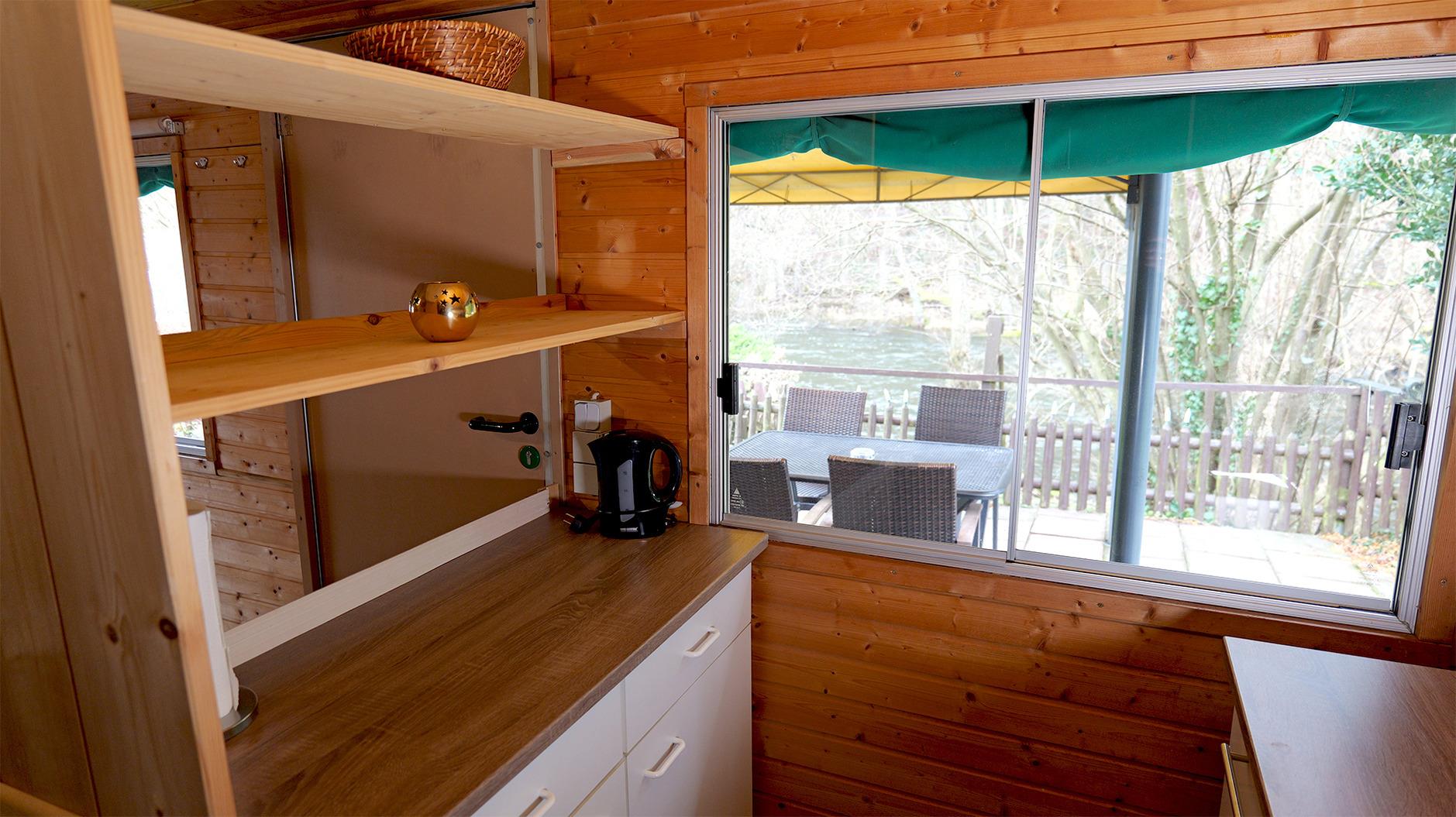 Es ist eines der Lieblingsobjekte unserer Gäste: Du stehst direkt an der Rur und schaust vom Garten hinunter auf das Wasser. Schlafen wirst du komfortabel im Wohnwagen. Es gibt dort zwei Doppelbetten, sodass vier Personen bequem übernachten können. Ein Kind kann gegebenenfalls zusätzlich in einer umklappbaren Sitzecke schlafen. Im ausgebauten Vorbau findest du eine Küche mit Essecke – komplett eingerichtet mit Koch- und Essgeschirr. Ein TV im Vorraum und ein weiteres im Wohnwagen gehören ebenfalls zur Einrichtung. Ein kleines Badezimmer mit WC, Dusche und Handwaschbecken sorgt für Wohlfühlatmosphäre. Eine Truma-Heizung im Vorraum und eine weitere im Anbau garantieren angenehme Temperaturen in der kalten Jahreszeit. Auf der Terrasse hast du Sitzgelegenheiten unter einem Pavillon und kannst grillen. Es gibt einen Garten und einen kleinen untiefen Teich. Das Grundstück ist eingefasst, sodass sich dein Hund dort frei bewegen kann. Über ein Gartentor und eine Treppe erreichst du den Ruruferweg. Dein Fahrzeug parkst du am Objekt. Sehr gerne kannst du deine eigene Bettwäsche und Handtücher mitbringen oder bei uns dazubuchen.