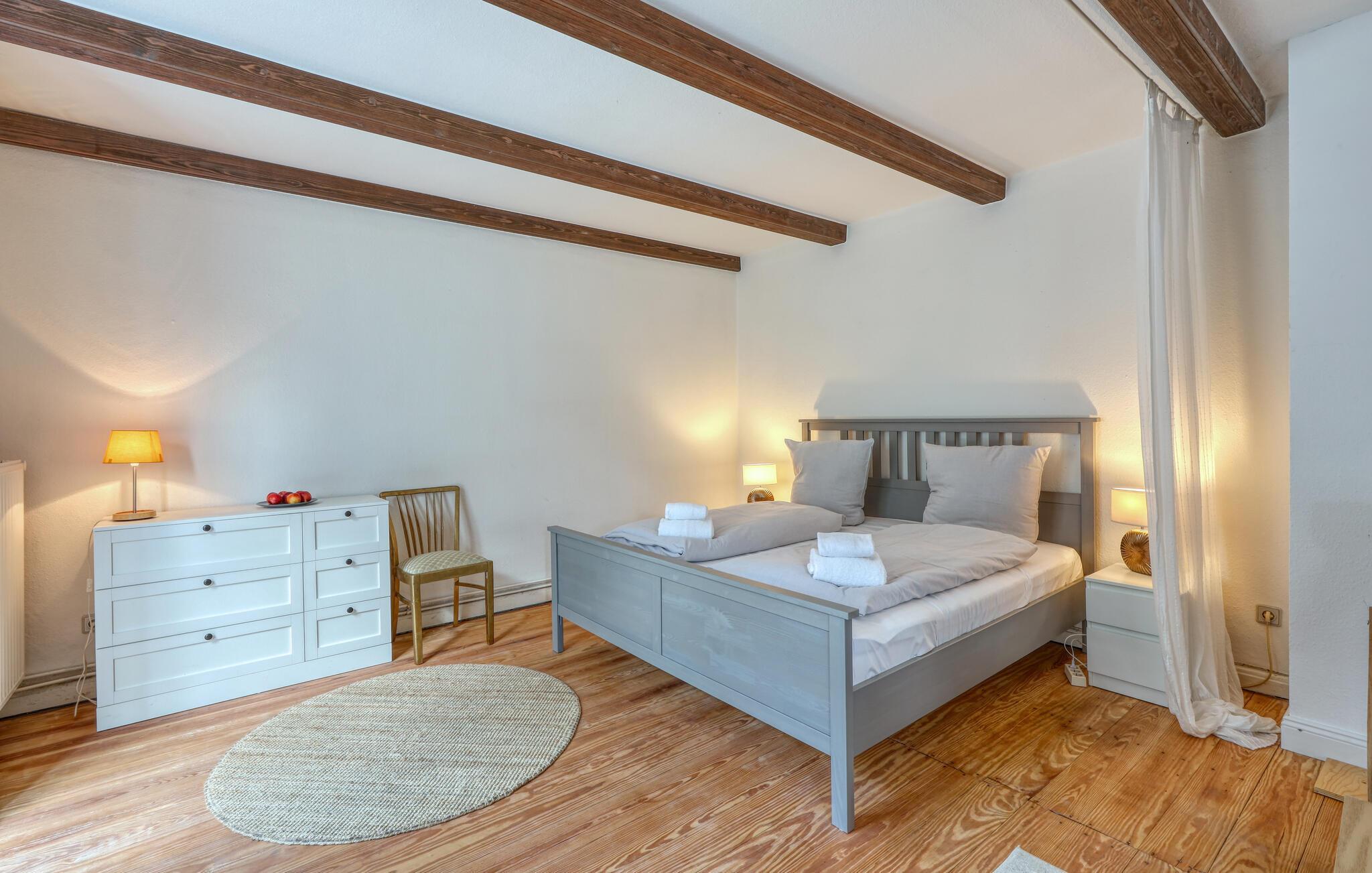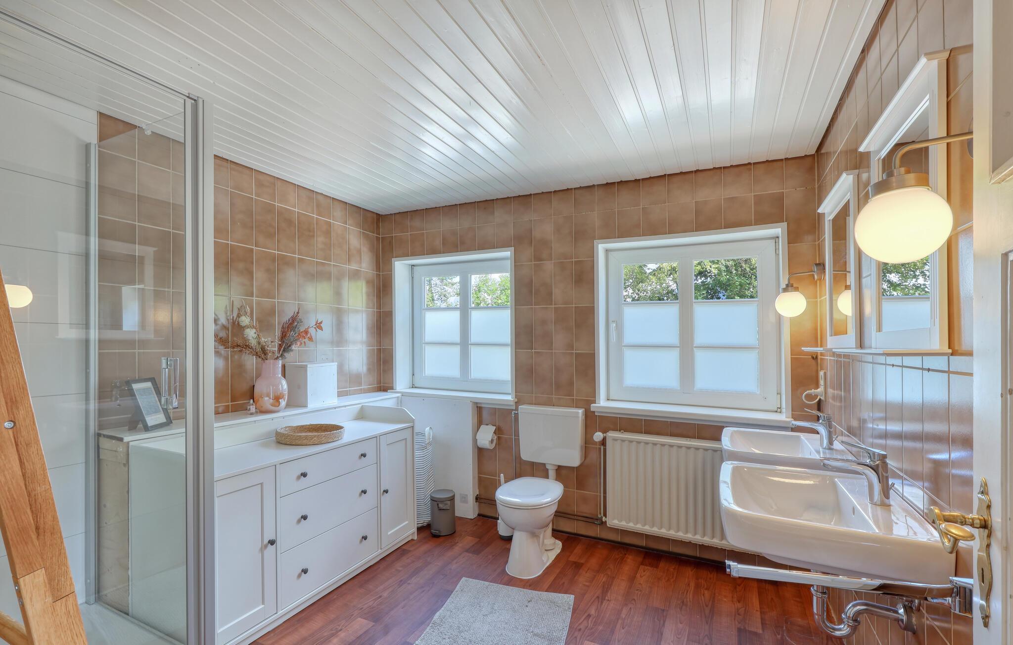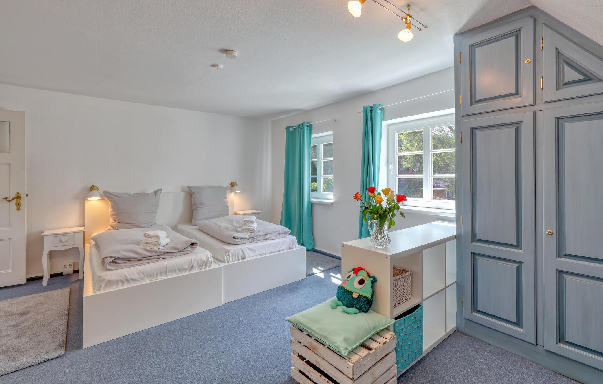 Fordyb jer i charmen ved dette indbydende feriehus i Niebüll. Det flotte interiør har en moderne, men varm atmosfære, perfekt til en afslappende pause. Store vinduespartier oversvømmer rummene med naturligt lys og giver en vidunderlig udsigt over den omkringliggende natur. Den hyggelige opholdsstue lægger op til afslappende aftener. Spisekøkkenet er et højdepunkt for madlavningselskere, udstyret med gode hvidevarer og en tilstødende, lys spiseplads til hyggelige måltider.