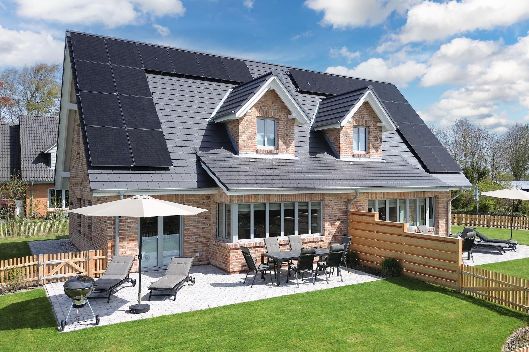 Dette nybyggede feriehus kan rumme op til fem personer. Dobbelthuset er moderne og eksklusivt møbleret og byder på alt hvad du behøver til dit ophold. Den rummelige opholdsstue indbyder til hyggelige tv-timer med en skøn sofagruppe (sovesofa). Det åbne køkken er meget veludstyret: opvaskemaskine, køleskab, fryser, ovn, induktionskomfur, emhætte, vinkøleskab, Nespresso-maskine, filterkaffemaskine (filterstørrelse 4), elkedel og brødrister. Ydermere er din firbenede ven meget velkommen. Haven er omgivet af et lærkehegn af høj kvalitet og en lingushæk. Indkvarteringen tilbyder også opladningsmuligheder (mod betaling) og parkering til dine elcykler og/eller elbiler. Naboejendom: DE-25899-56 Højdepunkter: WiFi (fiberoptisk), sauna, vaskeripakke & slutrengøring Det nye hus (byggeår 2022/23) ligger i et roligt villakvarter i udkanten af Niebüll og kun få minutters gang fra marker og enge. Deezbüll's Biikeplatz, elsket af lokalbefolkningen, ligger i nærheden. Feriehuset byder på et ideelt udgangspunkt for cykelture, fuglekiggeri, ture til øerne Sild, Föhr og Amrum, til Danmark og meget mere. Du finder en bred vifte af shoppingmuligheder i centrum af Niebüll.