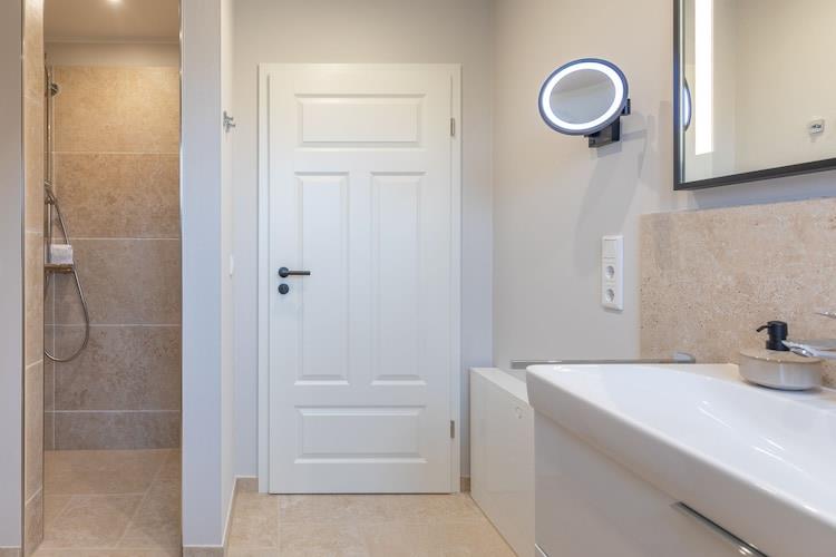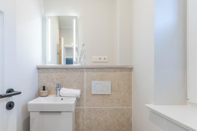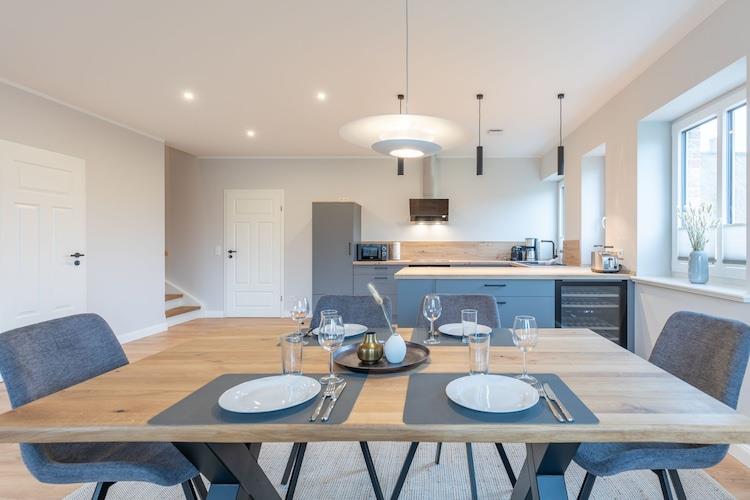 Dette nybyggede feriehus kan rumme op til fem personer. Dobbelthuset er moderne og eksklusivt møbleret og byder på alt hvad du behøver til dit ophold. Den rummelige opholdsstue indbyder til hyggelige tv-timer med en skøn sofagruppe (sovesofa). Det åbne køkken er meget veludstyret: opvaskemaskine, køleskab, fryser, ovn, induktionskomfur, emhætte, vinkøleskab, Nespresso-maskine, filterkaffemaskine (filterstørrelse 4), elkedel og brødrister. Ydermere er din firbenede ven meget velkommen. Haven er omgivet af et lærkehegn af høj kvalitet og en lingushæk. Indkvarteringen tilbyder også opladningsmuligheder (mod betaling) og parkering til dine elcykler og/eller elbiler. Naboejendom: DE-25899-54 Højdepunkter: WiFi (fiberoptisk), sauna, vaskeripakke & slutrengøring Det nye hus (byggeår 2022/23) ligger i et roligt villakvarter i udkanten af Niebüll og kun få minutters gang fra marker og enge. Deezbüll's Biikeplatz, elsket af lokalbefolkningen, ligger i nærheden. Feriehuset byder på et ideelt udgangspunkt for cykelture, fuglekiggeri, ture til øerne Sild, Föhr og Amrum, til Danmark og meget mere. Du finder en bred vifte af shoppingmuligheder i centrum af Niebüll.