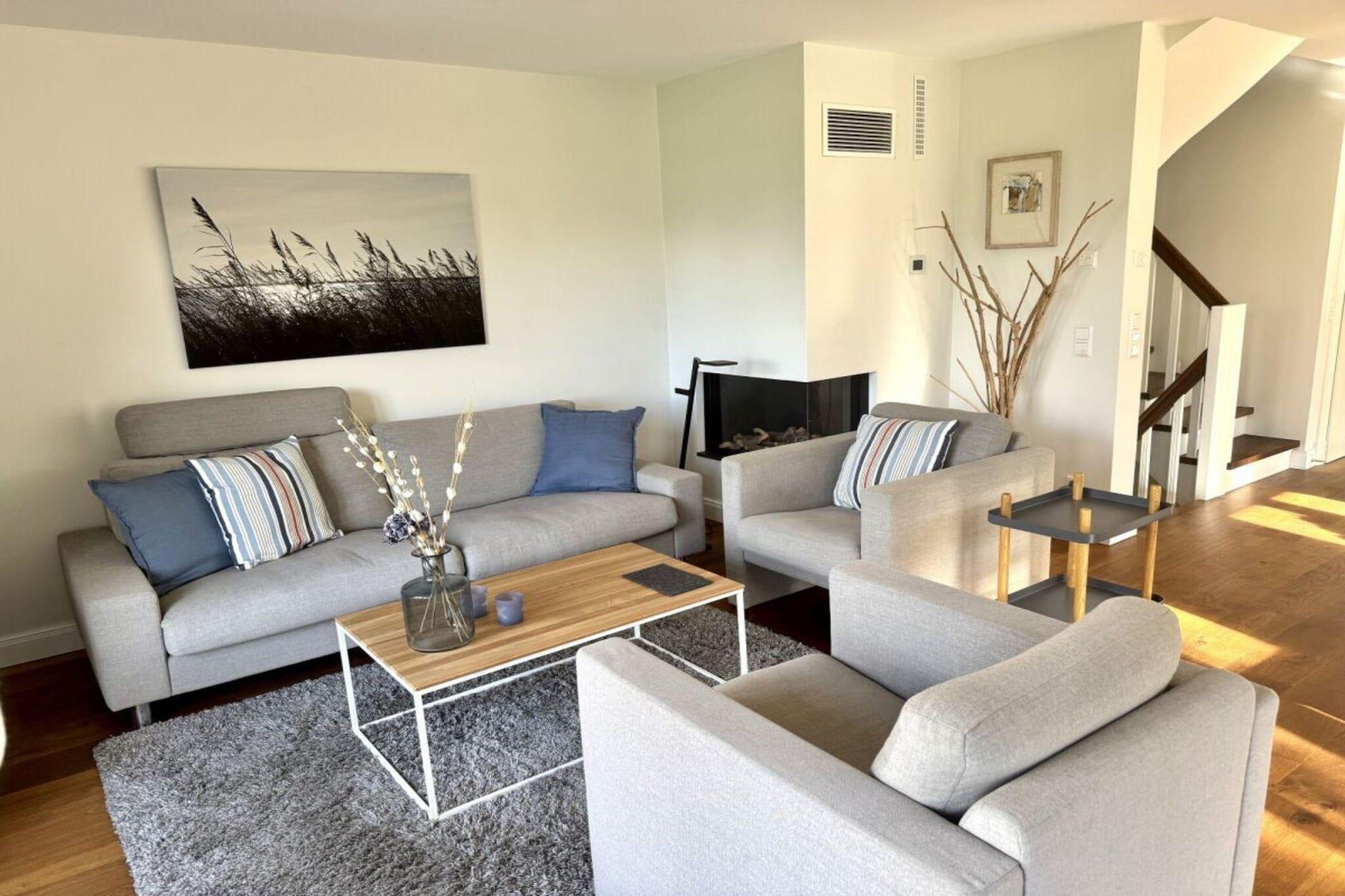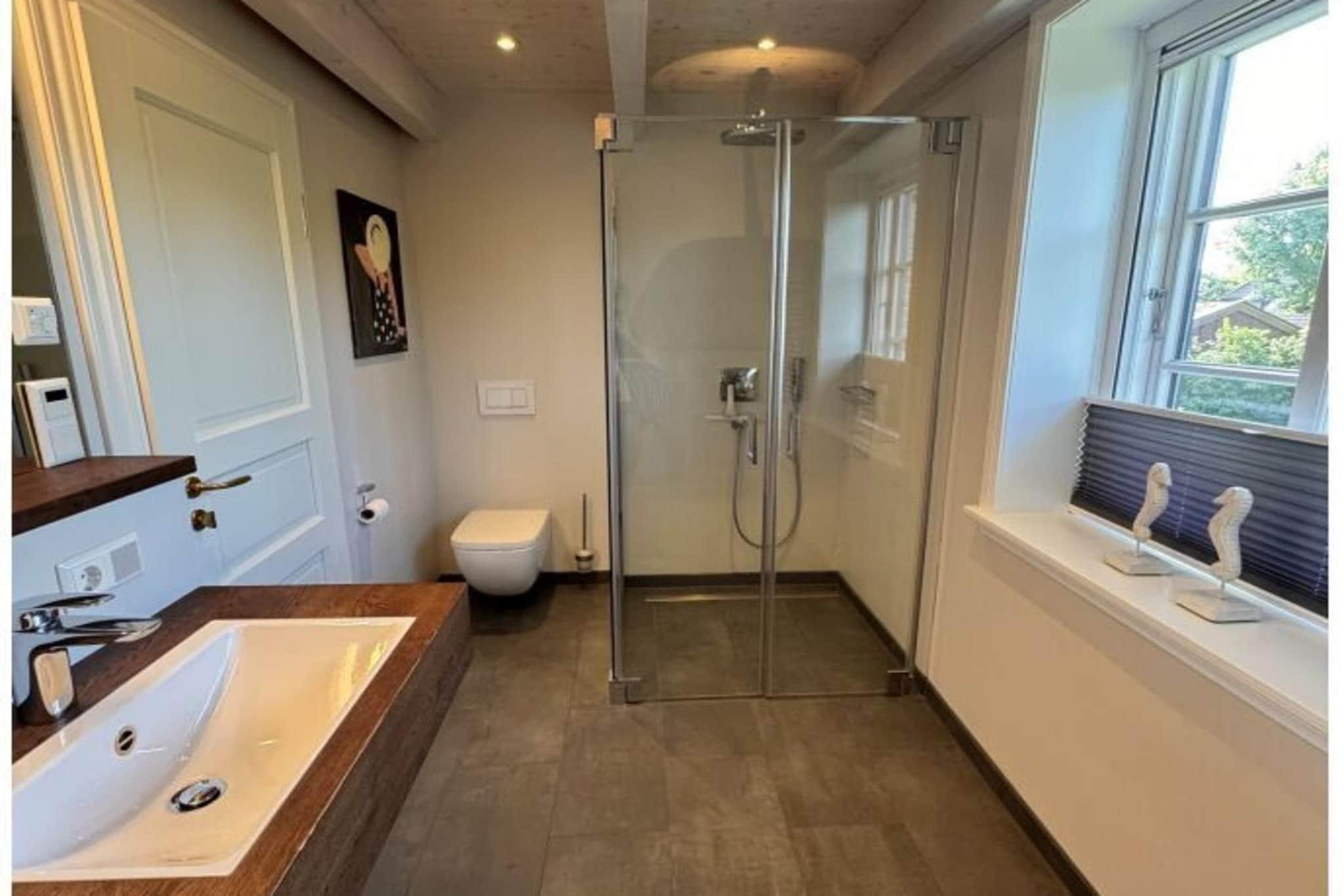 This lovingly and tastefully furnished semi-detached house features a kitchen with a dining area and adjoining living area with satellite TV and free Wi-Fi, as well as a guest toilet and entryway on the ground floor. The bedrooms, each with its own bathroom and toilet, are located on the upper floor. A washing machine and dryer are available in the basement. The apartment can accommodate a maximum of 4 people (non-smoking). Ground Floor: Entrance area with entryway, cloakroom, and guest toilet Open-plan living area with a modern kitchen, dining area, and comfortable living room Kitchen: Equipped with a ceramic hob, extractor hood, oven, and refrigerator with freezer compartment Living area with satellite TV A gas fireplace provides cozy warmth during the colder months Upper Floor: Two bedrooms with double beds (200 x 200 cm and 180 x 200 cm) Each bedroom has its own bathroom with shower and toilet Basement: Washing machine and dryer Microwave
