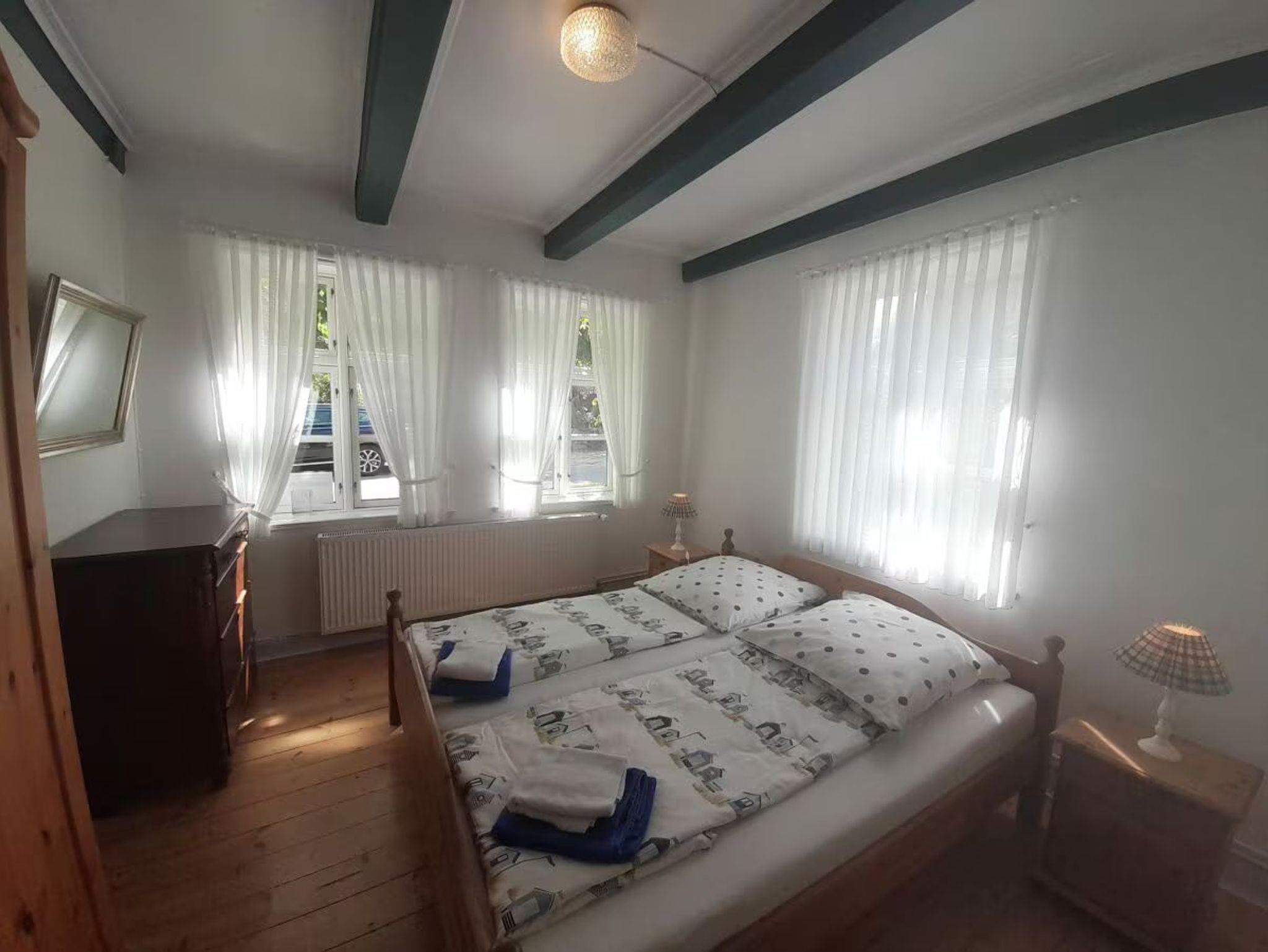 Eine eigene Terrasse im Garten lädt zum Verweilen ein. Eine Sauna zur allgemeinen Nutzung ist ebenfalls vorhanden. Waschmaschine, Trockner (allgemeine Nutzung) können gegen Gebühr genutzt werden. Fahrräder können im Fahrradschuppen untergestellt werden. Ein kostenloser Parkplatz ist 200m entfernt. Die Wohnung ist kinderfreundlich. Ein Hund kann bei Anfrage mitgenommen werden. Bettwäsche und Handtücher sind einmalig inklusive. Kostenloses WLAN ist vorhanden.