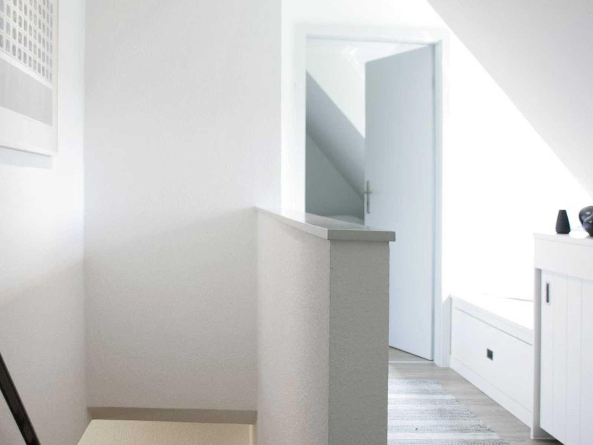 Helle, modern eingerichtete Obergeschoßwohnung in einem Mehrfamilienhaus. Die Unterkunft befindet sich im 1.OG.