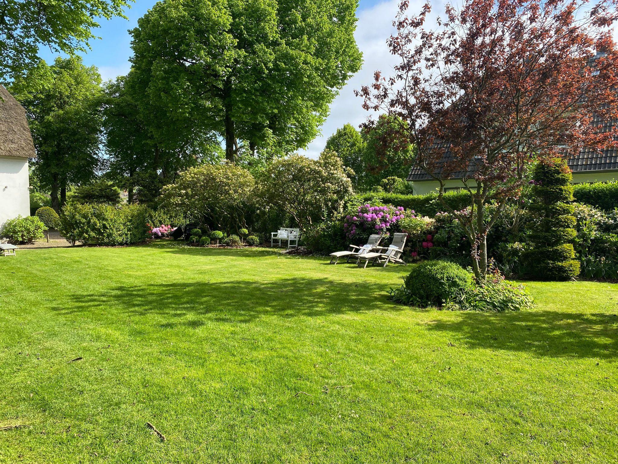 Auf einem großzügigen Grundstück von 2000 Quadratmetern gelegen, bietet Dat Schloss neben dem zeitweise bewohnten Haus der Eigentümer auch einen separaten Garten exklusiv für unsere Gäste. Hier können Sie die Ruhe und Privatsphäre genießen. Hochwertige Gartenmöbel und ausreichend Liegen laden zum Entspannen im schön gestalteten, dicht bewachsenen Garten ein. Die Terrasse und der Essplatz im Freien sind perfekte Orte für gemütliche Mahlzeiten und geselliges Beisammensein. Ein Parkplatz am Haus mit Abstellmöglichkeiten für Fahrräder steht Ihnen ebenfalls zur Verfügung.