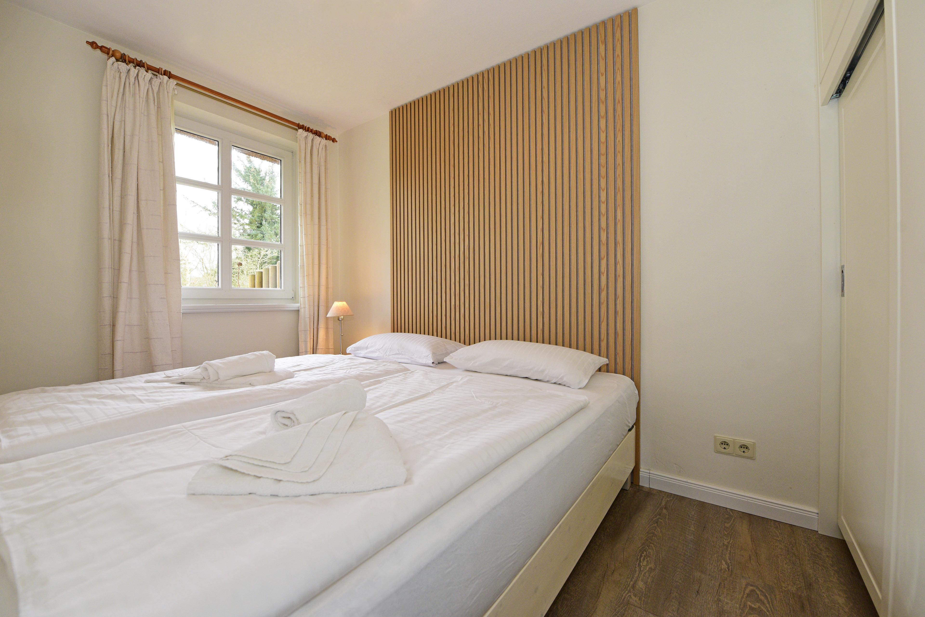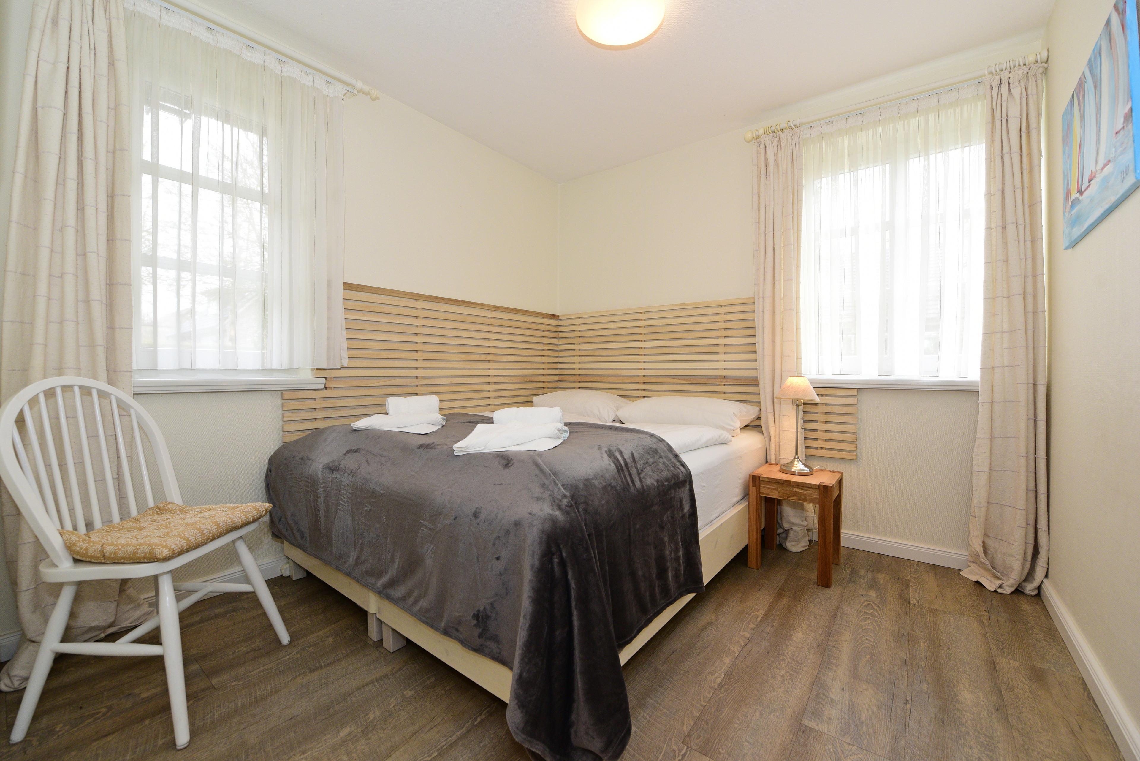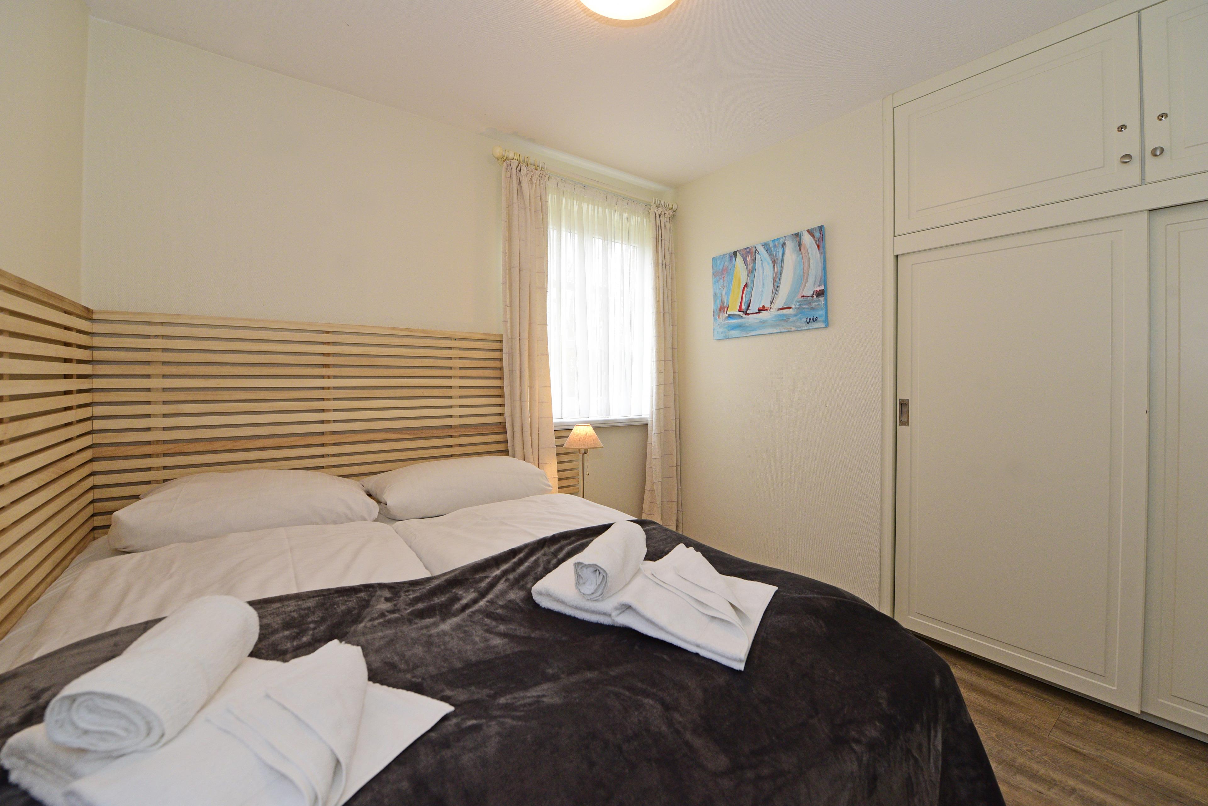 Die Wohnung verfügt über ein seperates Schlafzimmer mit einem gemütlichen Doppelbett, sowie einem optisch vom Wohnbereich abgetrennten Schlafbereich, ebenfalls mit einem Doppelbett und einem Einbauschrank.