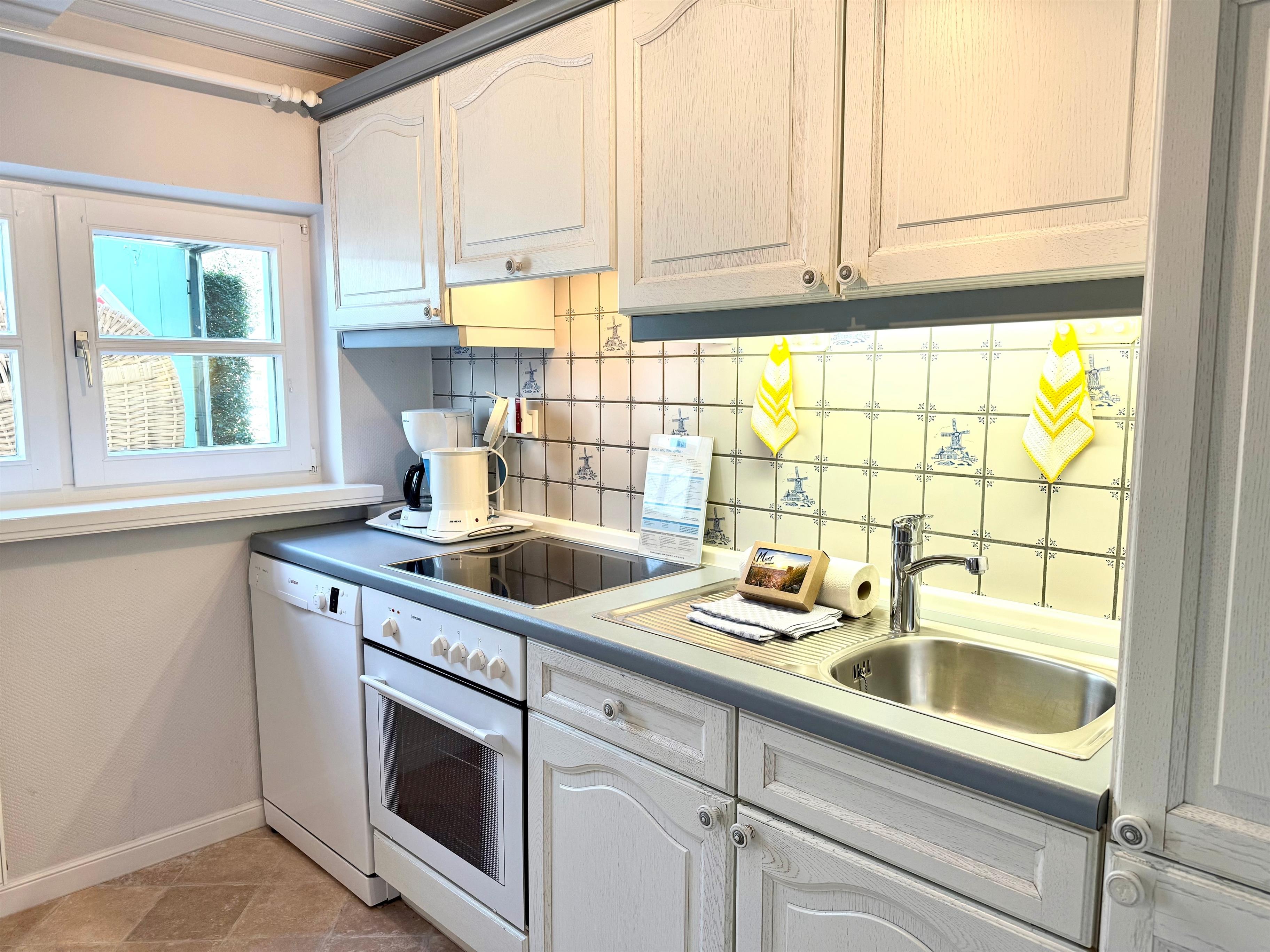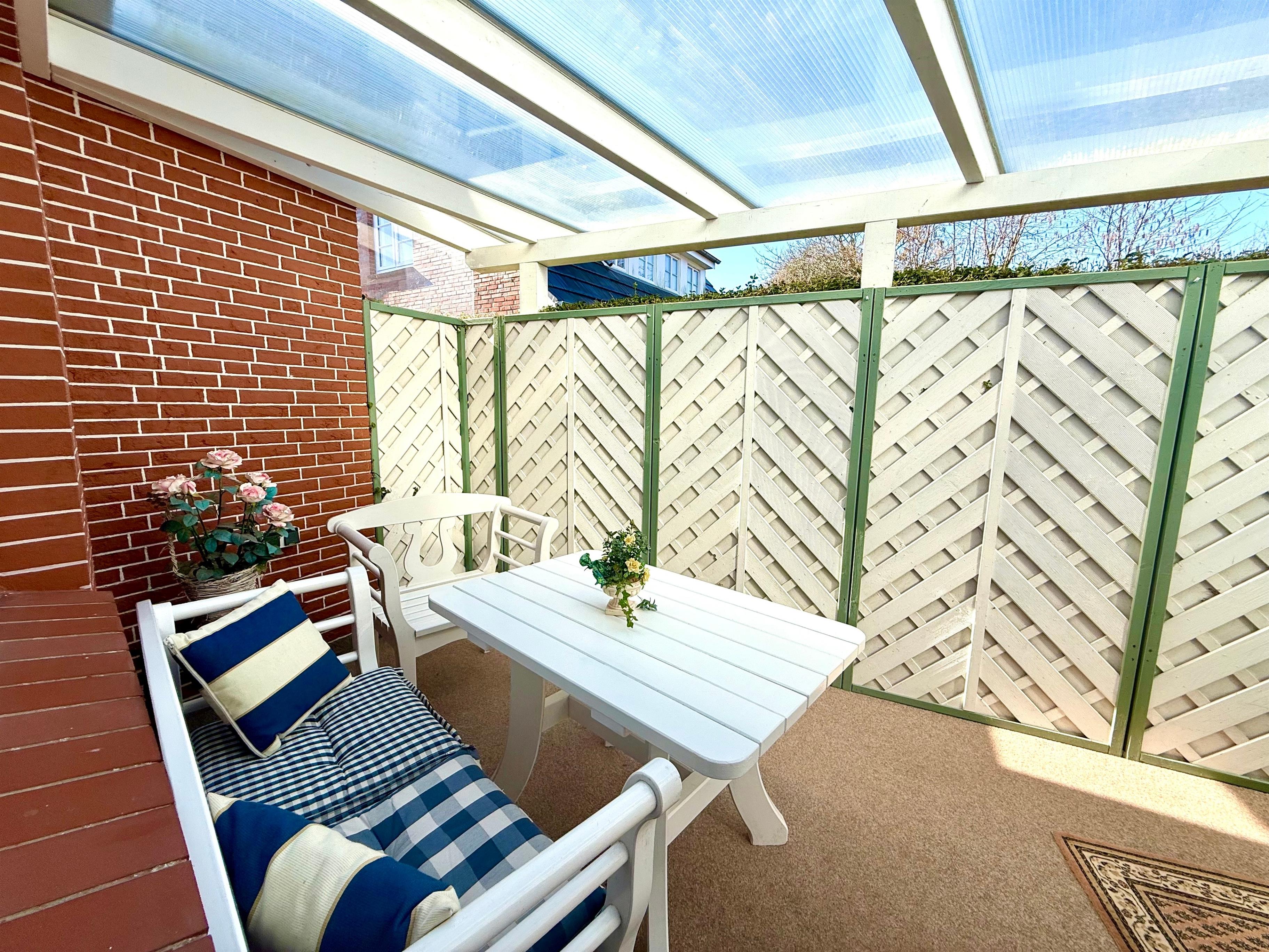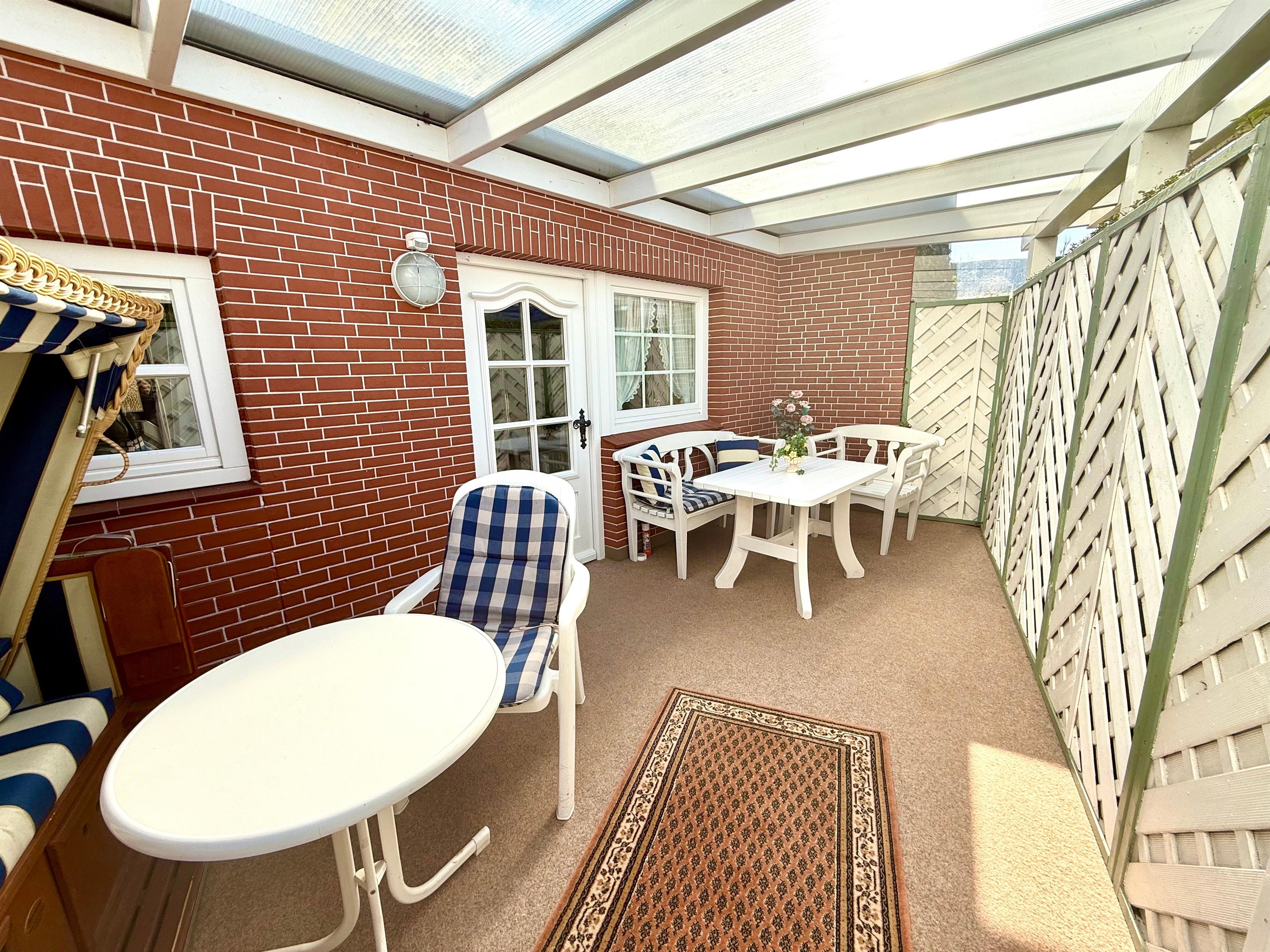 Ihre 2 Zimmer Ferienwohnung befindet sich im Erdgeschoss. Das helle und freundliche Wohnzimmer hat Zugang zu Ihrer eigenen üderdachten Süd-West Sonnenterrasse. Im Wohnzimmer befinden sich ein TV-SAT-Flachbildfernseher, DVD-Player, WLAN sowie Radio. Das Schlafzimmer ist mit einem Doppelbett für hohen Schlafcomfort ausgestattet. Die Küche ist voll ausgestattet und die Essgruppe ist in nordischen Farben gehalten. Von dort geht es durch die Verbindungstür zur überdachten Terrasse mit Strandkorb. Ein modernes Badezimmer ist selbstverständlich ebenfalls in der Wohnung zu finden. Eine Unterstellmöglichkeit für Fahrräder ist vorhanden. Waschmaschine und Trockner stehen Ihnen gegen eine Gebühr zur Verfügung.