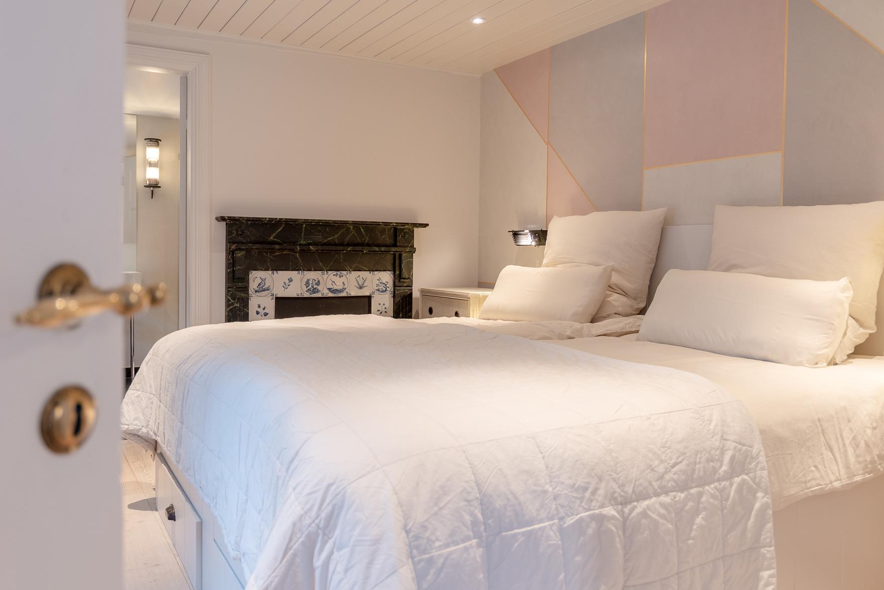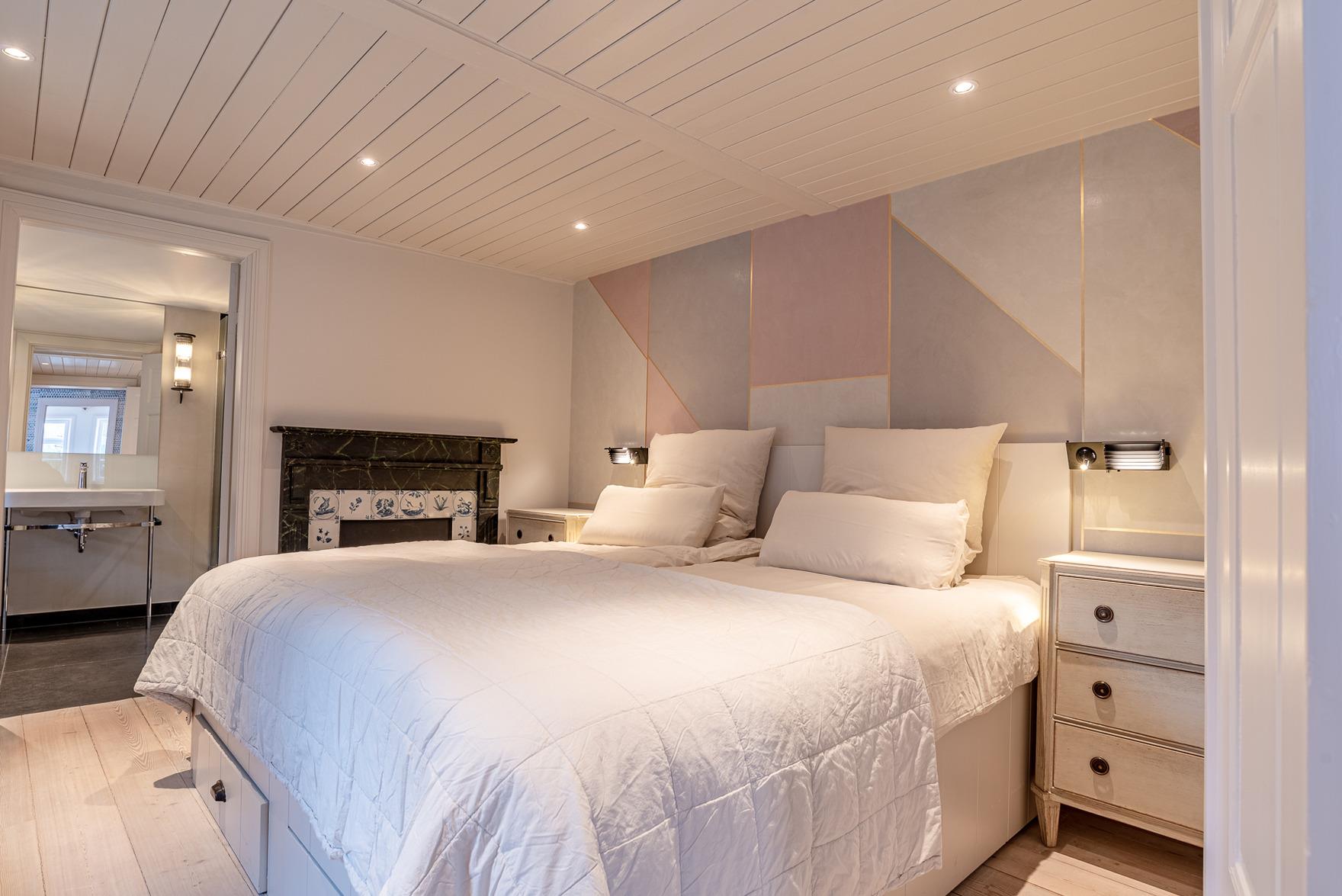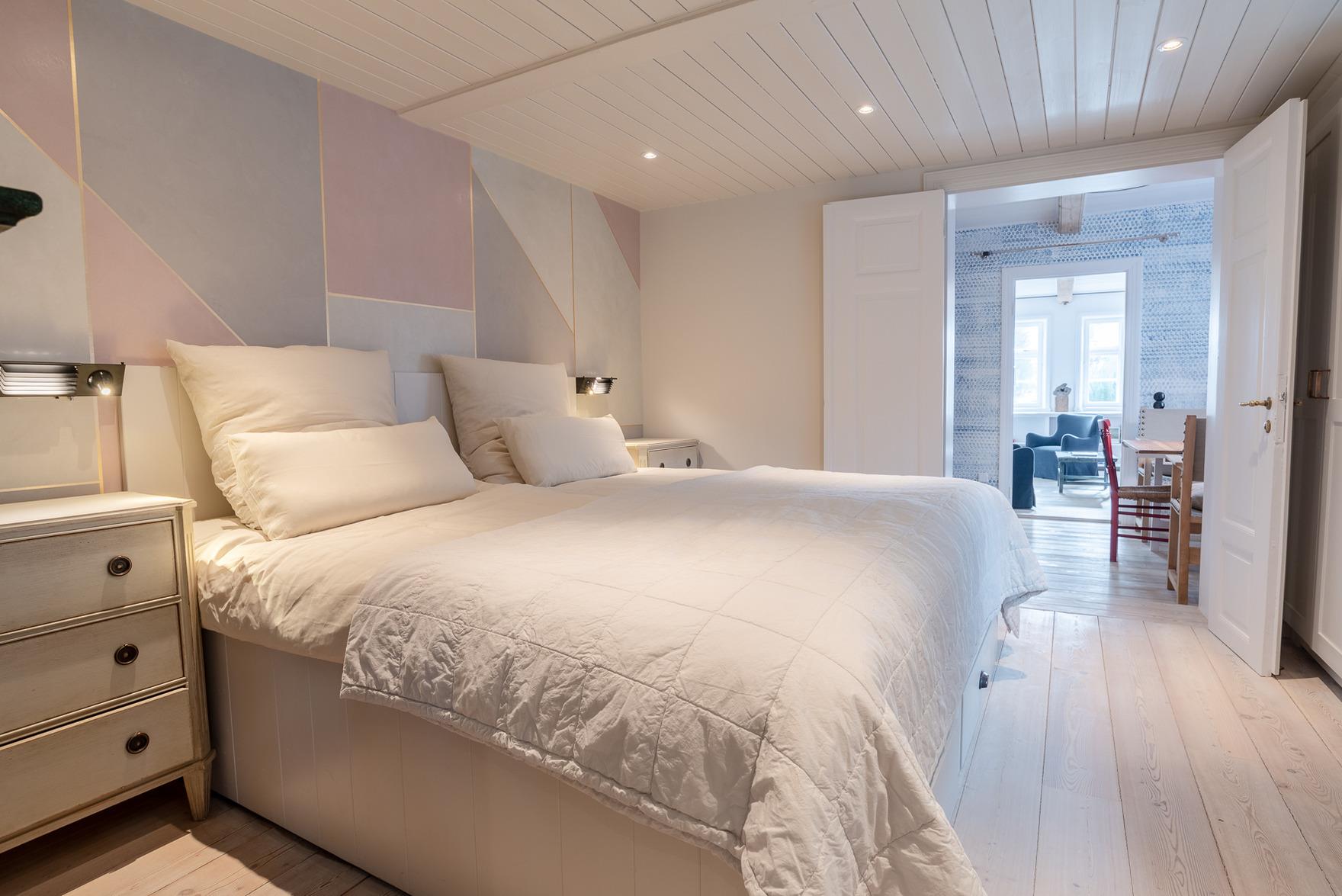 Die kleinere Sönnes Stuuv mit 60qm wird durch den alten Haupteingang des Hauses betreten. Dem großzügigen Eingangsbereich schließt sich das mit bequemen Sitzmöbeln ausgestattete Wohnzimmer an. In der vollausgestatteten Küche bietet sich der Küchentisch zum ausgiebigen Speisen, Zeitung lesen, langen Gesprächen an. Das Schlafzimmer ist mit einem großen äußerst bequemen Bett und viel Stauraum ausgestattet. Daran anschließend befindet sich das geräumige, moderne Bad, von dem aus sich eine Blickachse durch die gesamte Wohnung , durch das Fenster über Hunderte von Metern in die Allee vor dem Haus eröffnet. Hervorzuheben ist auch hier die stilsichere Ausstattung sowie wiederum Gemälde des Nieblumer Malers Fritz Chors (1884 - 1962). Zum Verweilen lädt auch eine Sitzecke vor dem Haus ein.