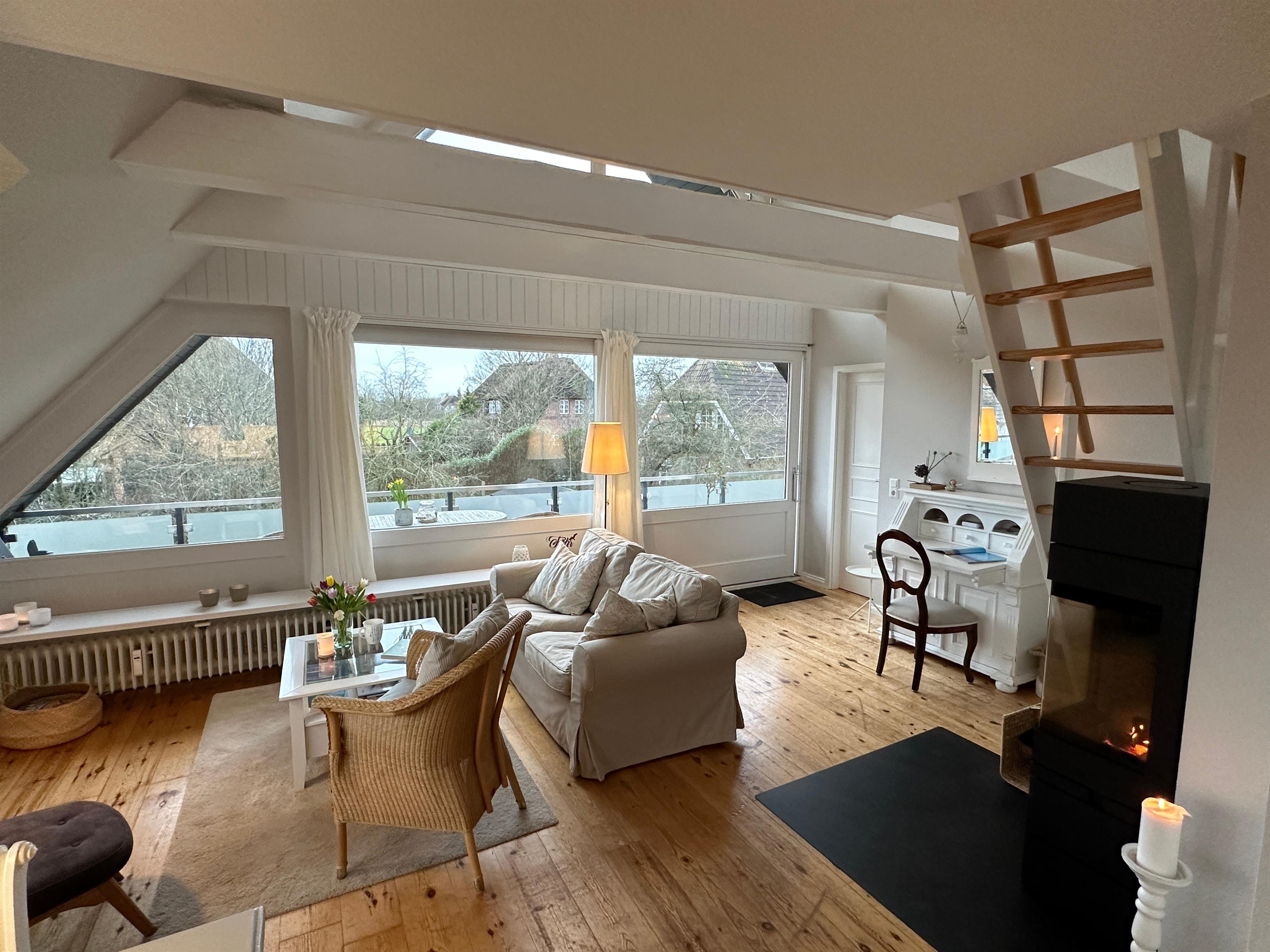Mitten in Nieblum wohnen, nur wenige Schritte vom Dorfteich und 800 m vom Strand, sowie ein herrlicher Blick auf die Friesenhäuser und vom Balkon aus können Sie den oft atemberaubenden Himmel bei Sonnenuntergang erleben. Diese gemütlich eingerichtete und komfortabel ausgestattete Wohnung im Obergeschoss ist genau das Richtige für Sie, um sich zu entspannen und dem Stress des Alltags zu entfliehen. Und wenn es draußen einmal ungemütlich ist, machen Sie einfach den modernen Kaminofen an und genießen das knisternde Kaminfeuer.