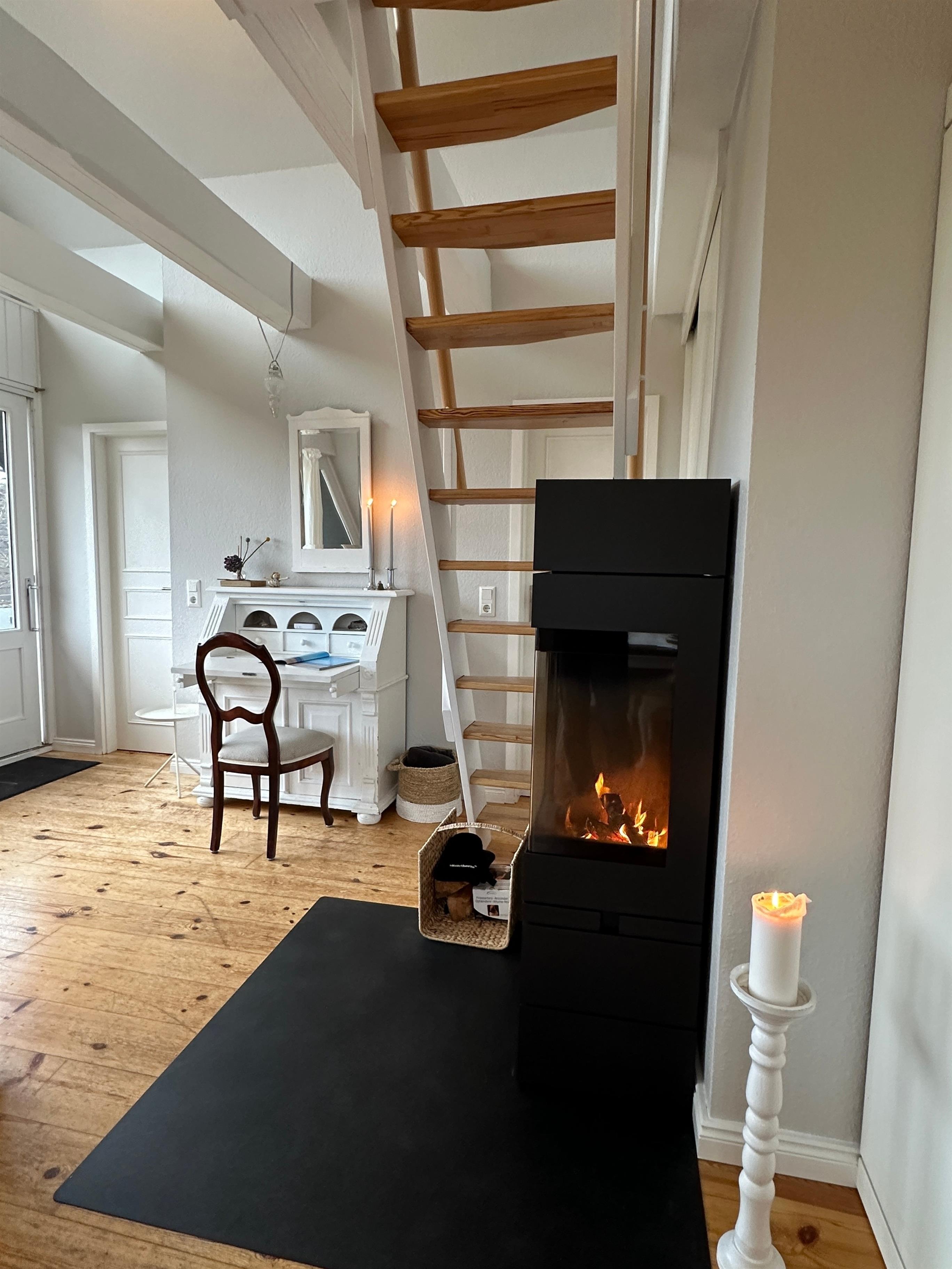 Gemütlichkeit durch Schrägen, die Strandnähe und zur Entspannung den dän. Kaminofen - hier können Sie abschalten und den Urlaub geniessen.