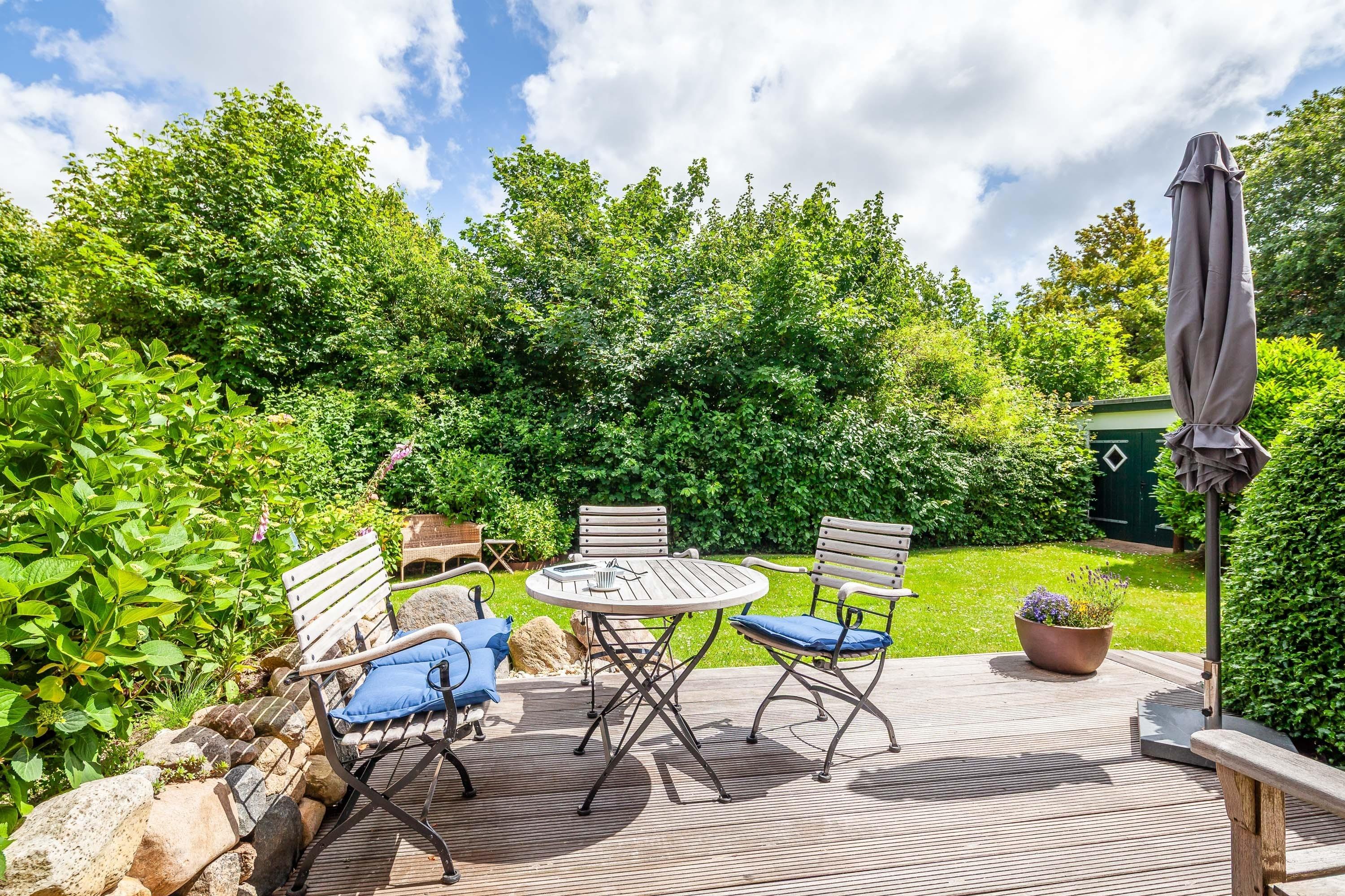 Sauna und Kachelofen verleihen dem Haus auch in der Nebensaison eine besondere Attraktivität. Zwei Bäder, Kochinsel, zwei sichtgeschützte Terrassen zum Wohlfühlen, Rückzugsmöglichkeiten bieten ideale Voraussetzungen für einen erholsamen Urlaub im malerischen Inseldorf Nieblum. Geschäfte, Bäcker, Restaurants, Strand fußläufig erreichbar.