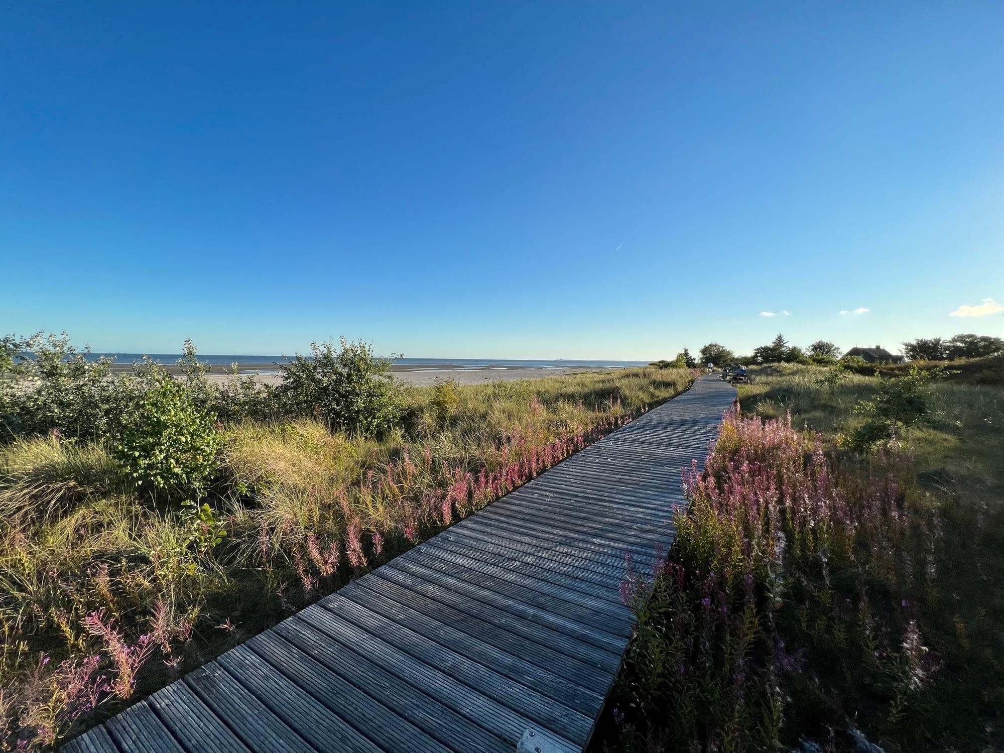 In begehrtester Lage der Insel Föhr, zwischen Nordsee und 27-Loch-Golfplatz, befindet sich die Ferienwohnung „Haus Bredland, Whg. 2“ in einem Reetdachhaus auf einem 5.000-m²-Dünengrundstück in 1.Reihe zur Nordsee. Diese bietet Platz für max. 2 Personen und liegt im Erdgeschoß mit eigener Südterrasse. Bredland ist eine Sackgasse mit ausschließlich reetgedeckten Häusern an der Föhrer Südküste. Umgeben von Dünen und Natur, genießen Sie hier die absolute Idylle. Nur wenige Schritte (ca. 180 Meter) trennen Sie vom Strand, ideal für entspannte Tage am Wasser. Naturfreunde können Rehe, Fasane und Austernfischer beobachten oder auf idyllischen Wegen die Insel erkunden. Der Golfplatz ist ebenfalls fußläufig (ca. 900 m) erreichbar.