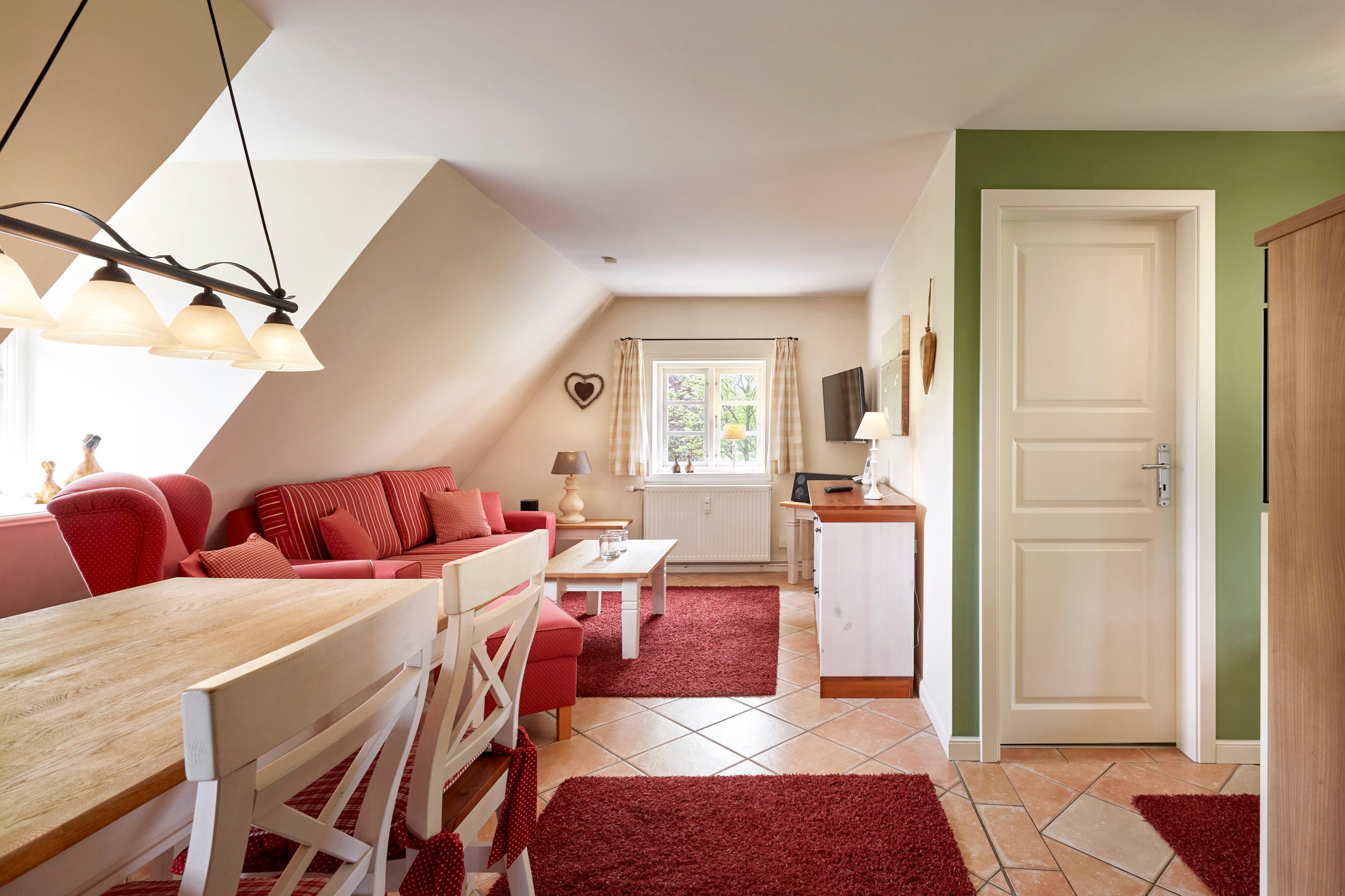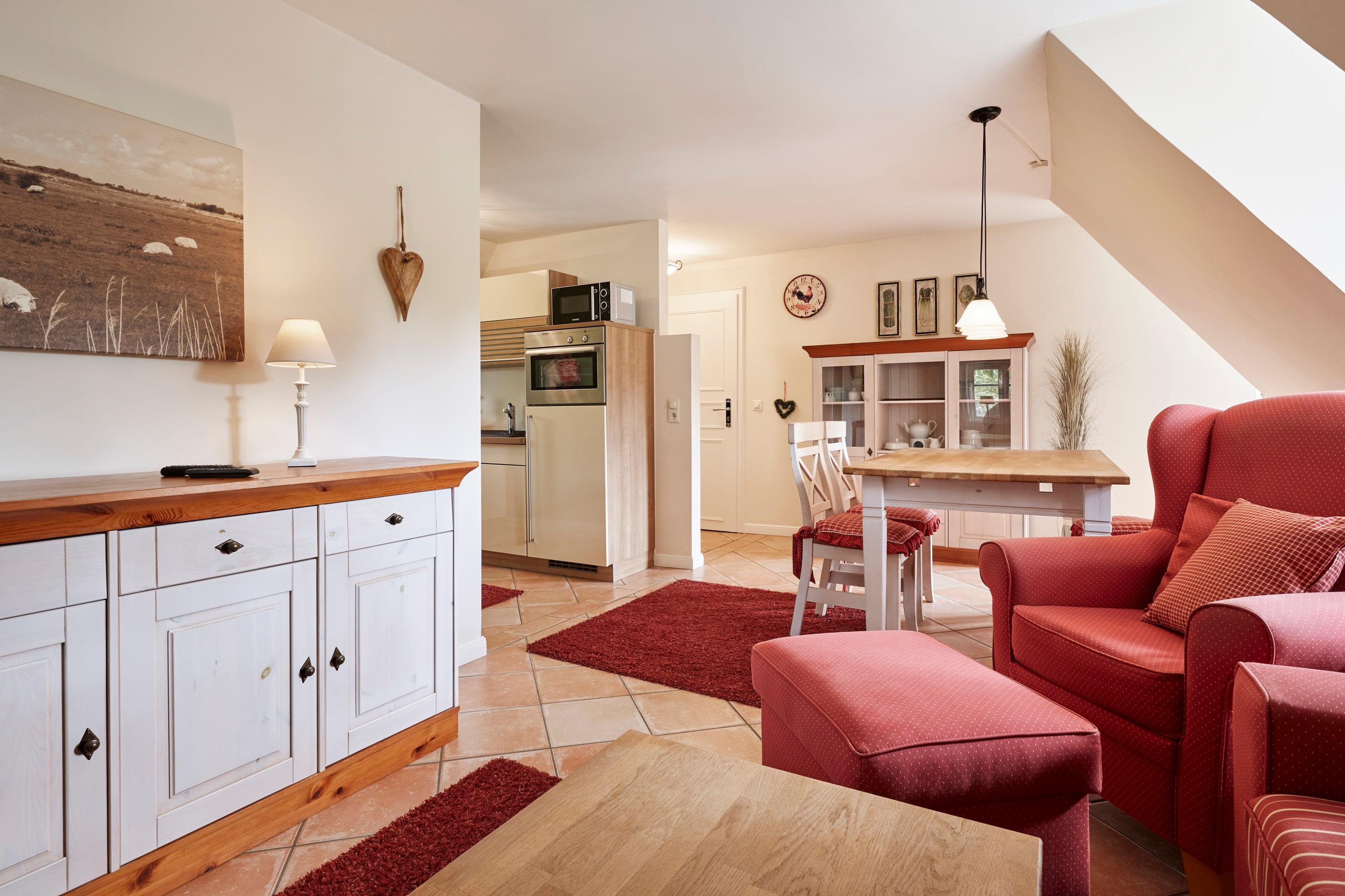Das langgestreckte Witthüs in Nieblum, direkt gegenüber "de Meere", dem Dorfteich in Nieblum. Das schöne Gebäude mit dem Doppelgiebel steht auf einem ca.2000 qm großen Grundstück, welches zur Straße hin mit einem Friesenwall und einem Holztor begrenzt wird. Das Entennest im Obergeschoss bietet Ihnen auf 40 qm alles für einen gemütlichen Urlaub im schönen Dorf Nieblum. Der Wohn-Essbereich mit angeschlossener Küche, ein Duschbad und ein Doppelbettschlafzimmer stehen Ihnen zur Verfügung. Im Garten haben Sie einen Sitzplatz mit Strandkorb, den Sie nutzen können. Aus dem Fenster haben Sie einen schönen Blick auf den Dorfteich. Mit nur wenigen Schritten sind Sie schon in Nieblum und bummeln entlang der schönen Bauerngärten und alten Kapitänshäuser.