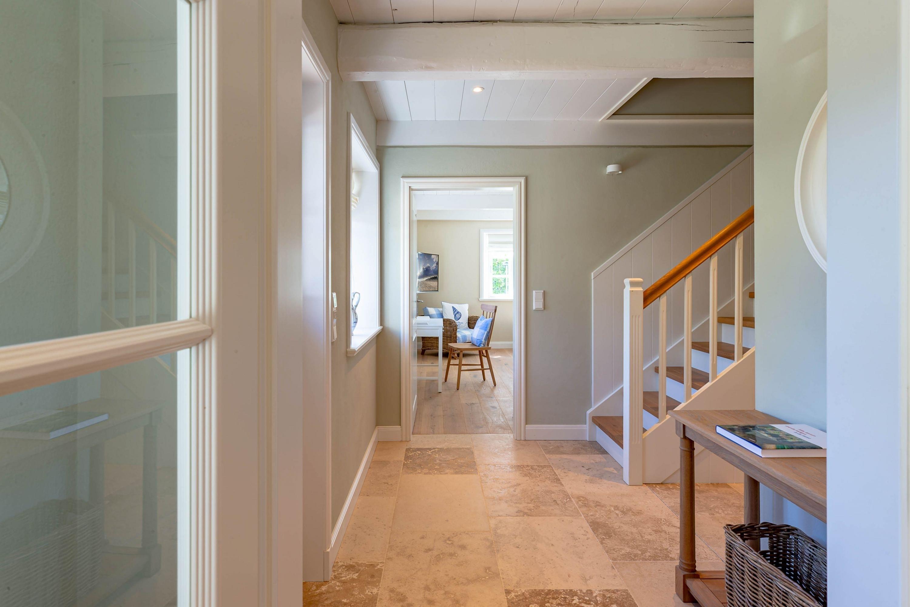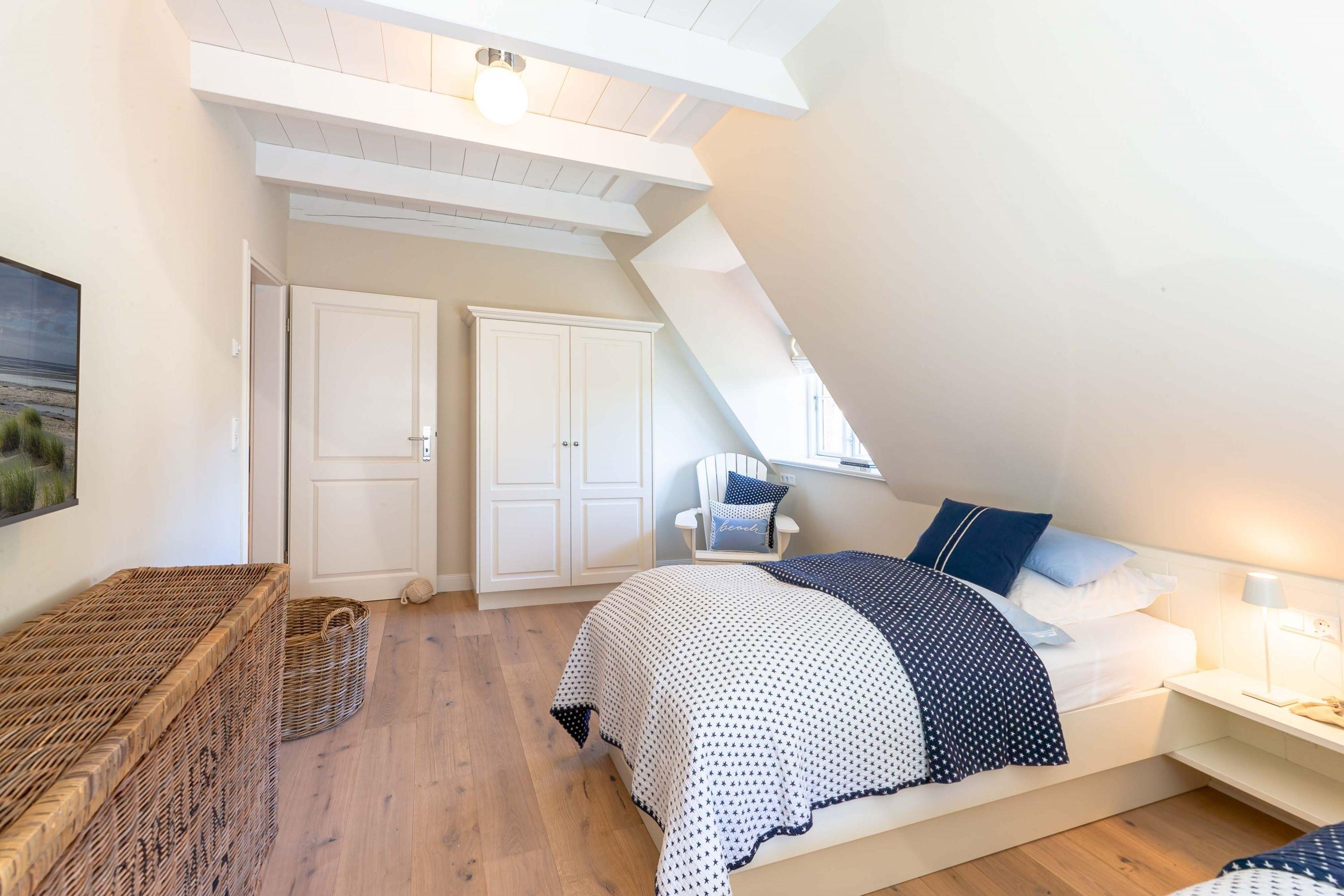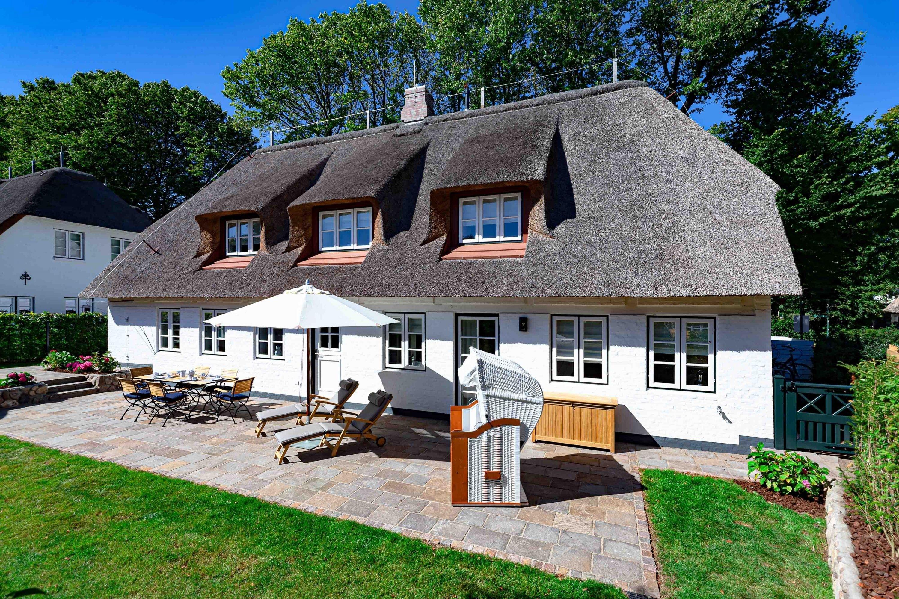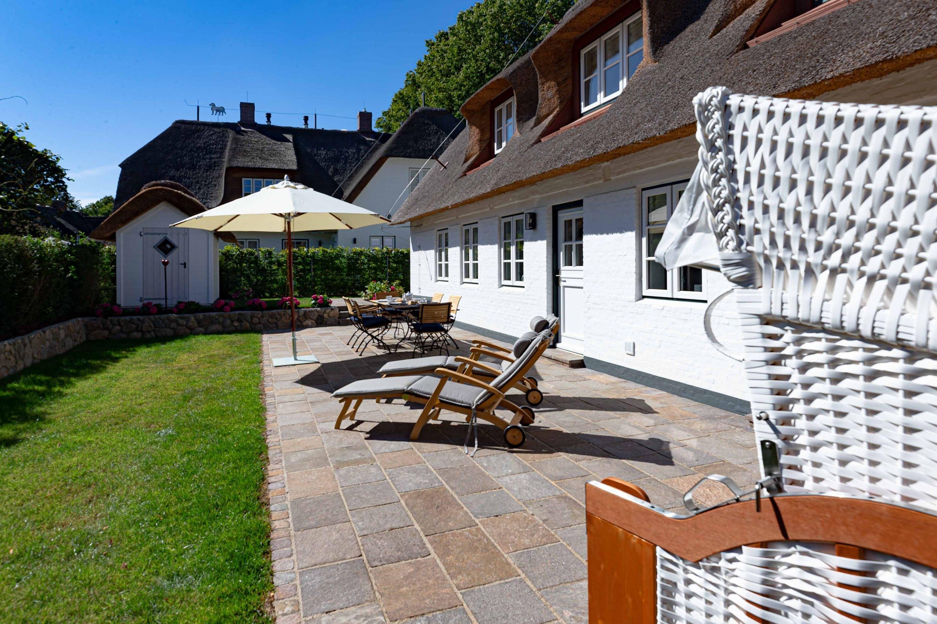 Die „Küstenliebe Nieblum“ befindet sich im Dorfkern von Nieblum, dem wohl schönsten Dorf der Insel. Das denkmalgeschützte, 200qm große Kapitänshaus von 1799 wurde mit viel Sorgfalt und Liebe hochwertig renoviert und stilvoll eingerichtet. Im Haus finden 6 Personen Platz. Ein Schlafzimmer befindet sich im Erdgeschoss, zwei weitere im Obergeschoss. Jedes Schlafzimmer verfügt über ein eigenes Bad. Ein separates Gäste-WC befindet sich zusätzlich im Erdgeschoss. Die offene Küche bietet einen exklusiven Herd und eine hochwertige Küchenausstattung. An der straßenabgewandten Südseite des Hauses liegt der schöne, umschlossene Garten mit Friesenwall. Der historische Kachelofen von 1840, aber auch die Natursteinböden, die großzügige Diele mit separatem Garderobenraum und die offene Balkendecke im oberen Schlafzimmer geben der „Küstenliebe Nieblum“ besonderen Charme. Der idyllische Friesenort Nieblum ist geprägt von Bauerngärten, verwinkelten Gassen und Friesenhäusern und wurde bereits als schönstes Dorf Deutschlands ausgezeichnet. Bäckerei, Fisch- und Feinkostgeschäft, Fahrradverleih, Restaurants und mehr befinden sich in fußläufiger Nähe. Der Strand ist 1200 m entfernt. Wer das Besondere sucht und sieht, ist in der „Küstenliebe Nieblum“ richtig