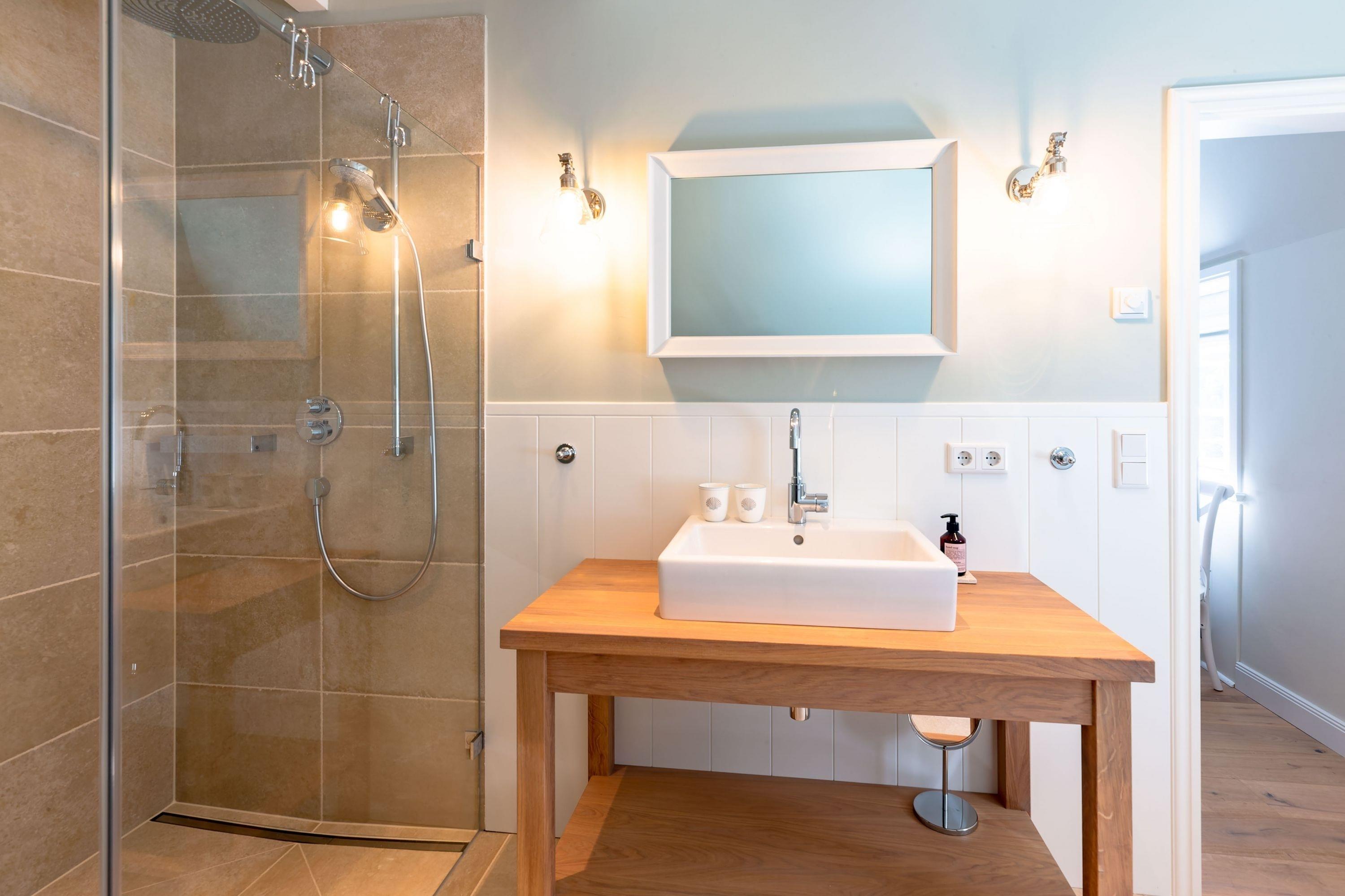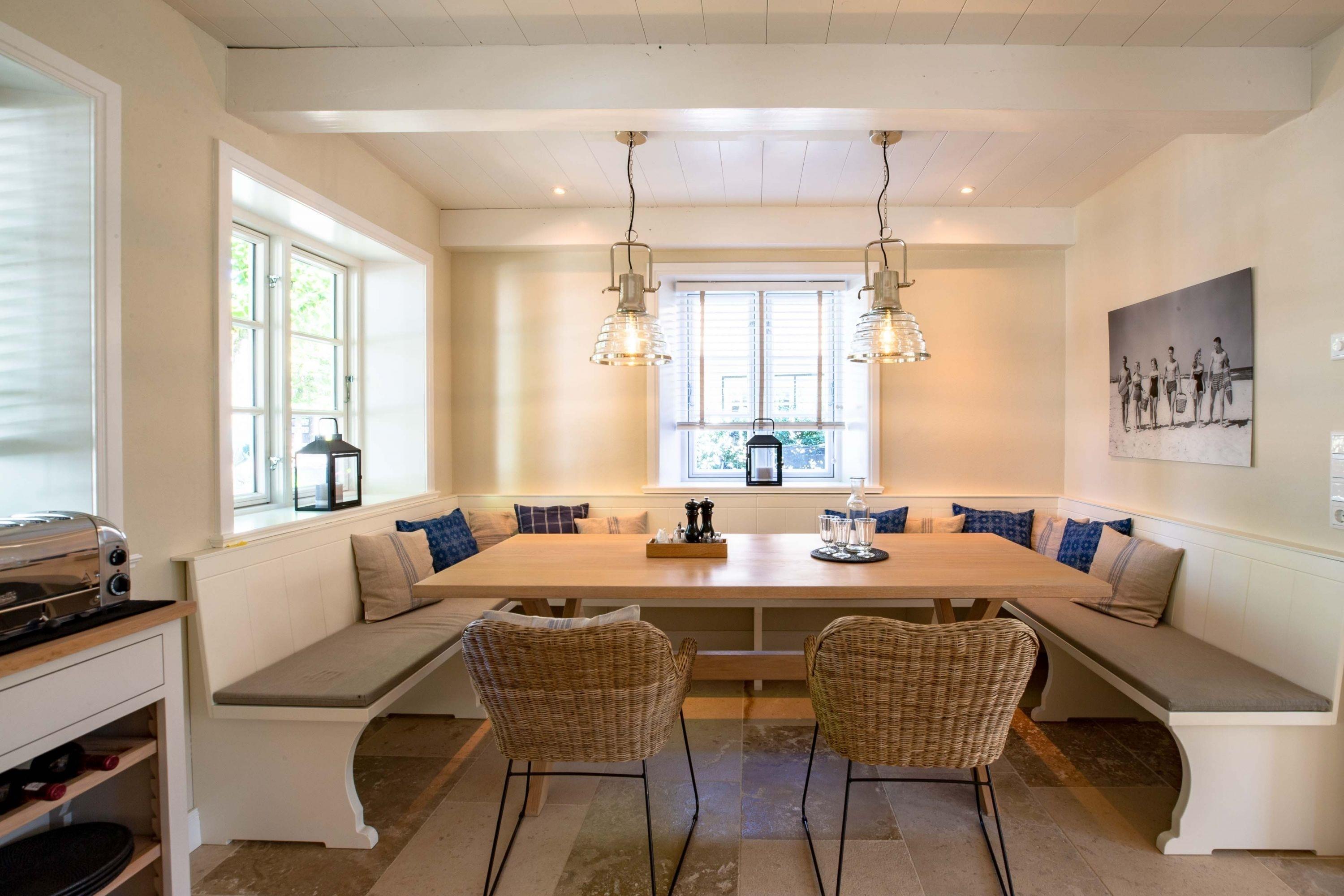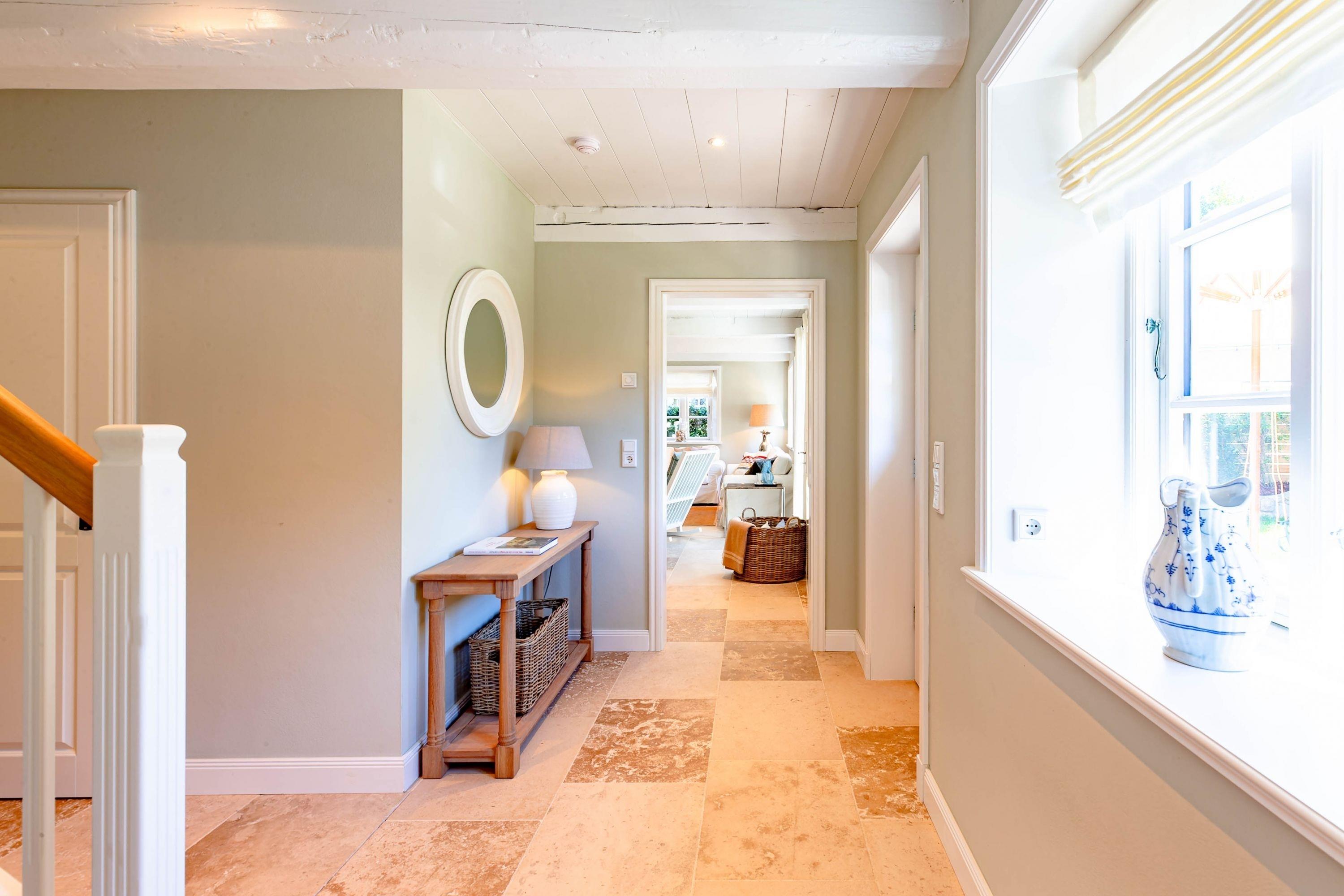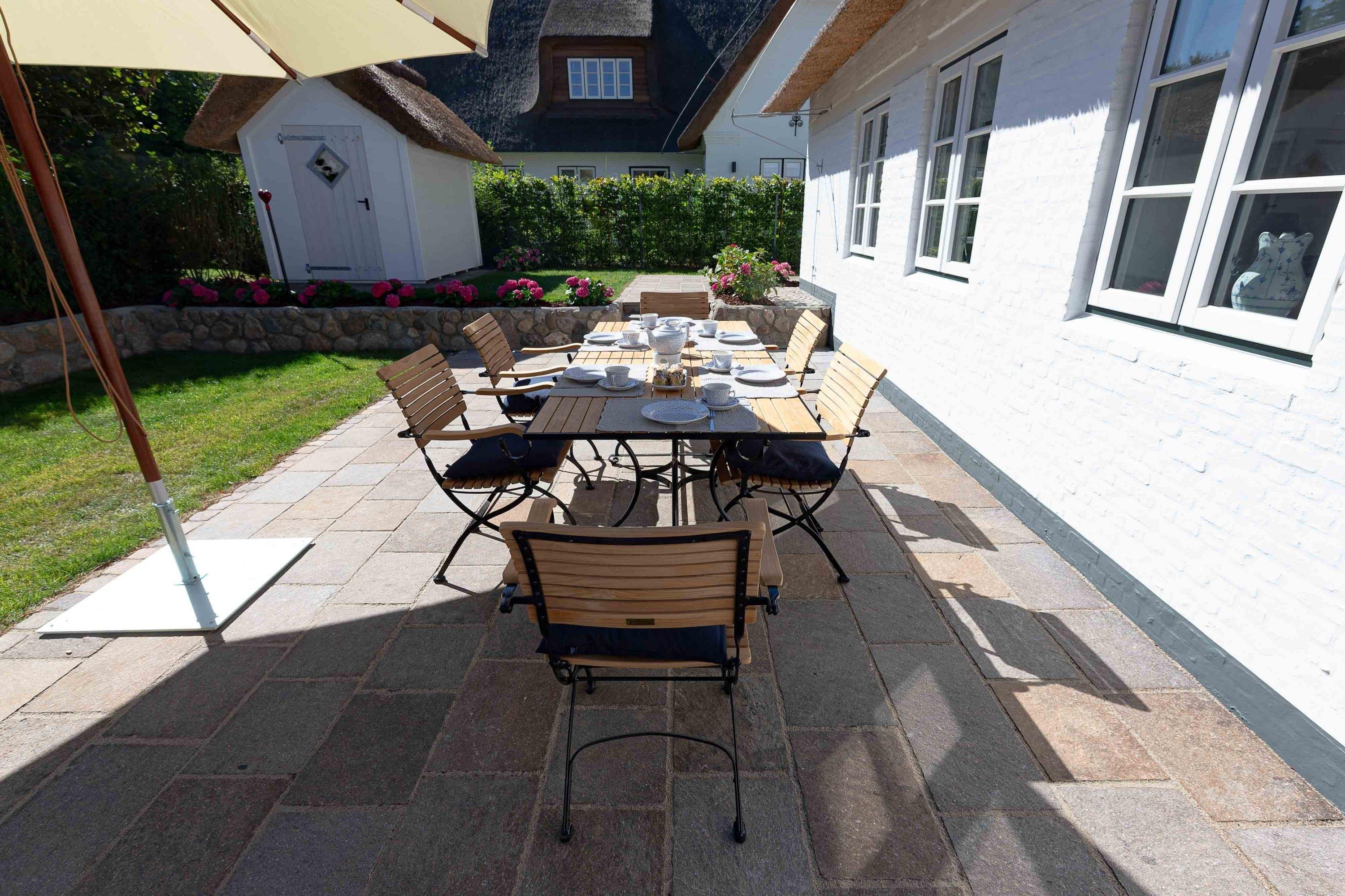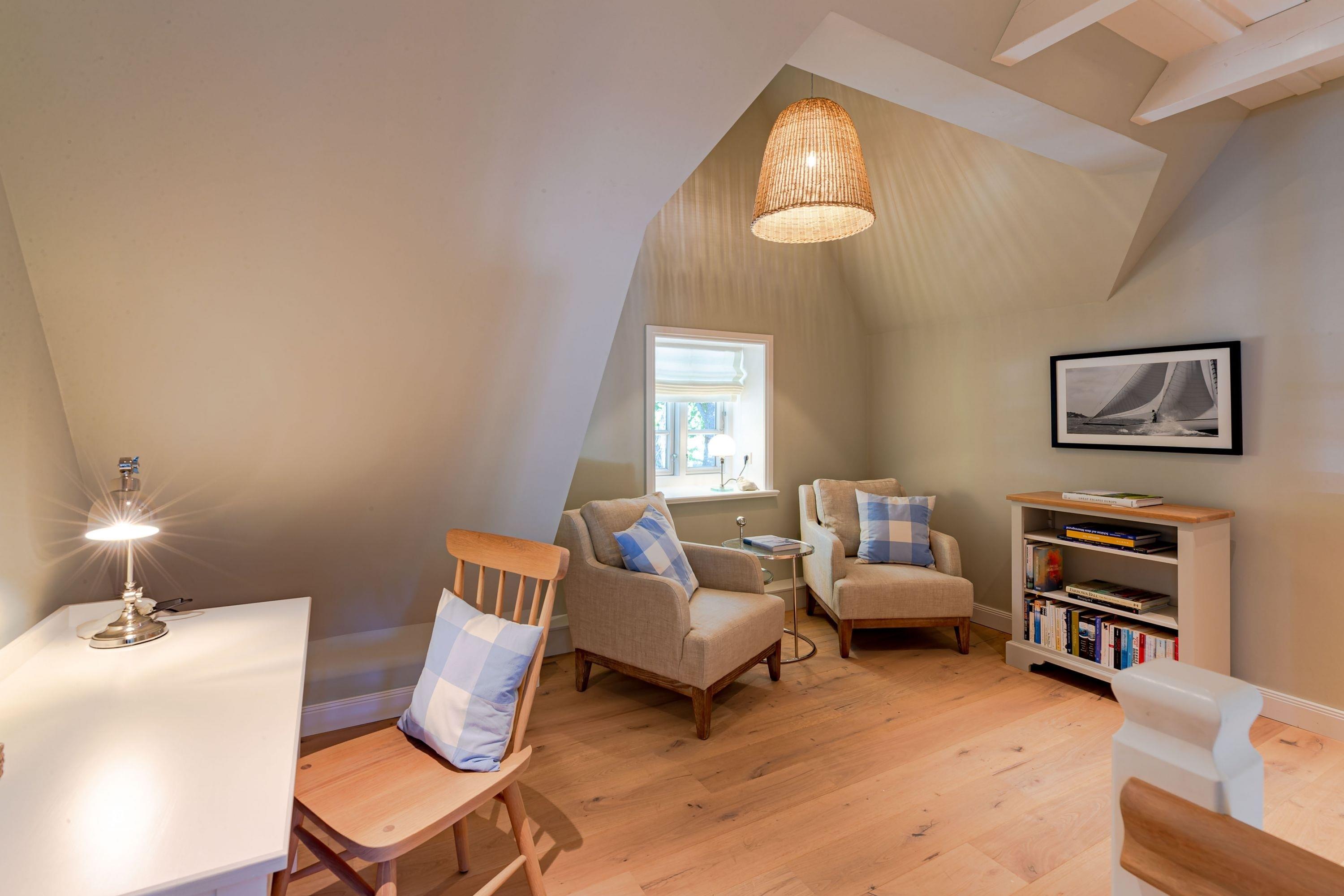 Die „Küstenliebe Nieblum“ befindet sich im Dorfkern von Nieblum, dem wohl schönsten Dorf der Insel. Das denkmalgeschützte, 200qm große Kapitänshaus von 1799 wurde mit viel Sorgfalt und Liebe hochwertig renoviert und stilvoll eingerichtet. Im Haus finden 6 Personen Platz. Ein Schlafzimmer befindet sich im Erdgeschoss, zwei weitere im Obergeschoss. Jedes Schlafzimmer verfügt über ein eigenes Bad. Ein separates Gäste-WC befindet sich zusätzlich im Erdgeschoss. Die offene Küche bietet einen exklusiven Herd und eine hochwertige Küchenausstattung. An der straßenabgewandten Südseite des Hauses liegt der schöne, umschlossene Garten mit Friesenwall. Der historische Kachelofen von 1840, aber auch die Natursteinböden, die großzügige Diele mit separatem Garderobenraum und die offene Balkendecke im oberen Schlafzimmer geben der „Küstenliebe Nieblum“ besonderen Charme. Der idyllische Friesenort Nieblum ist geprägt von Bauerngärten, verwinkelten Gassen und Friesenhäusern und wurde bereits als schönstes Dorf Deutschlands ausgezeichnet. Bäckerei, Fisch- und Feinkostgeschäft, Fahrradverleih, Restaurants und mehr befinden sich in fußläufiger Nähe. Der Strand ist 1200 m entfernt. Wer das Besondere sucht und sieht, ist in der „Küstenliebe Nieblum“ richtig