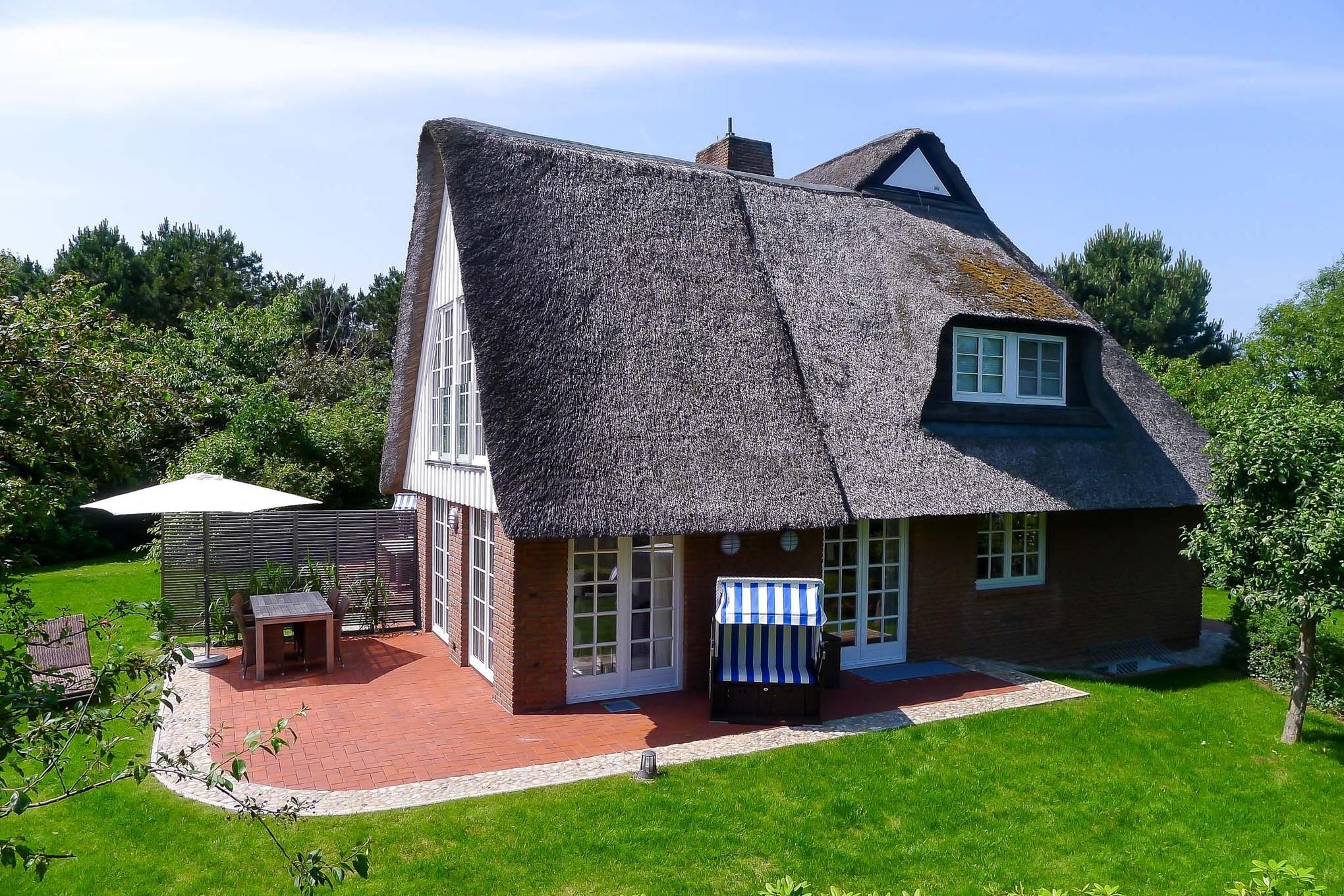 Unser Landhaus Bredland teilt sich in zwei separate Haushälften - Ost und West. Das eingewachsene Grundstück und die ruhige Lage machen Ihren Urlaub zum Wellnessprogramm. Helle Wohnräume, moderne Bäder, ausgewählte, warme Farben und große Fensterflächen kennzeichnen den Stil des Hauses. Genießen Sie die kühlen Abende am Kachelofen oder entspannen Sie in der großen Sauna mit angrenzendem Relaxbereich und sichtgeschützter Bangkirai-Terrasse. Für die Sommermonate lädt der Garten zum Erholen ein. Mit einem kurzen Spaziergang gelangen Sie zum Strand - die Nordsee liegt fast der Tür. Auch der Golfplatz ist in kurzer Zeit zu erreichen. Seien Sie unser Gast und verbringen unvergessliche Urlaubstage im Landhaus Bredland!