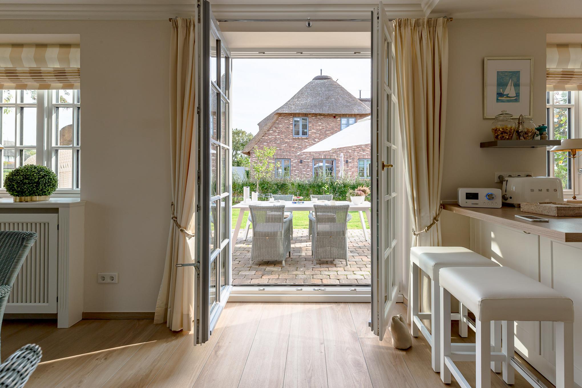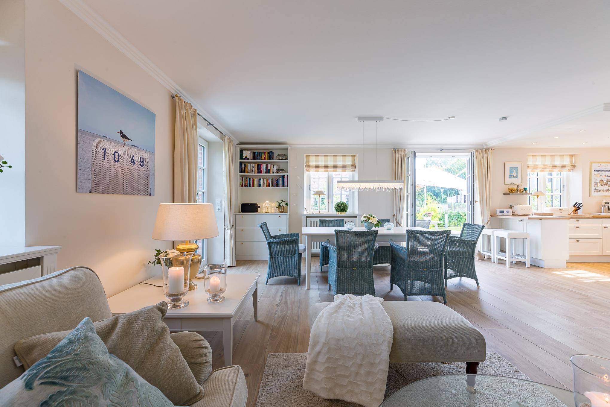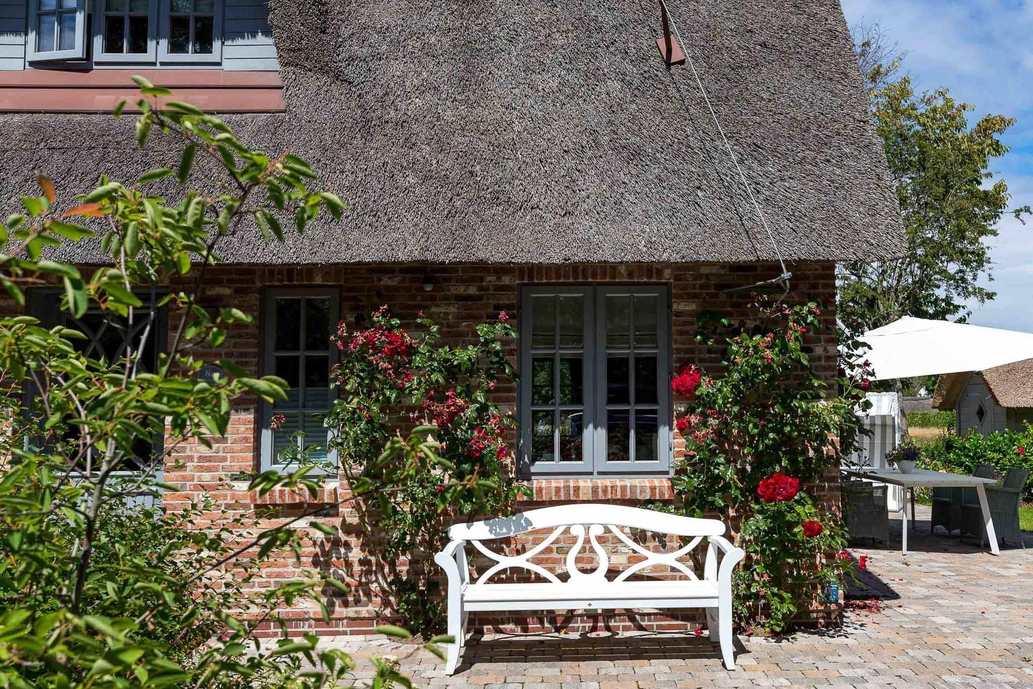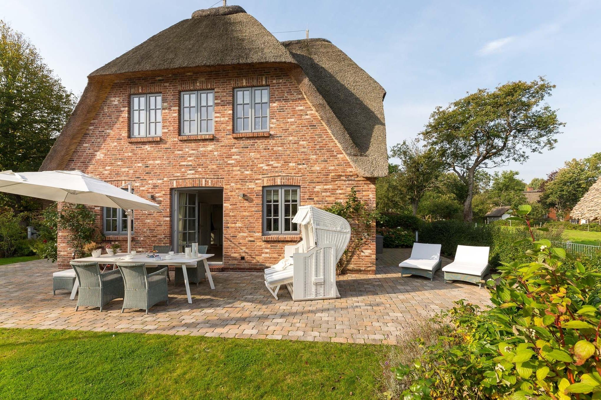 Dieses Friesenhaus lädt mit seiner schönen Architektur, Sprossenfenstern, Reetdach und seiner umlaufenden Terrasse, die ganztägig Sonnenplätze bietet, zum Entspannen und Erholen ein. Schöne Fliesen, hochwertige Holzeinbauten, eine helle, gemütliche Einrichtung, TV und Sonos Soundanlage in allen Wohn- und Schlafräumen, sowie ein großes Bad mit Tageslichtsauna runden den Eindruck ab. Das Doppelhaus liegt zentral im Ortskern von Nieblum, dem wohl schönsten Dorf auf Föhr, mit seinen Kapitänshäusern, Linden- und Ulmenalleen, Geschäften, Cafes und Restaurants. In wenigen Minuten sind Sie mit dem Fahrrad am Nieblumer Strand.