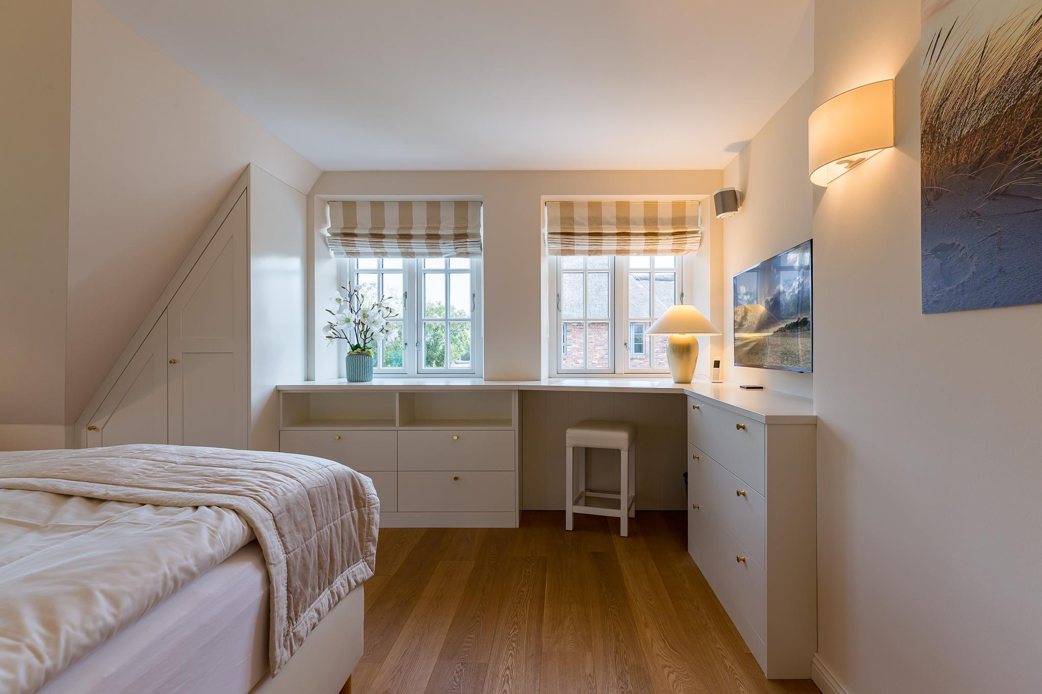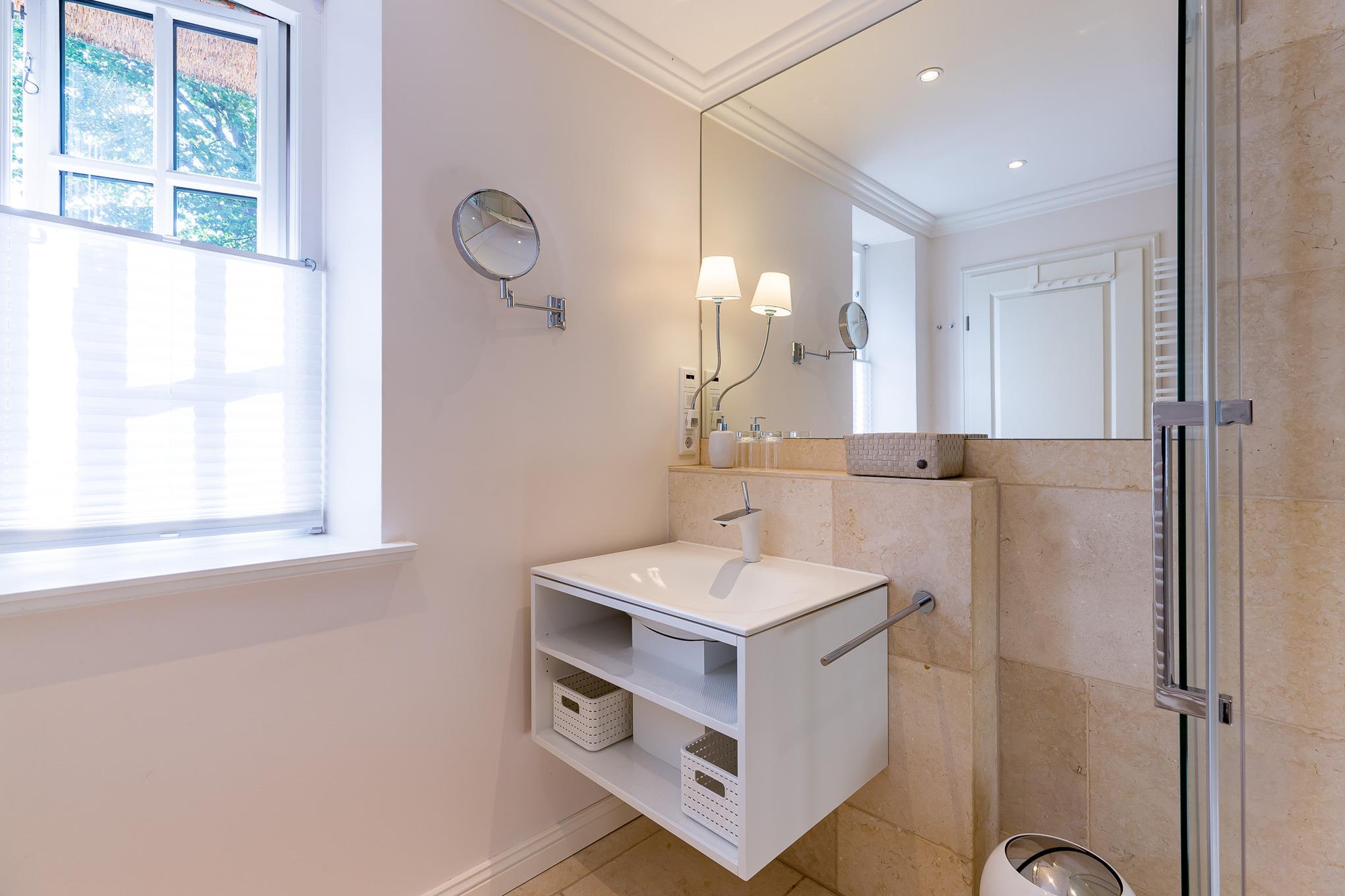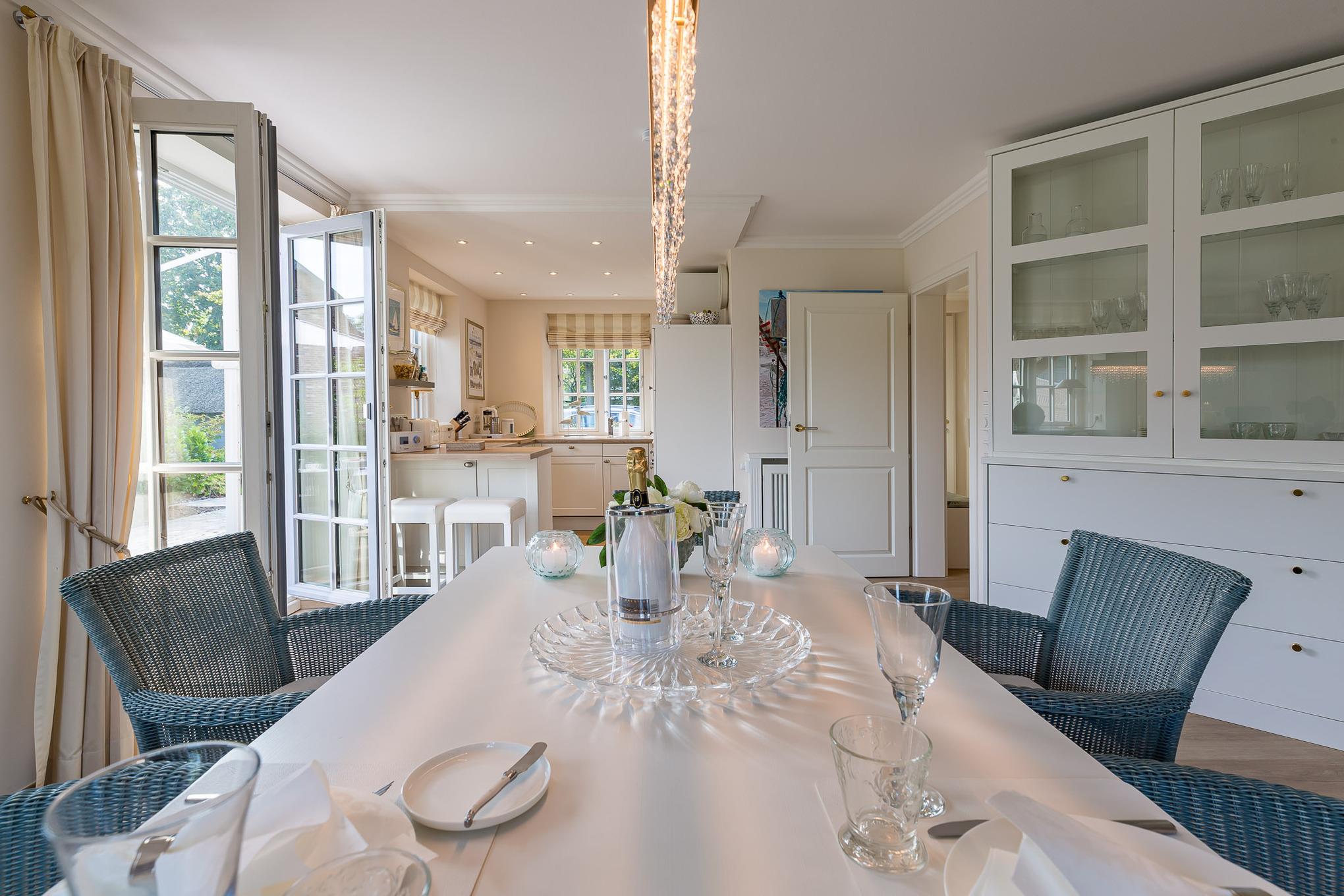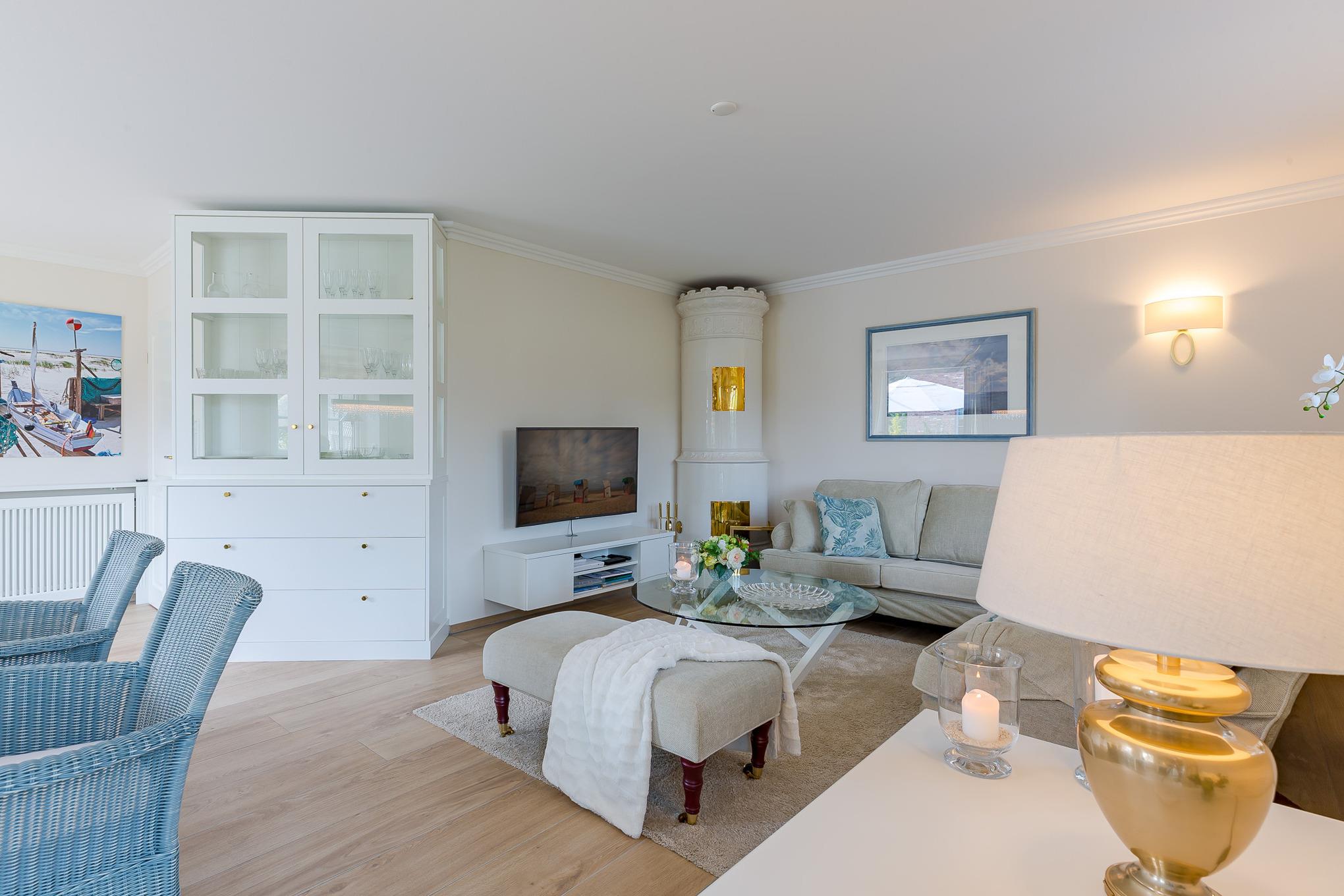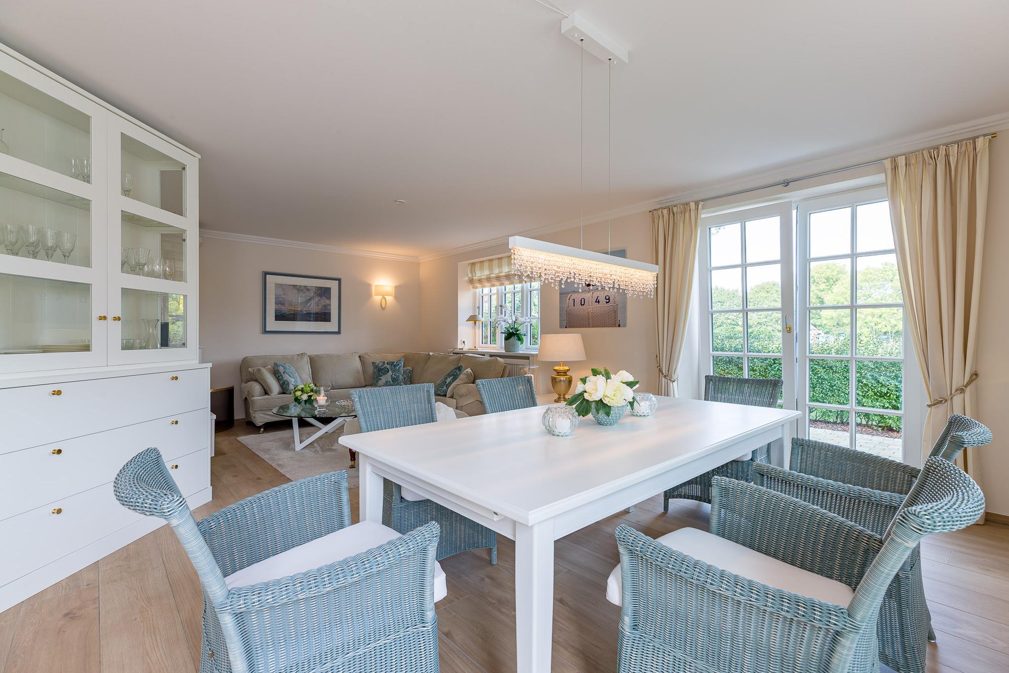 Dieses Friesenhaus lädt mit seiner schönen Architektur, Sprossenfenstern, Reetdach und seiner umlaufenden Terrasse, die ganztägig Sonnenplätze bietet, zum Entspannen und Erholen ein. Schöne Fliesen, hochwertige Holzeinbauten, eine helle, gemütliche Einrichtung, TV und Sonos Soundanlage in allen Wohn- und Schlafräumen, sowie ein großes Bad mit Tageslichtsauna runden den Eindruck ab. Das Doppelhaus liegt zentral im Ortskern von Nieblum, dem wohl schönsten Dorf auf Föhr, mit seinen Kapitänshäusern, Linden- und Ulmenalleen, Geschäften, Cafes und Restaurants. In wenigen Minuten sind Sie mit dem Fahrrad am Nieblumer Strand.