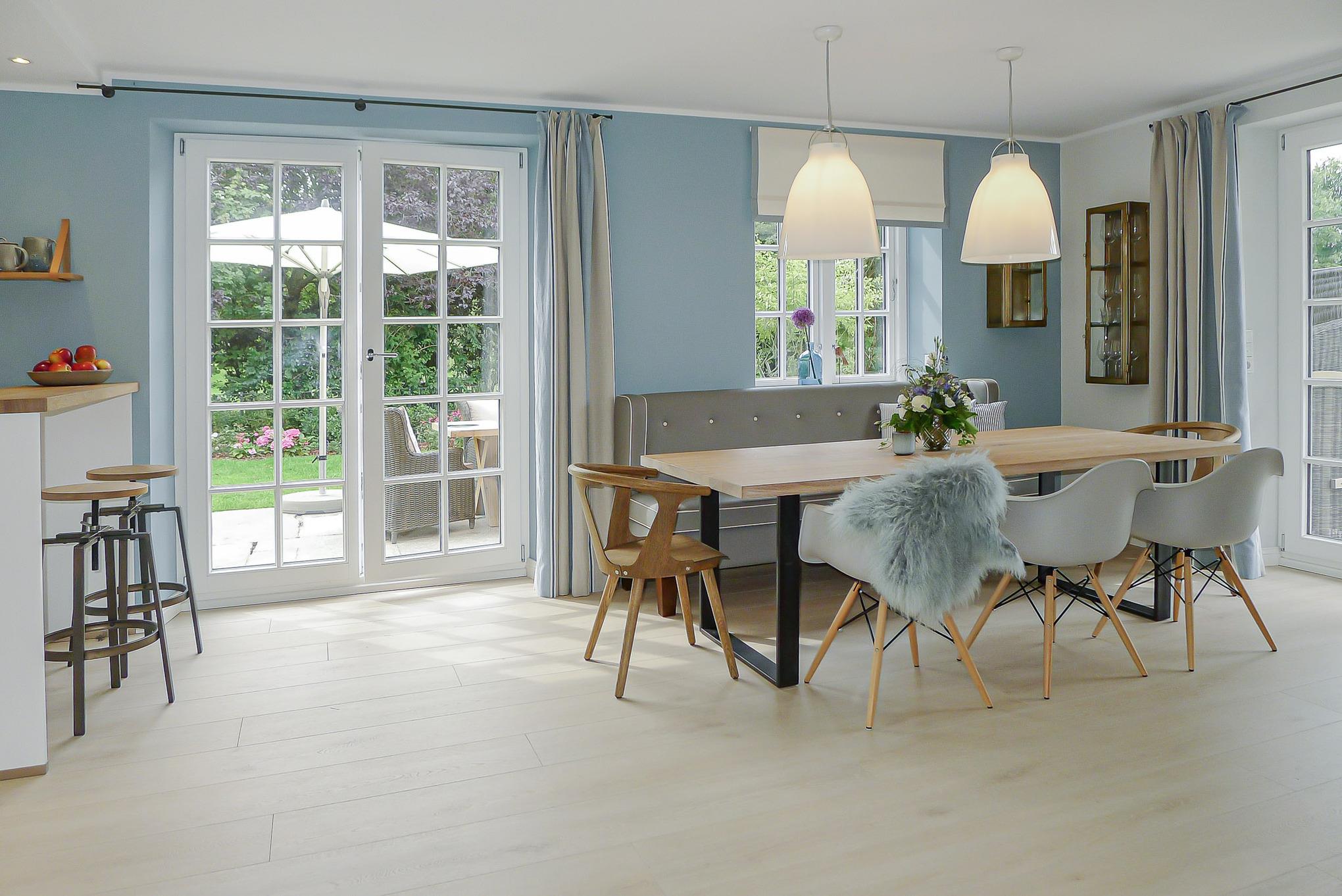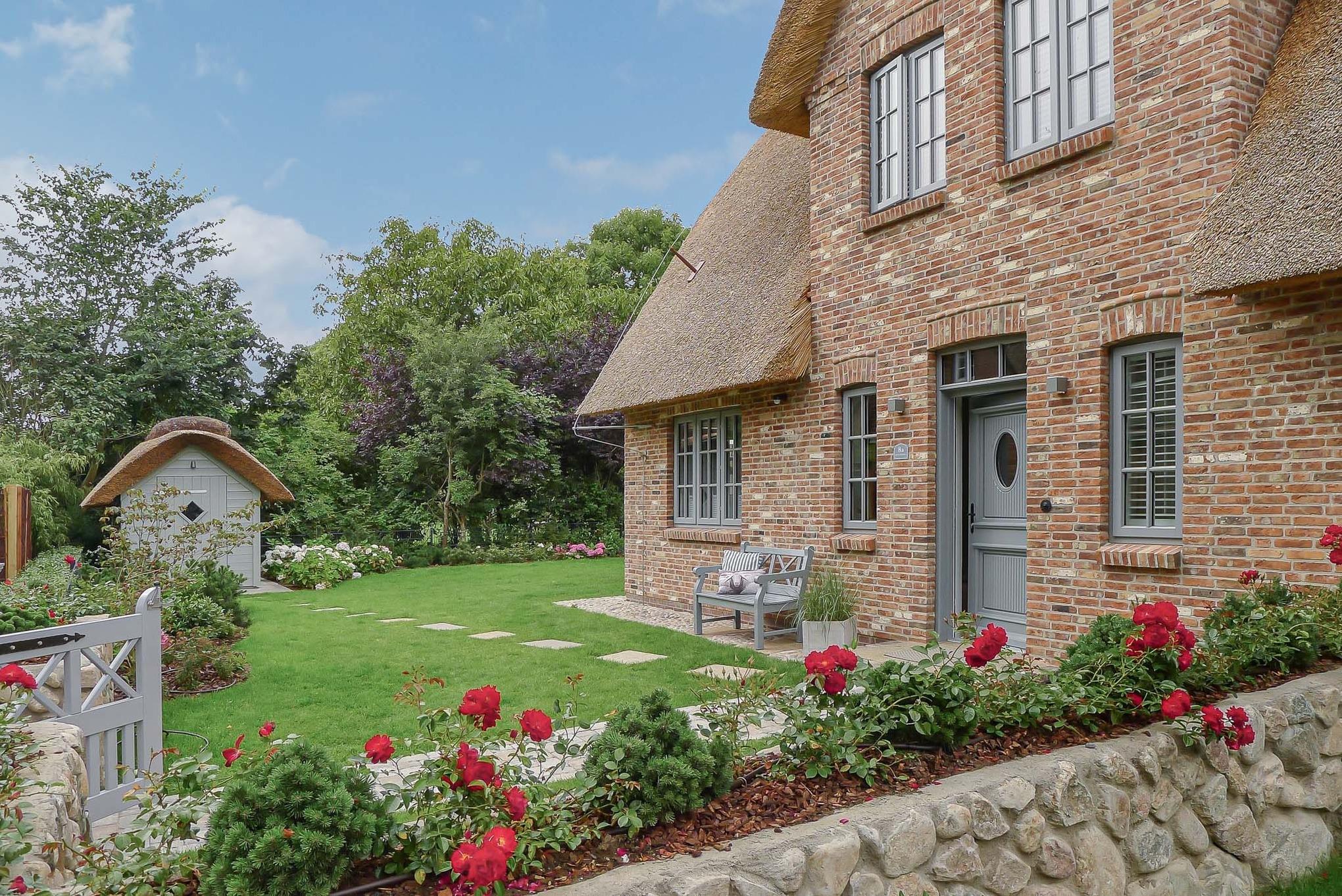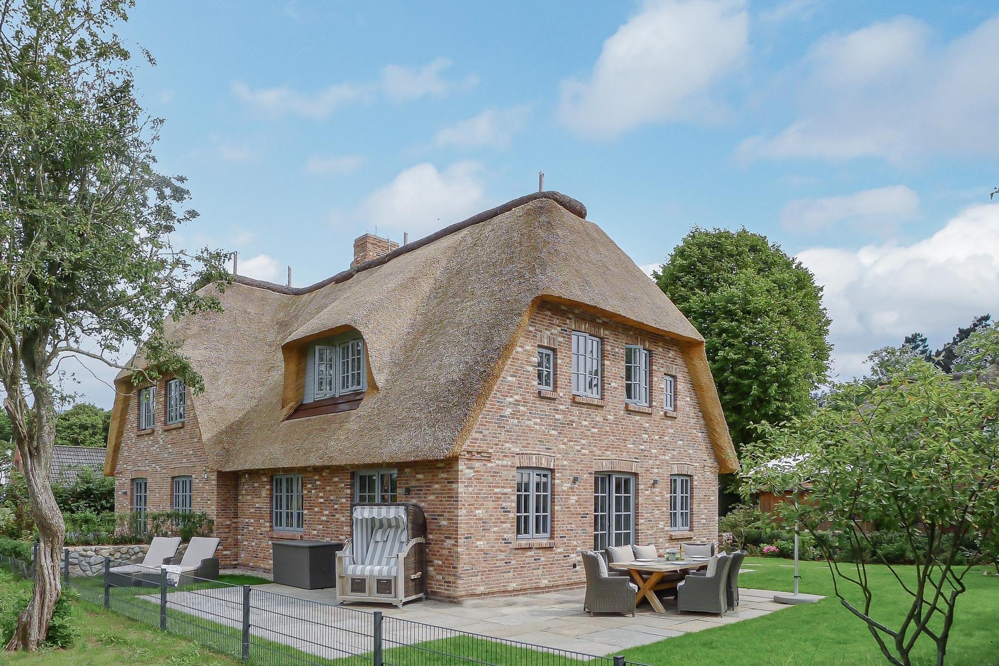 Lewe Daaling bedeutet „lebe heute“ auf friesisch. Verbringen Sie also die schönste Zeit des Jahres in dieser liebevoll eingerichteten Haushälfte unter Reet in Nieblum. Günstig gelegen befinden sich in 120 Meter Entfernung das Zentrum von Nieblum mit Restaurants, Bäcker und bezaubernden Läden zum Einkaufen. Nur fünf Minuten mit dem Rad entfernt liegt der feinsandige Nieblumer Strand mit Wassersportmöglichkeiten. Die moderne Doppelhaushälfte lässt keine Wünsche offen: edle Tischlereinbauten, Nolte Küche, Boxspringbetten, 4 LED-Fernseher, kindersichere Steckdosen, moderner Kamin, Sauna und eine großzügige Terrasse mit historischen Natursteinplatten. Im liebevoll angelegten Garten können Sie die Sonne mit einem Kaffee begrüßen und sie den ganzen Tag genießen. Dabei lassen Sie den Blick über die Wiesen schweifen und entspannen auf den Sonnenliegen oder im Strandkorb. Der Garten ist komplett eingezäunt. Entdecken Sie die schönen Gassen, Bauerngärten und historischen Kapitänshäuser. Nieblum, als eines der schönsten Dörfer in Nordfriesland, wird bestimmt auch ihr Herz erobern