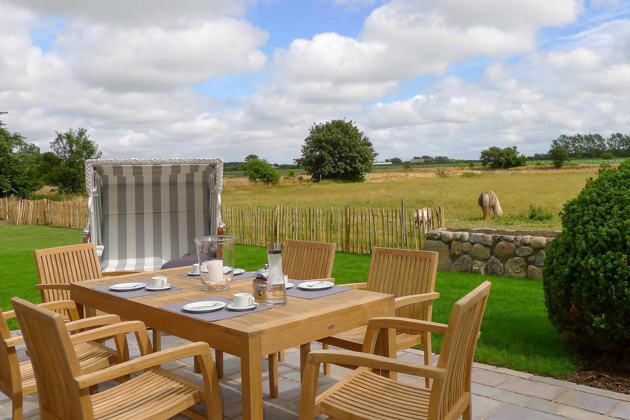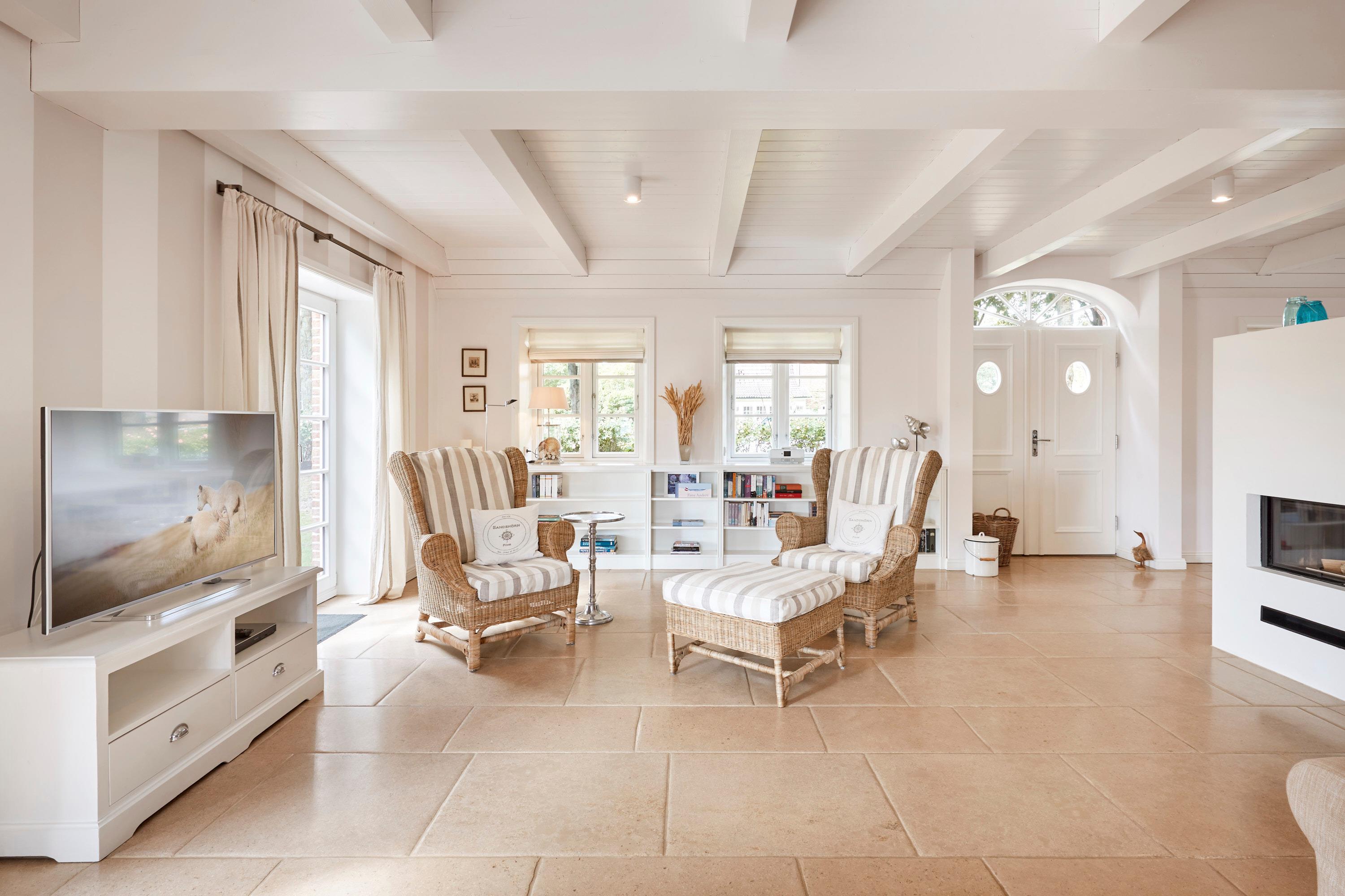 Willkommen im Sandshörn! Dieses imposante Feriendomizil unter Reet liegt am Rande des beliebten Friesendorfes Nieblum- und doch mittendrin. Das große Grundstück scheint keine Grenzen zu haben, und es eröffnet sich ein weiter Blick über Wiesen und Felder. Die großzügige und exklusive Innenausstattung lässt es an nichts fehlen, was Ihren Urlaub zum „Wohlfühl-Ereignis“ macht. Der Garten und Terrasse lädt im Sommer zum Entspannen ein. Zum weitläufigen Sandstrand oder in den historischen Ortskern mit Restaurants, Cafes und Einkaufsmöglichkeiten sind es nur wenige Gehminuten. Auch in den Herbst- und Wintermonaten kann man hier wunderbar entspannte Urlaube genießen. Sauna und Panoramakamin tun ein Übriges. Wir freuen uns auf Sie.