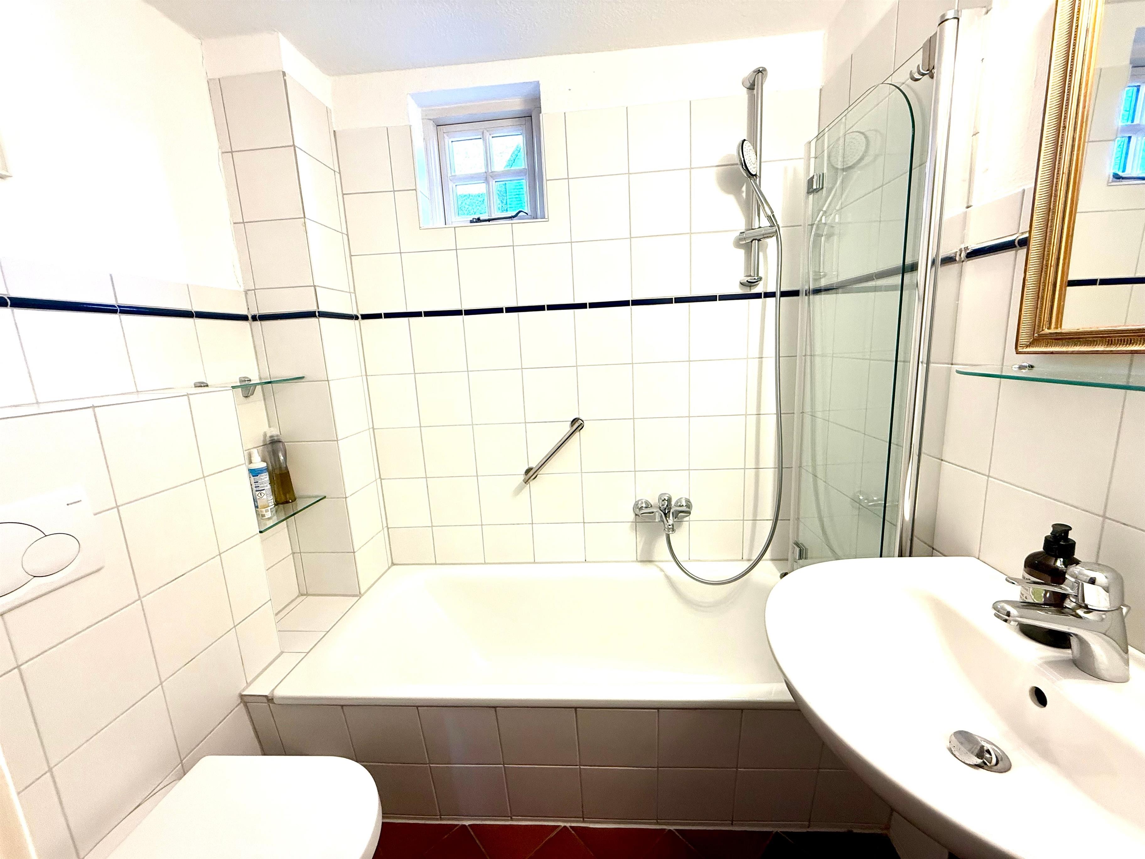 Unsere Wohnung Blaue Stube, ist die historische Kernwohnung des Hauses, ideal für bis zu 4 Personen. Sie befindet sich im Erdgeschoss links und ist nach Süden gerichtet. Besonders geschätzt wird der urige Charme dieser Wohnung, die, wie unsere "Gartenwohnung", über direkten Zugang zur West-Terrasse und großem Garten verfügt. Sie ist ca. 49 qm groß und verfügt über:* ein Schlafzimmer mit zwei Einzelbetten (je 100 breit) und ein Wohnzimmer mit ausklappbarer Schlafcouch. In der Wohnung befindet sich eine helle Küche mit Geschirrspülmaschine, Kühlschrank, Kaffee - und Espressomaschine und Elektroherd/Backofen. Diese Wohnung ist mit Telefon (kostenlos ins deutsche Festnetz) und kostenfreien DSL-Anschluss ausgestattet. Das Badezimmer mit Dusche/Badewanne hat ein kleines Fenster und ist weiß gefliest. Natürlich gehört der wunderschöne Garten mit Terasse zum Objekt dazu und läd zum verweilen ein.