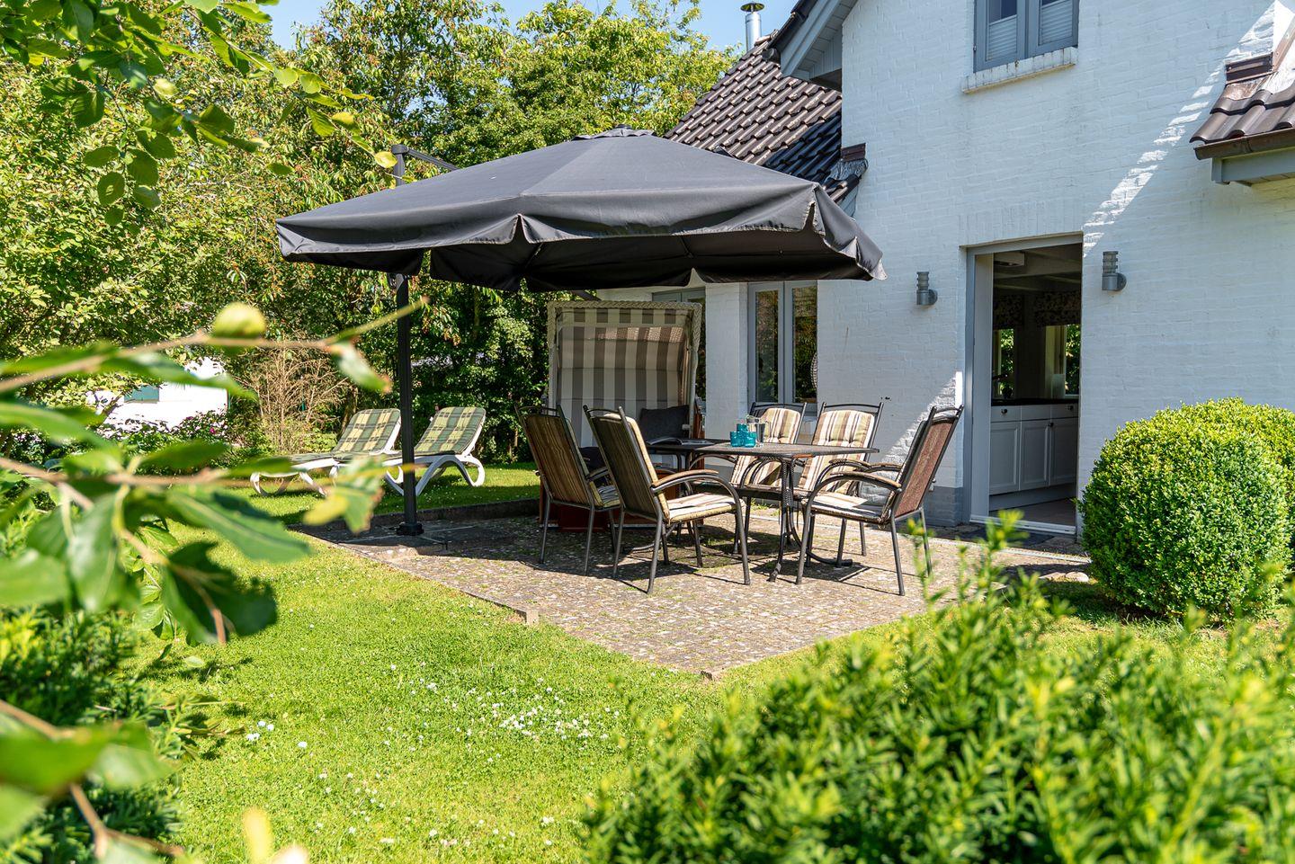 Zu den Highlights des freistehenden Ferienhauses zählen wir, neben der beliebten Lage in Goting selbst, den gemütlichen Wellnessbereich im Kellergeschoss, die Sauna und den Kamin. Auch das umliegende Grundstück ist liebevoll bepflanzt und Ihnen steht viel Mobiliar im Außenbereich zur Verfügung, wie Liegestühle und ein Strandkorb sowie eine zweite Terrasse in einer geschützten Ecke des Grundstücks.