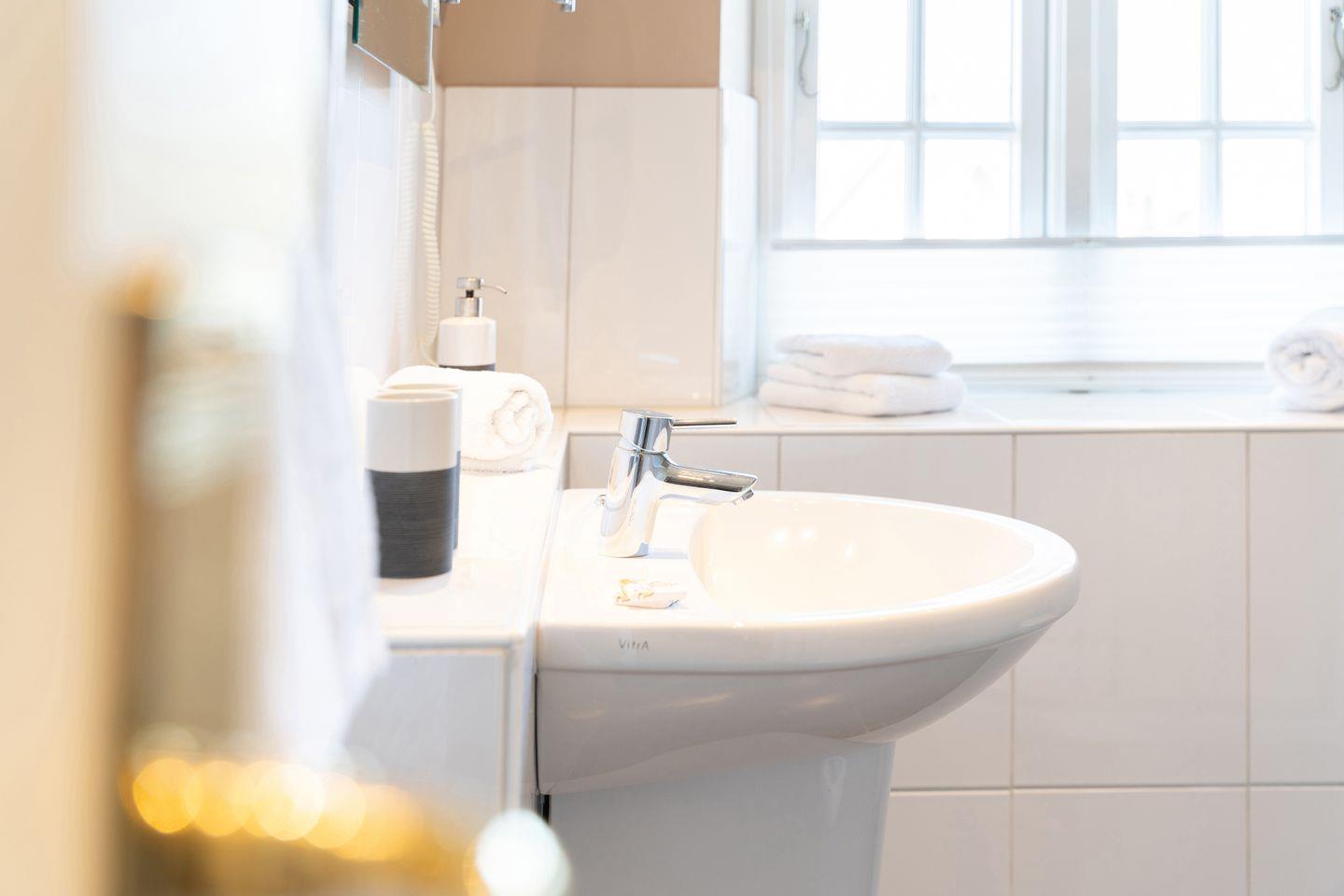 Im Obergeschoss sind die drei Schlafzimmer - zwei mit jeweils einem Doppelbett, eines mit einem Einzelbett - sowie eines der beiden Duschbäder, welches zudem über eine Badewanne verfügt, gelegen.