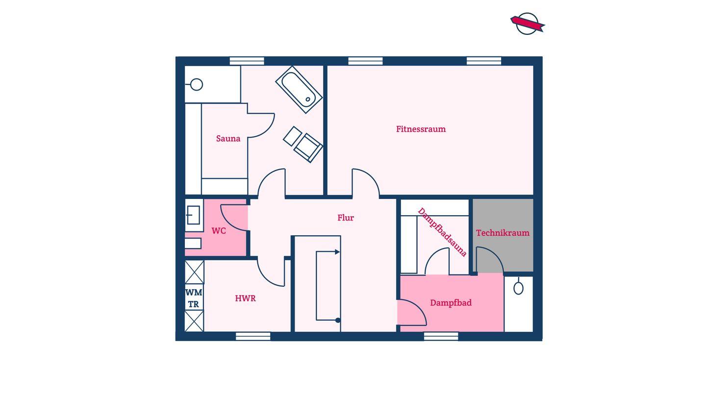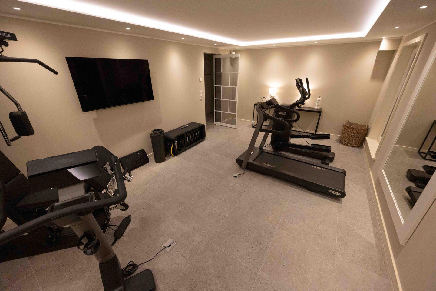 Das Souterrain ist ein weiteres Highlight dieses Hauses. Hier befinden sich neben einem Gäste-WC und einem Hauswirtschaftsraum mit Waschmaschine und Trockner, die großzügige und moderne hauseigene Sauna, mit Whirlwanne und Regendusche sowie ein Fitnessraum mit Geräten der Marke Techno Gym (Laufband, Stepper, Crosstrainer, Hantelbank, Kraftstation, Kleinequipment). Ein stylisches Dampfbad mit Regendusche stehen Ihnen in einem weiteren Raum ebenfalls zur Verfügung.