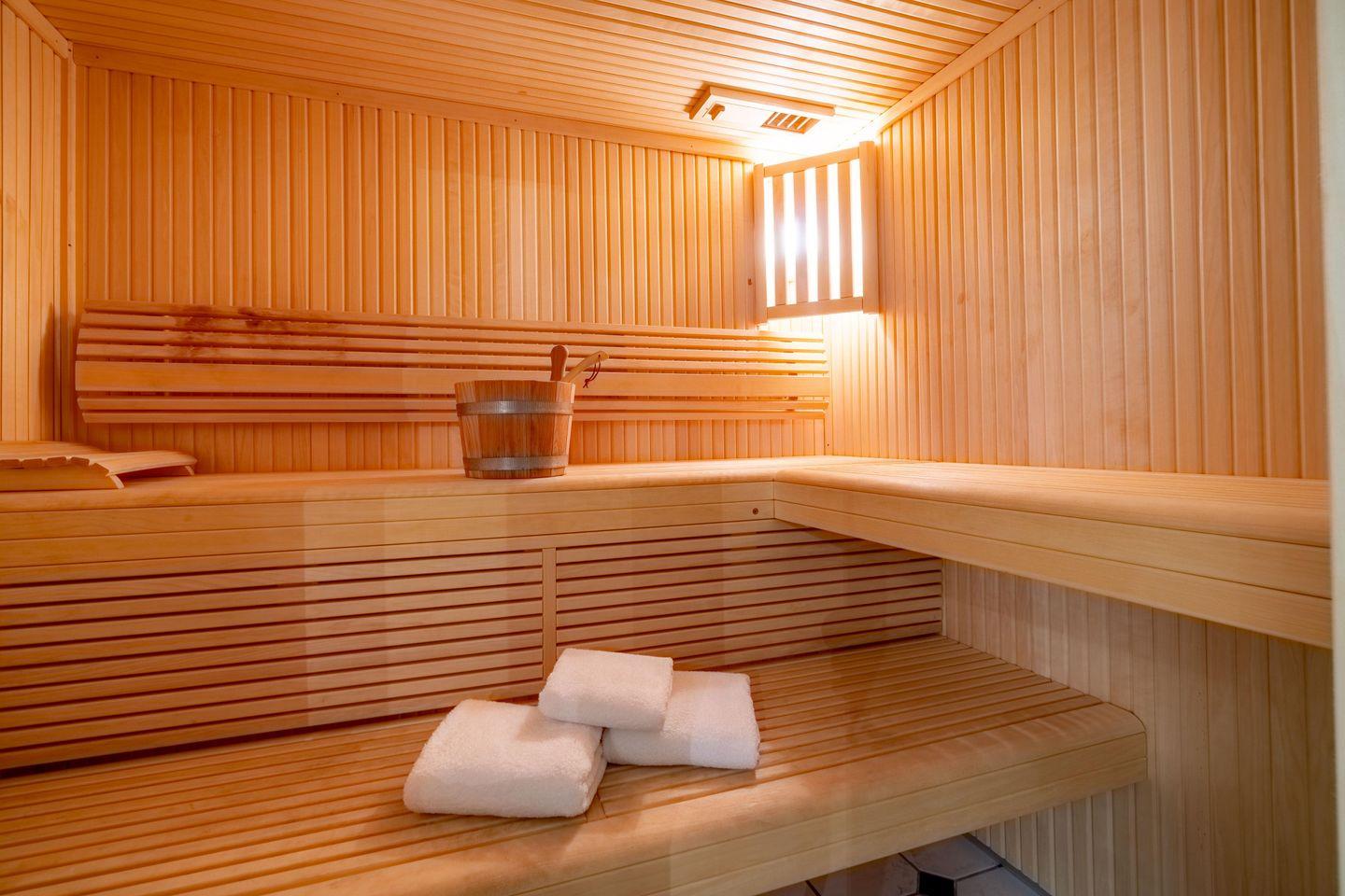 Im Souterrain stehen Ihnen die hauseigene Sauna mit separater, offener Dusche im Wellnessbereich, sowie das Gäste-WC zur Verfügung.