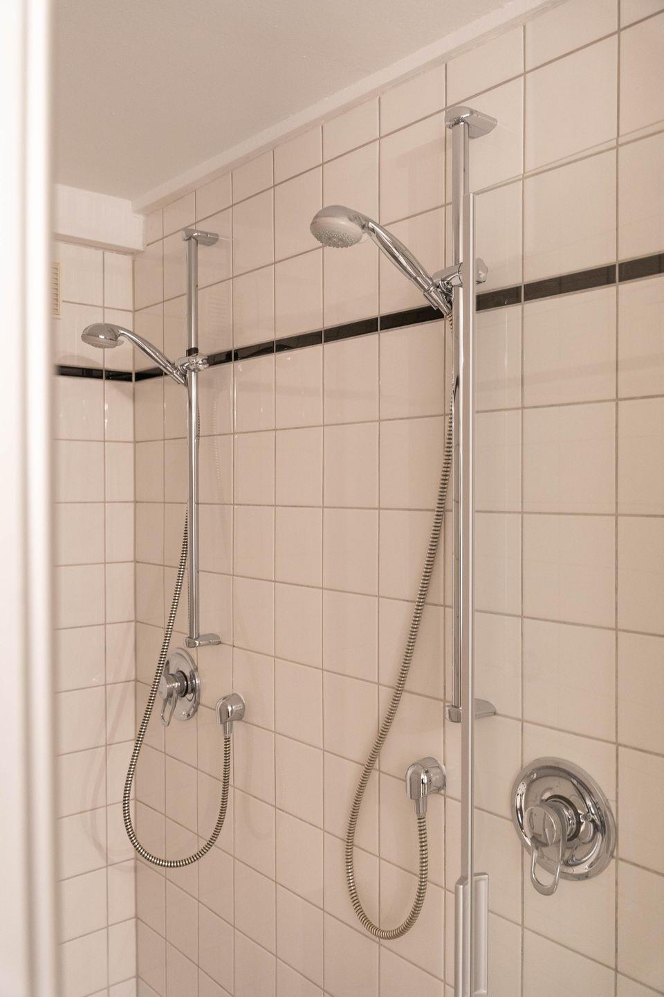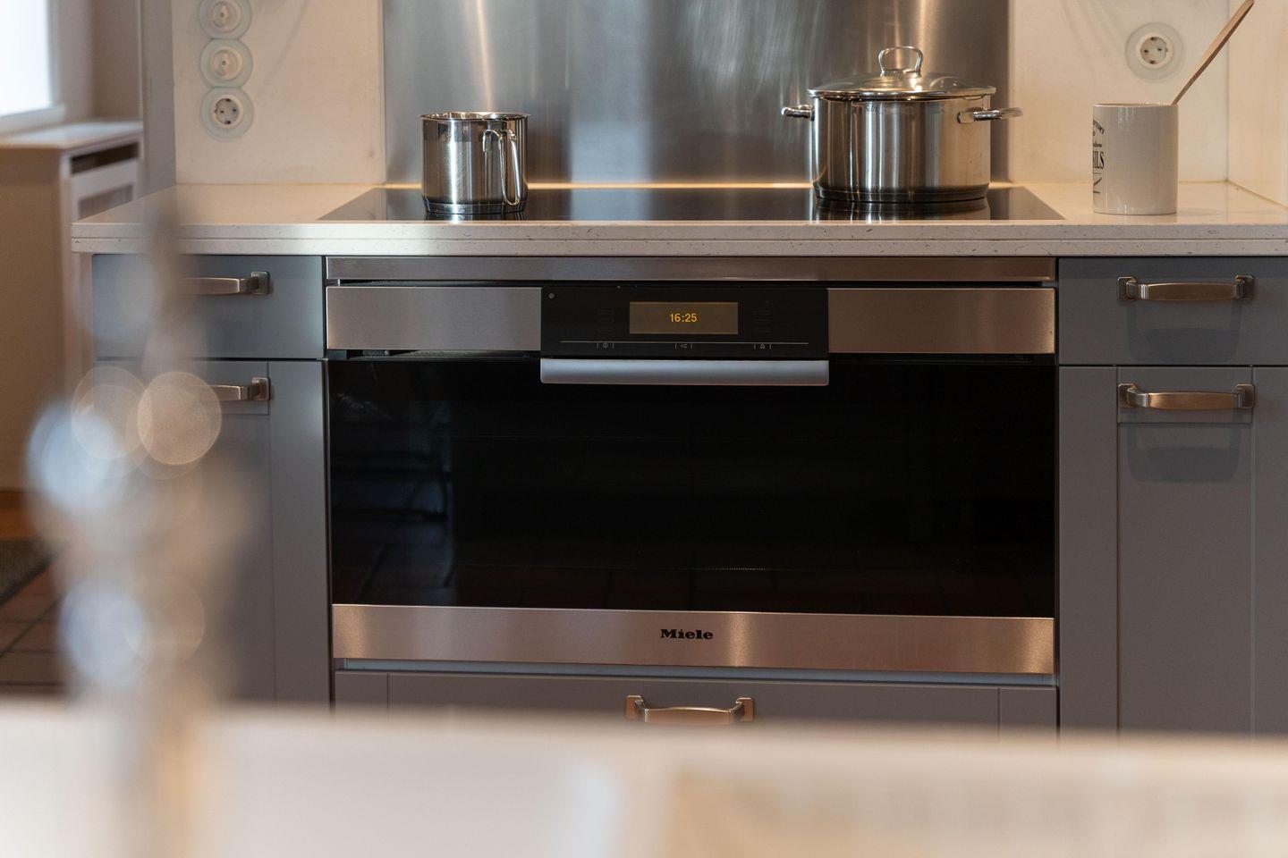 Im Erdgeschoss befinden sich das großzügige Wohnzimmer, zwei TV-Zimmer, ein Esszimmer mit angrenzender Küche, ein Schlafzimmer mit Doppelbett und Duschbad en Suite, sowie ein Vollbad. Über das Wohnzimmer und das Esszimmer gelangen Sie direkt in den Garten und auf die Terrasse. Der antike Kachelofen im Wohnzimmer sorgt auch an kühleren Tagen für eine angenehme Atmosphäre. Im Wohnzimmer steht Ihnen zudem ein Arbeitsbereich mit einem Schreibtisch zur Verfügung. Das Herzstück der Küche bildet sicherlich die großzügige Kochinsel, die jeden Hobbykoch begeistern wird.