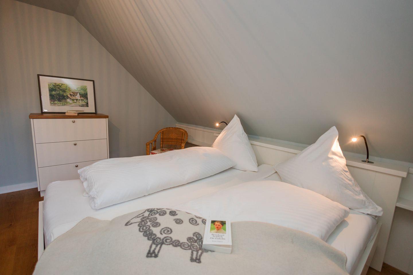 Das Ferienhaus am Feld ist ruhig gelegen im schönen Kapitänsdorf Nieblum. Von hier aus laufen Sie 10 Minuten zum Sandstrand von Nieblum und wenige Gehminuten zum Zentrum. Hier befinden sich zahlreiche Cafés und Restaurants. Auch einen kleinen Einkaufsladen und einen Bäcker finden Sie im Dorf.