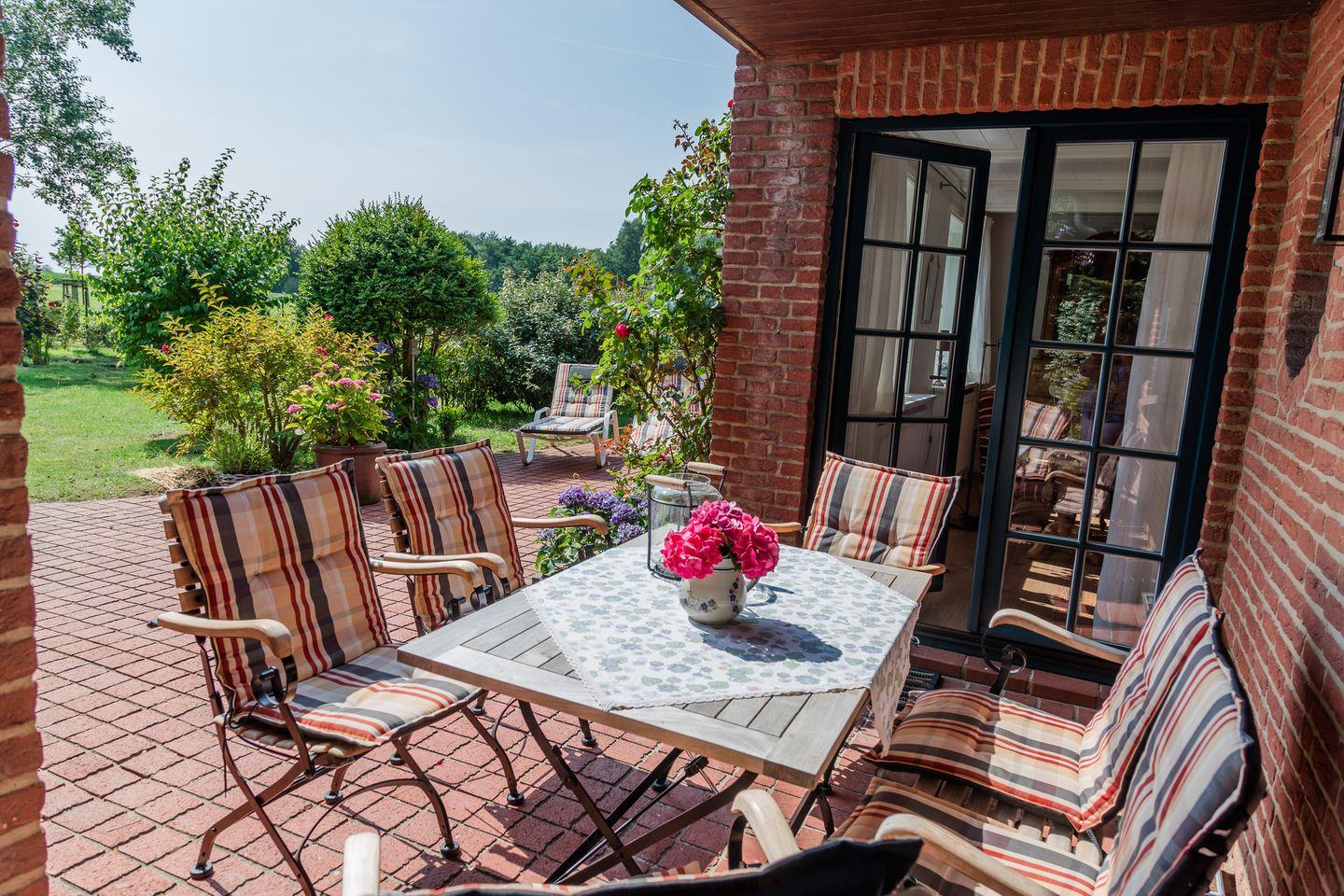Ferienhaus mit zwei Kachelöfen, eigenem Garten mit Terrasse und mit schönem Blick auf die angrenzenden Felder.