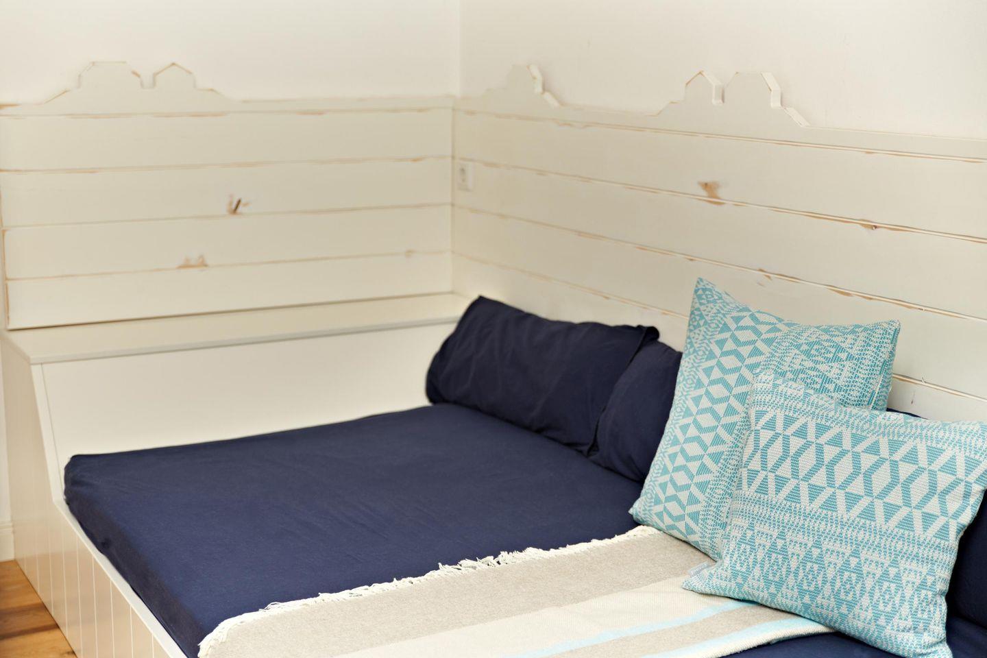 Im Haus befindet sich ein Wohn-/Esszimmer mit integrierter Küche, von dem aus Sie auf die Terrasse gehen können. Im Wohnzimmer stehen zwei gemütliche Sofas, wo Sie in Ruhe fernsehen können. Es gibt drei Schlafzimmer im Erdgeschoss - eins mit Doppelbett, eins mit einem Einzelbett und eins mit Etagenbett. In dem Haus befinden sich zwei Badezimmer, alle enthalten jeweils eine Dusche. Im Außenbereich der Unterkunft finden Sie eine Sauna.
