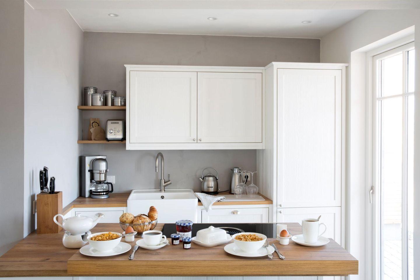 Alle Zimmer sind bis ins letzte Detail liebevoll eingerichtet mit einer Ausstattung auf höchstem Niveau. Vom Besteck über die Elektrogeräte bis zur Biobaumwolldecke finden Sie ausschließlich hochwertige Markenprodukte, ergänzt durch eigens entwickelte und gefertigte Echtholz-Möbel und Textilien.