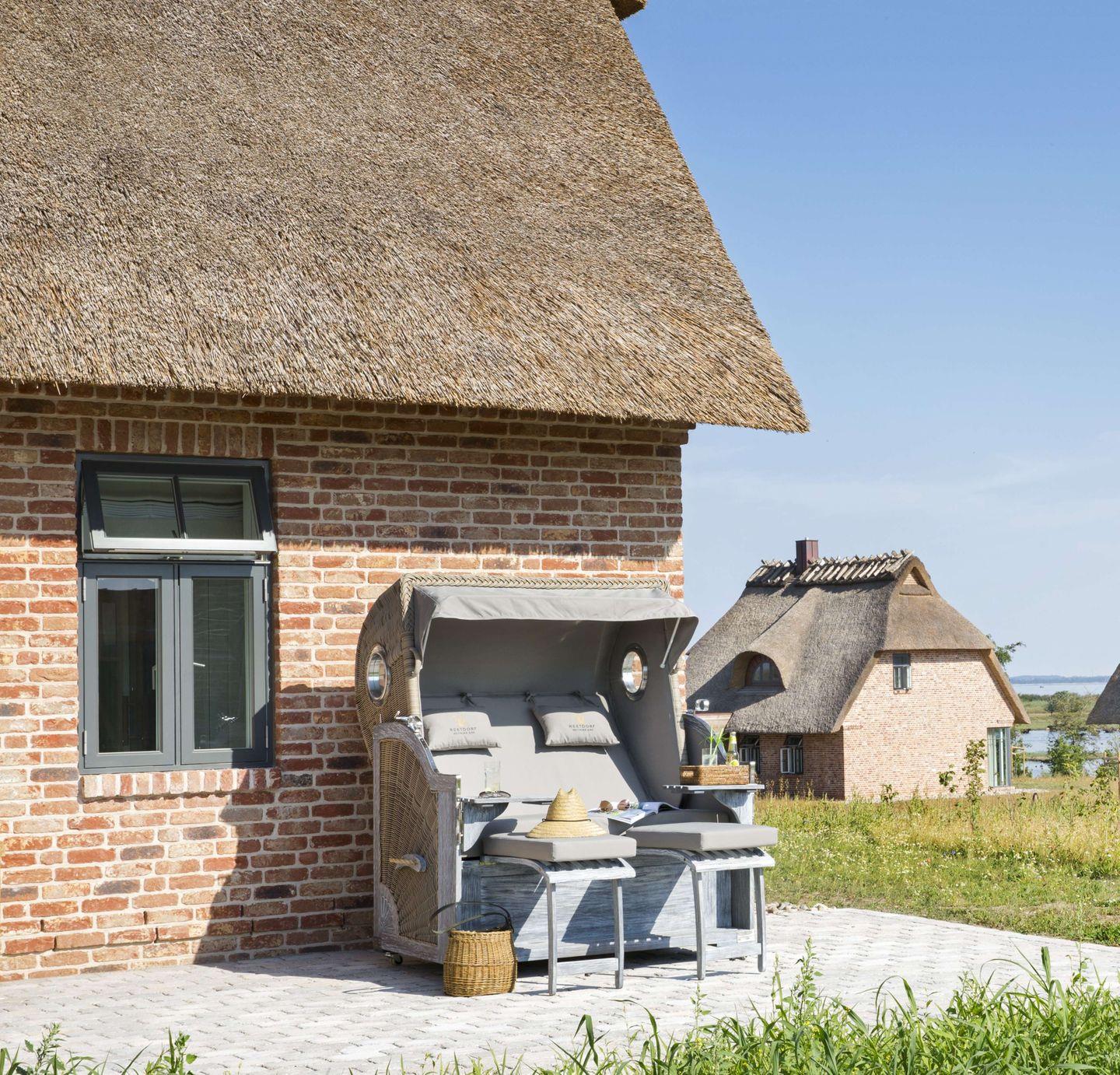 Alle Häuser haben eine besondere Atmosphäre und ein ökologisches Wohnklima durch die Verwendung natürlicher Baustoffe wie Reet, Holz und Ziegel.