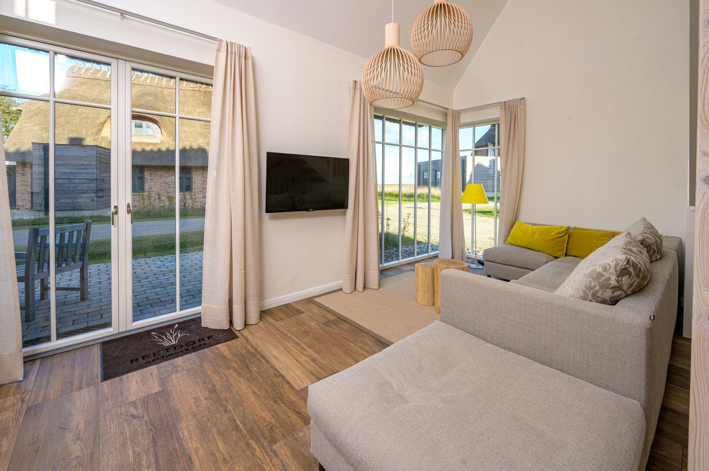 Im Winter genießen Sie den Komfort der Fußbodenheizung, die im Sommer auf Thermische Kühlung umschaltet. Dies ist auch durch ökologisch effiziente Wärmepumpen gewährleistet. Durch selbst produzierten Strom aus Wind – und Sonnenenergie ist das gesamte Reetdorf jetzt schon CO2 neutral.
