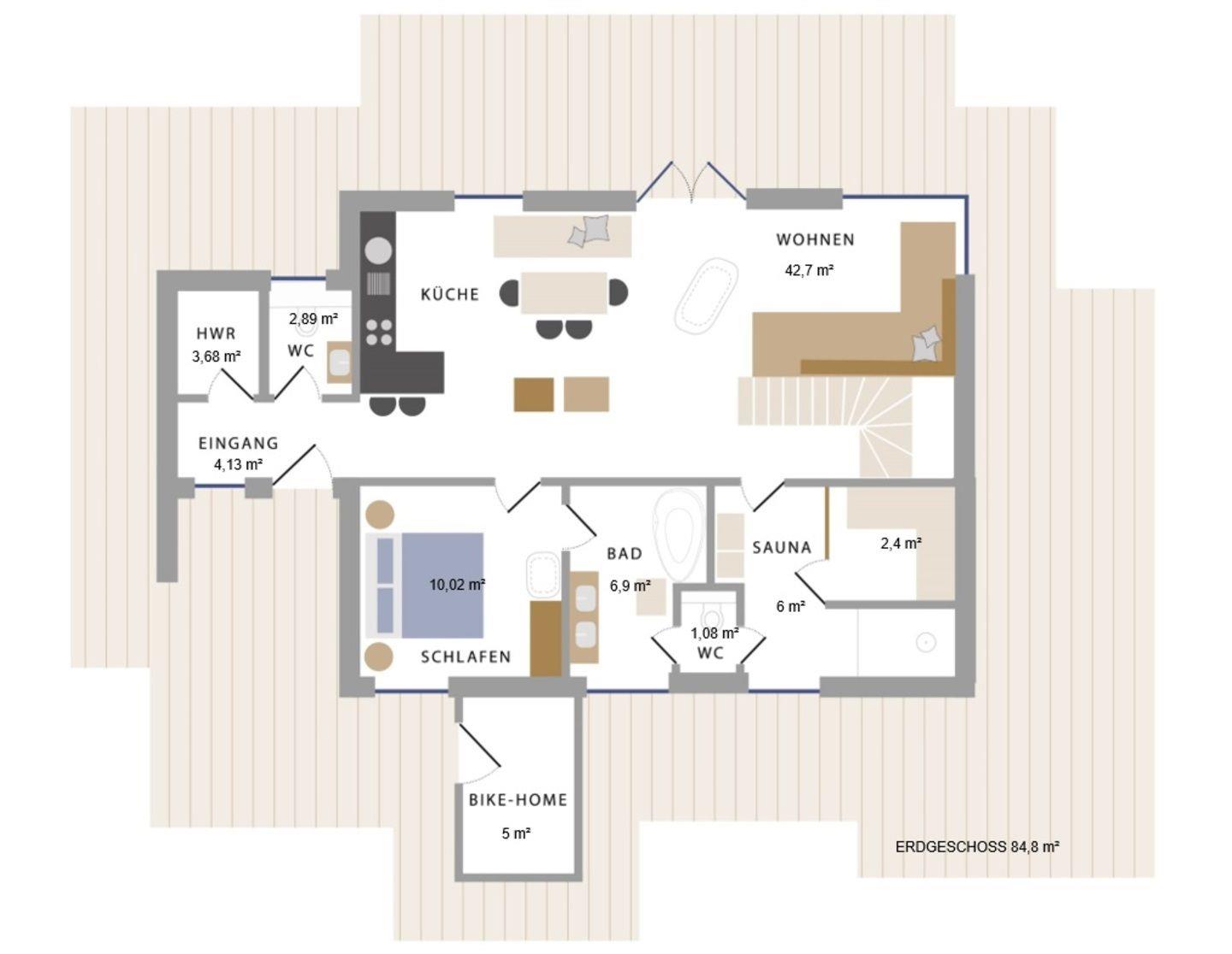 Im angebauten Fahrradraum befinden sich die hauseigenen Sonnenliegen, Ihr Elektrogrill und natürlich haben Sie hier die Möglichkeit Fahrräder sicher und trocken unterzustellen.