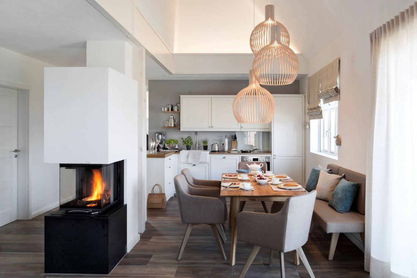Auf 110 Quadratmetern Wohnfläche genießen Sie die Annehmlichkeiten der exklusiven Einrichtung. Kamin, Sauna und großzügige Terrasse mit hölzerner Sitzecke und eigenem Standkorb sind nur einige Aspekte der Wohlfühl-Oasen in dieser wunderbaren Künstlerkate Sommerbrise.